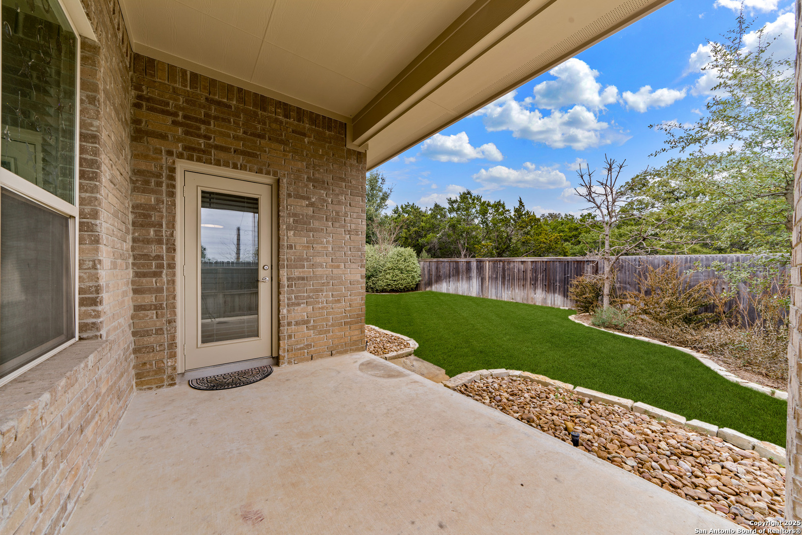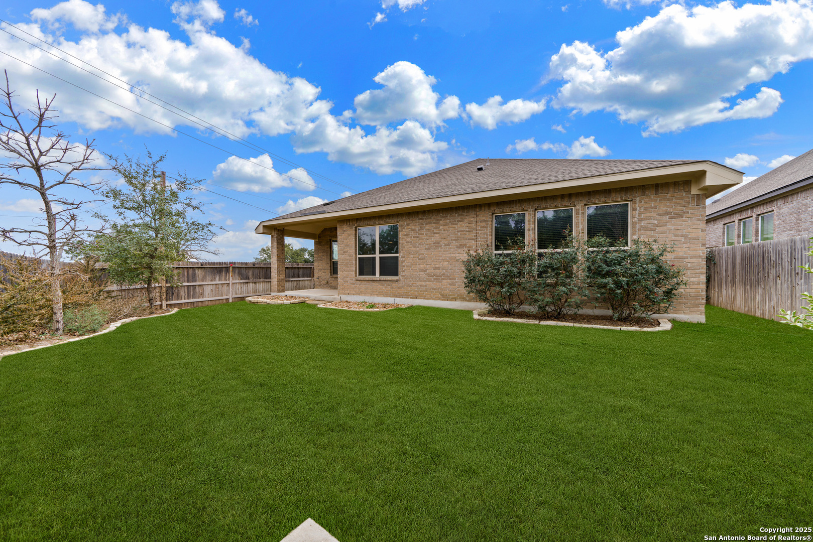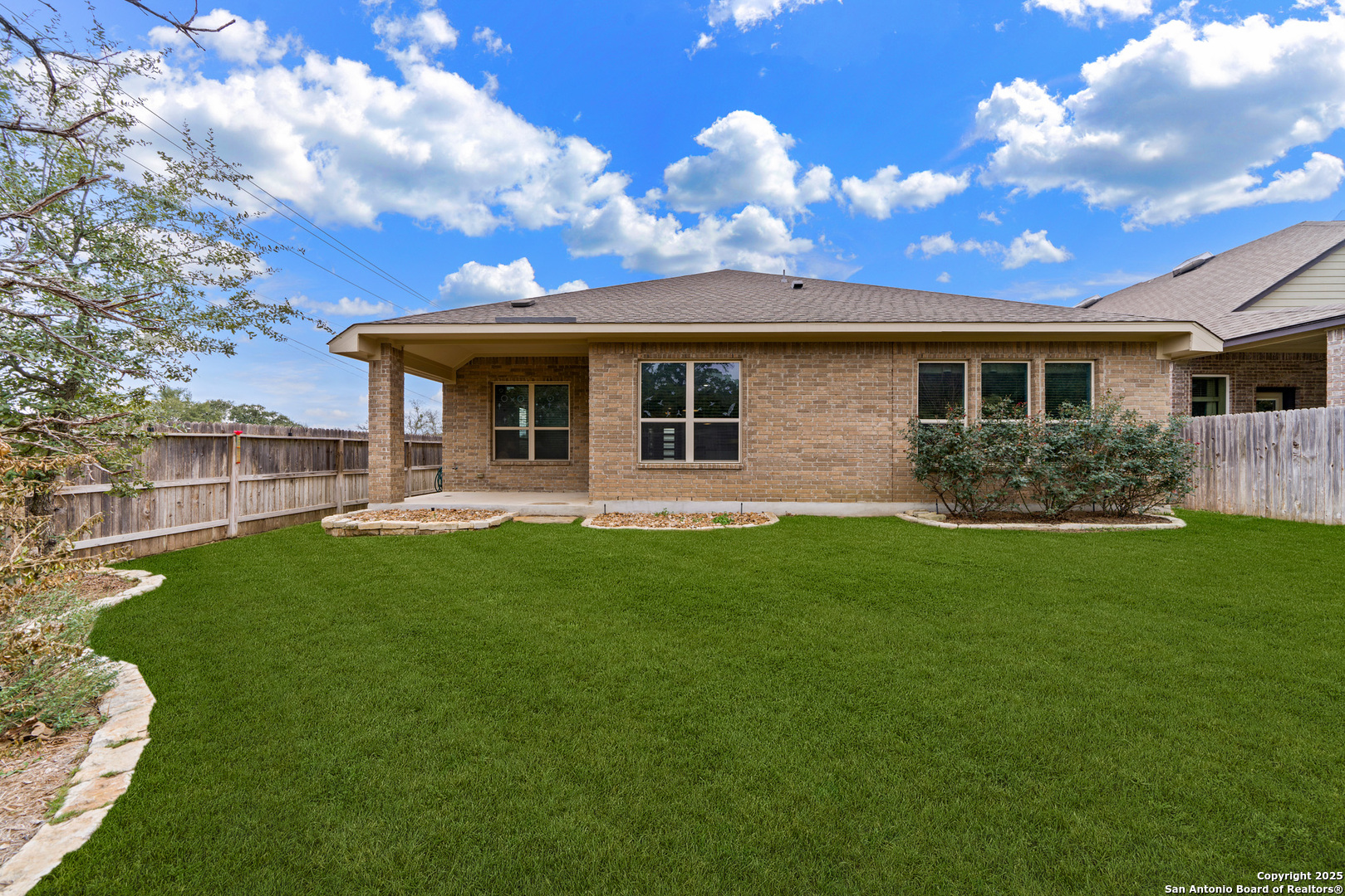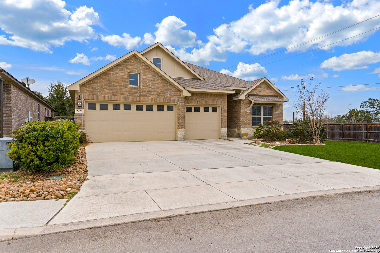 Nestled on a private cul-de-sac in the highly desirable Prospect Creek at Kinder Ranch, this stunning custom Sitterle one-story home offers 4 bedrooms, 3 baths, and an oversized 3-car garage. Boasting exceptional curb appeal, the home welcomes you with a spacious, open floor plan and soaring ceilings that create an airy, inviting atmosphere. The chef's eat-in kitchen is a true centerpiece, featuring granite countertops, stainless steel appliances, an abundance of custom cabinetry, a large walk-in pantry, and ample storage space. Perfectly designed for entertaining, it opens seamlessly to the cozy family room. Retreat to the private primary suite, where you'll find a spa-inspired bathroom with a soaking tub, separate shower, dual vanities, and a generous walk-in closet. The three additional bedrooms, including a flexible 4th bedroom ideal for a hobby room or flex space, provide versatility and comfort for family or guests. Work from home in the dedicated private study or host memorable gatherings in the separate dining room, which can also serve as an additional living area. Step outside to the tranquil backyard, featuring a covered patio, lush landscaping, and the added privacy of no rear neighbors. Located in a gated community with access to a neighborhood pool and served by top-rated Comal ISD schools, this home combines luxury, practicality, and convenience. Don't miss the opportunity to make this exceptional property yours!