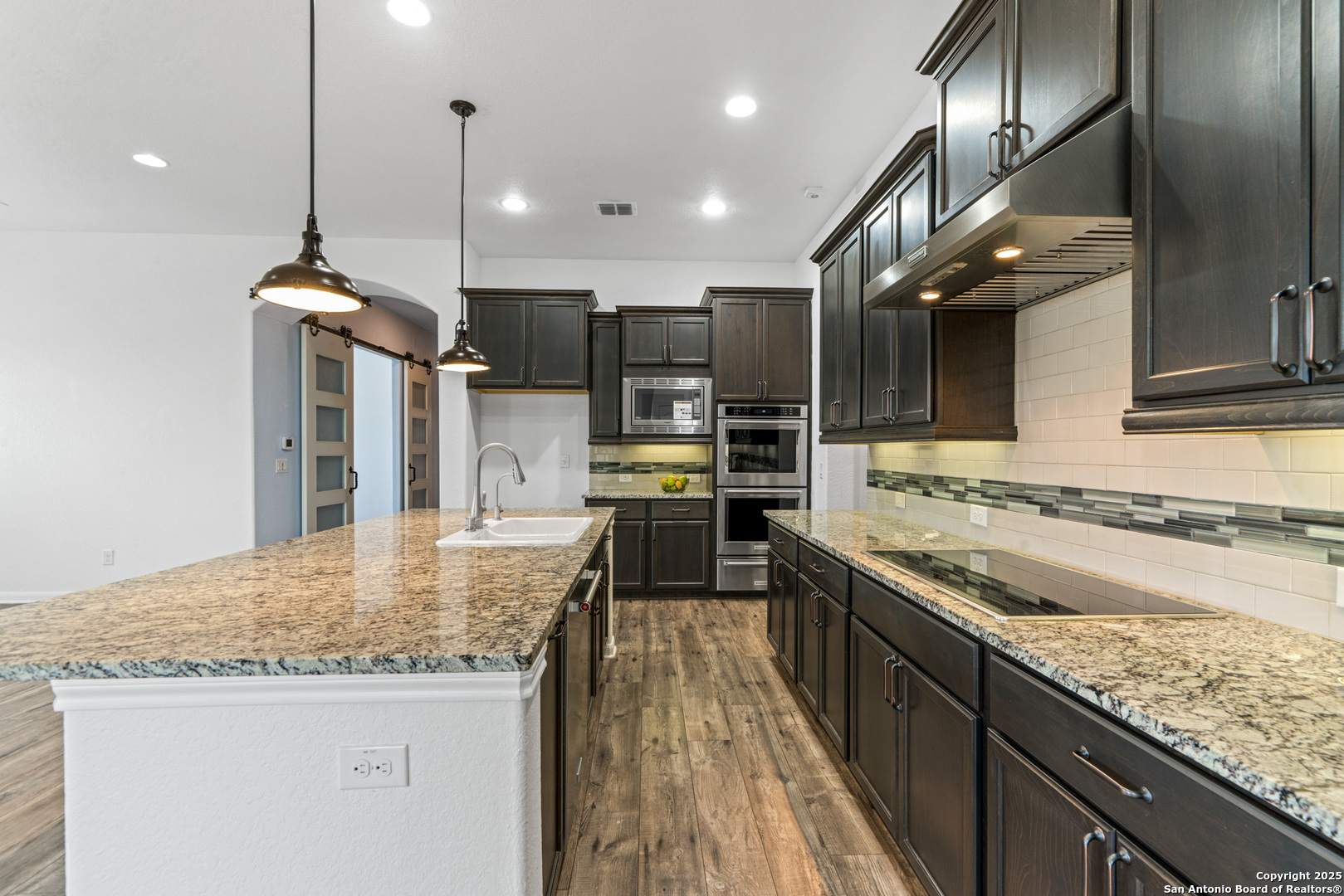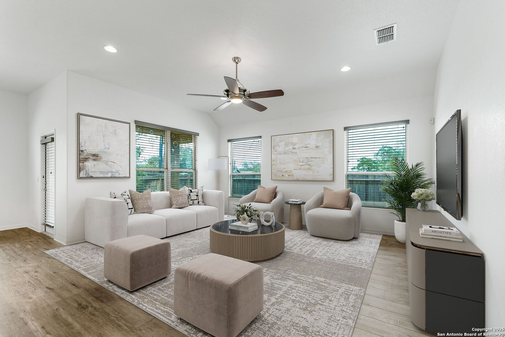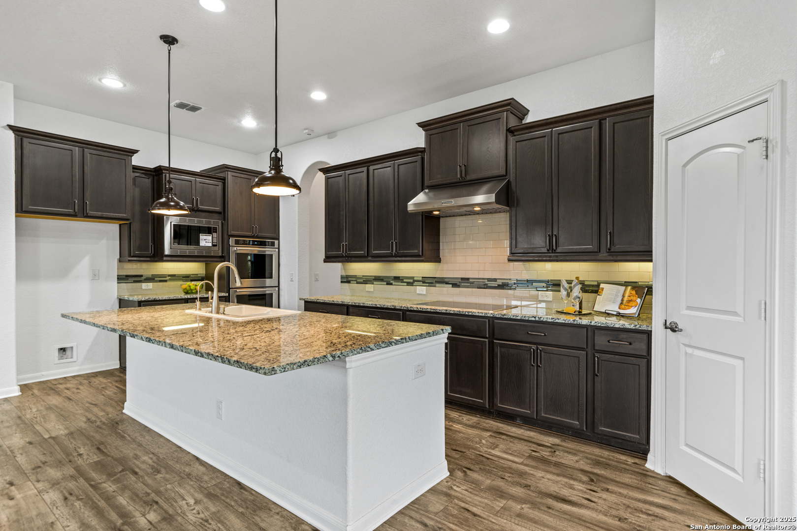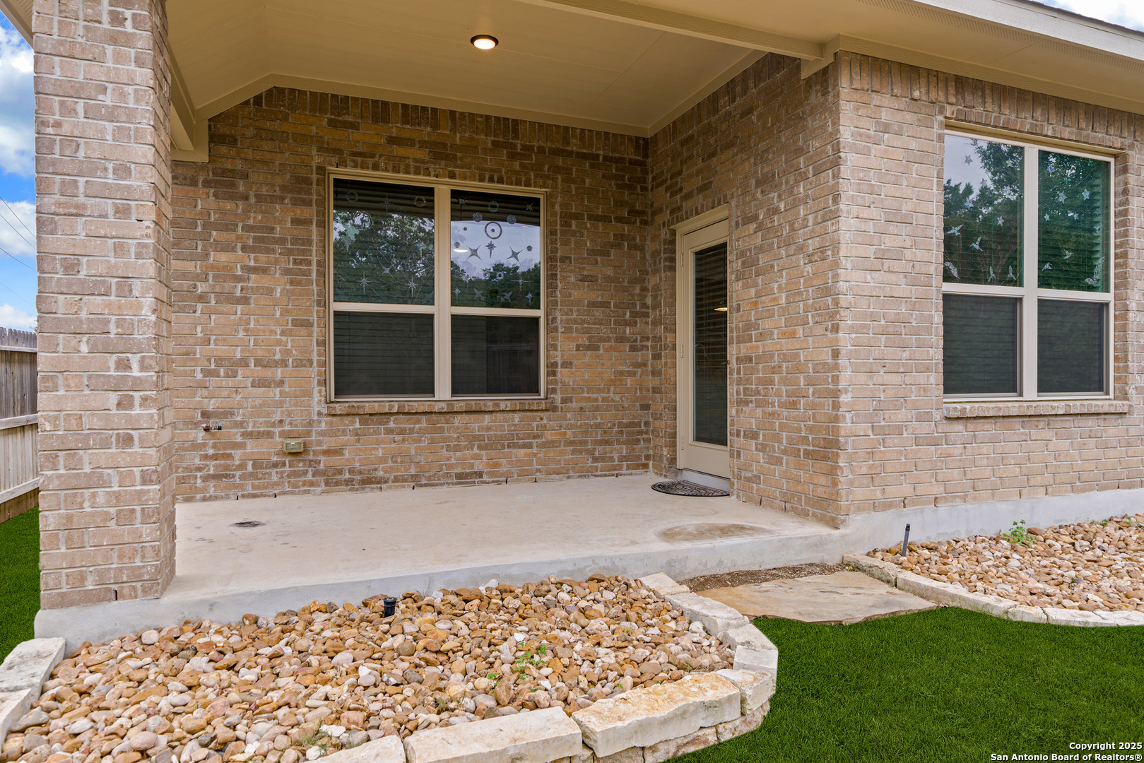 Nestled on a private cul-de-sac in the highly desirable Prospect Creek at Kinder Ranch, this stunning custom Sitterle one-story home offers 4 bedrooms, 3 baths, and an oversized 3-car garage. Boasting exceptional curb appeal, the home welcomes you with a spacious, open floor plan and soaring ceilings that create an airy, inviting atmosphere. The chef's eat-in kitchen is a true centerpiece, featuring granite countertops, stainless steel appliances, an abundance of custom cabinetry, a large walk-in pantry, and ample storage space. Perfectly designed for entertaining, it opens seamlessly to the cozy family room. Retreat to the private primary suite, where you'll find a spa-inspired bathroom with a soaking tub, separate shower, dual vanities, and a generous walk-in closet. The three additional bedrooms, including a flexible 4th bedroom ideal for a hobby room or flex space, provide versatility and comfort for family or guests. Work from home in the dedicated private study or host memorable gatherings in the separate dining room, which can also serve as an additional living area. Step outside to the tranquil backyard, featuring a covered patio, lush landscaping, and the added privacy of no rear neighbors. Located in a gated community with access to a neighborhood pool and served by top-rated Comal ISD schools, this home combines luxury, practicality, and convenience. Don't miss the opportunity to make this exceptional property yours!