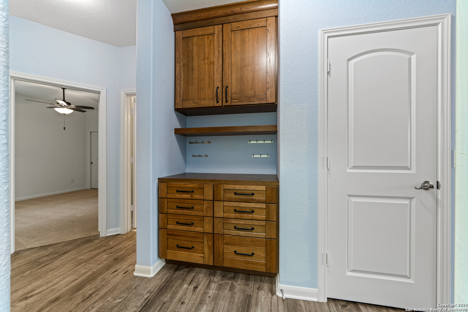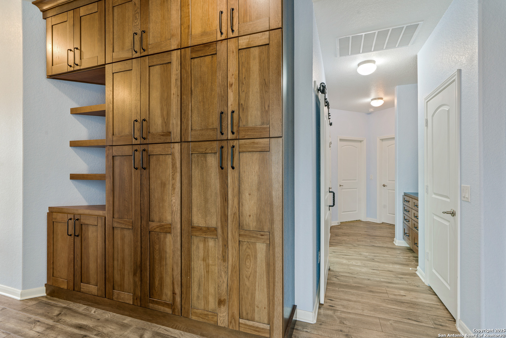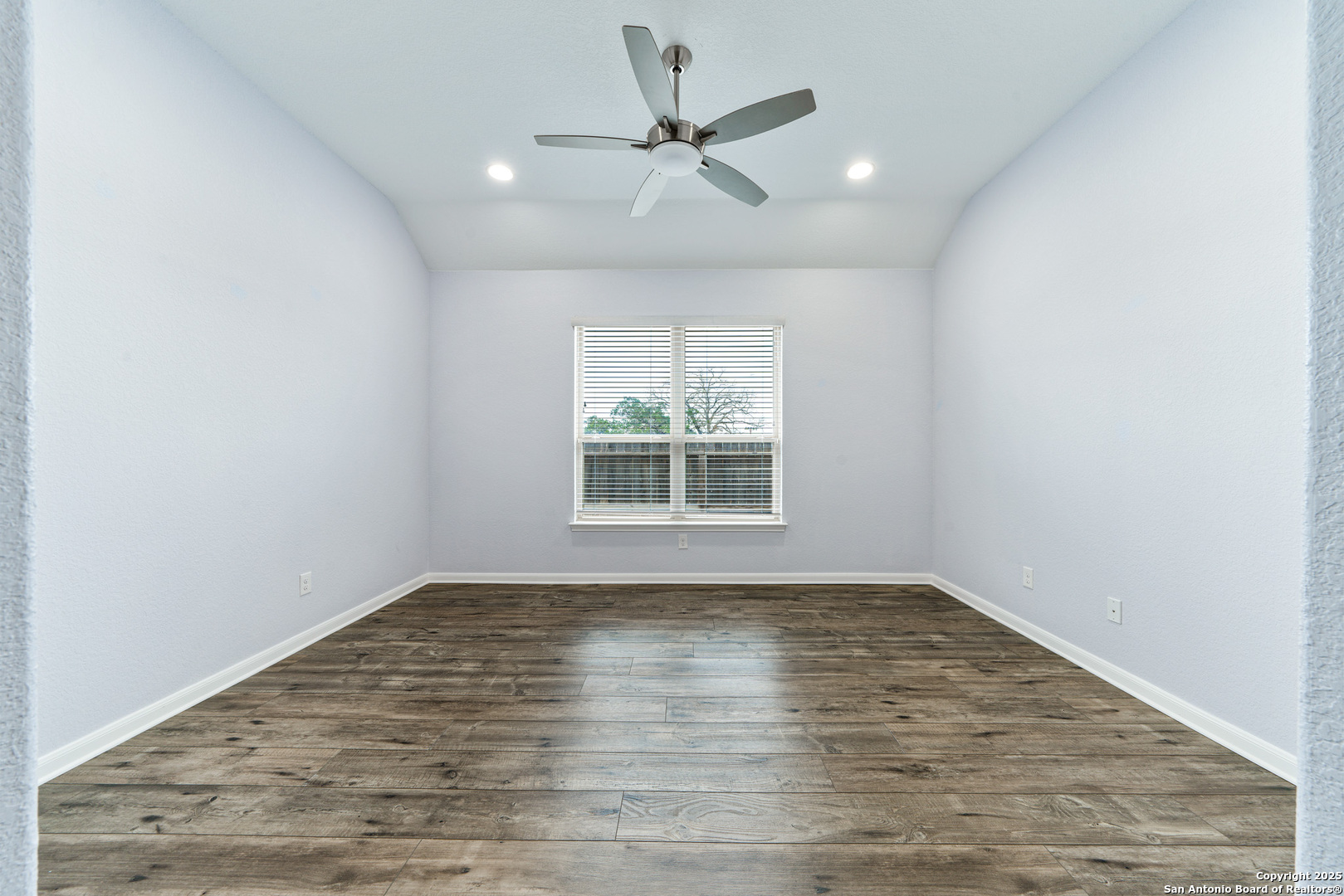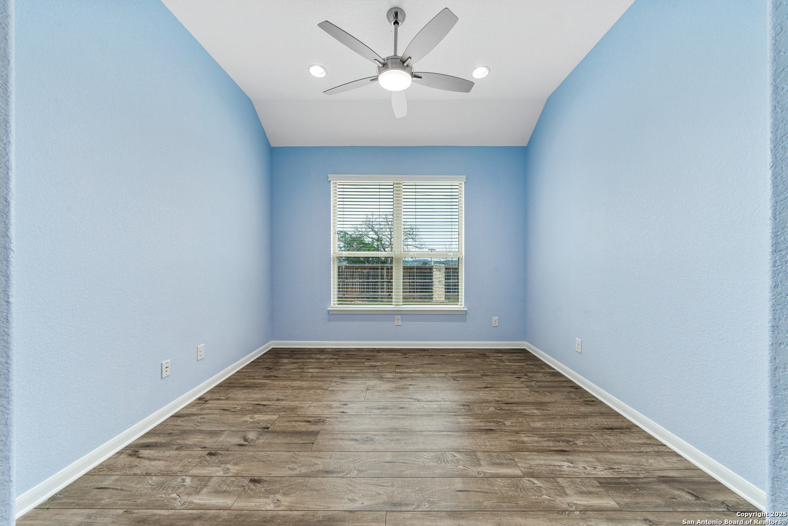 Nestled on a private cul-de-sac in the highly desirable Prospect Creek at Kinder Ranch, this stunning custom Sitterle one-story home offers 4 bedrooms, 3 baths, and an oversized 3-car garage. Boasting exceptional curb appeal, the home welcomes you with a spacious, open floor plan and soaring ceilings that create an airy, inviting atmosphere. The chef's eat-in kitchen is a true centerpiece, featuring granite countertops, stainless steel appliances, an abundance of custom cabinetry, a large walk-in pantry, and ample storage space. Perfectly designed for entertaining, it opens seamlessly to the cozy family room. Retreat to the private primary suite, where you'll find a spa-inspired bathroom with a soaking tub, separate shower, dual vanities, and a generous walk-in closet. The three additional bedrooms, including a flexible 4th bedroom ideal for a hobby room or flex space, provide versatility and comfort for family or guests. Work from home in the dedicated private study or host memorable gatherings in the separate dining room, which can also serve as an additional living area. Step outside to the tranquil backyard, featuring a covered patio, lush landscaping, and the added privacy of no rear neighbors. Located in a gated community with access to a neighborhood pool and served by top-rated Comal ISD schools, this home combines luxury, practicality, and convenience. Don't miss the opportunity to make this exceptional property yours!