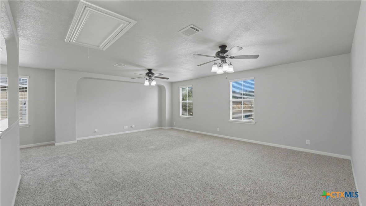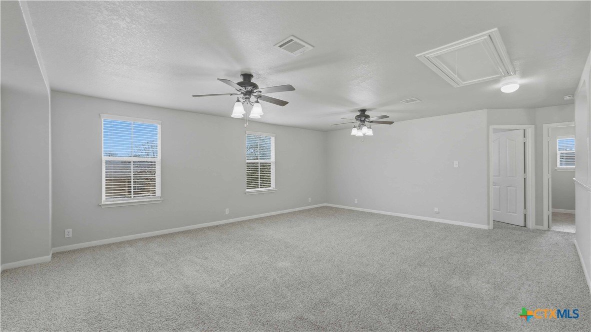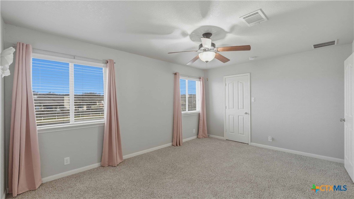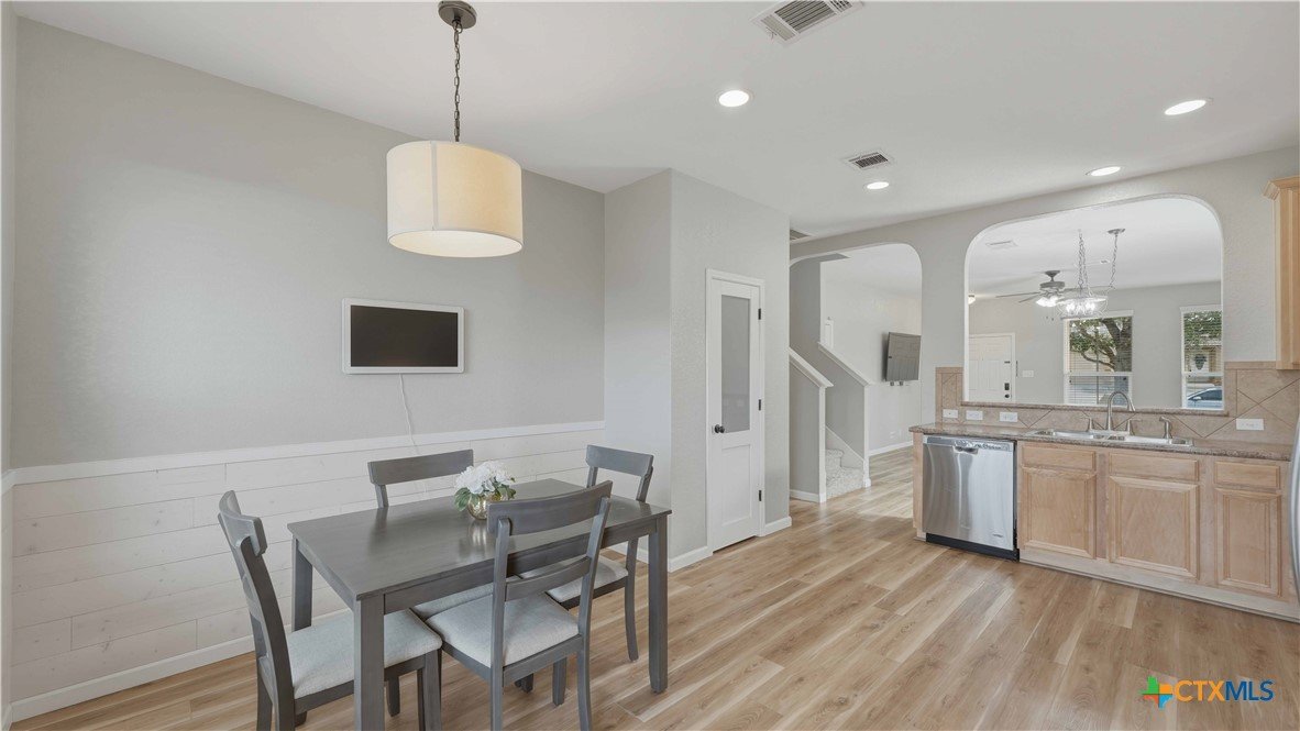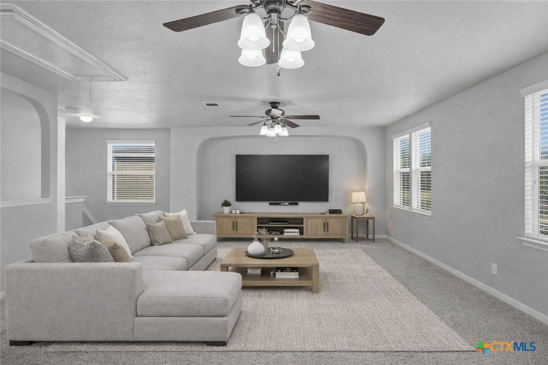 This well-maintained, move-in-ready home offers a spacious floor plan designed for both entertaining and comfortable everyday living. Recent updates reflect a sense of pride of ownership throughout the home. The primary suite is located on the main floor, while the second level includes three additional bedrooms, a versatile loft, a full bath, and a laundry room. Conveniently located near Fischer Park, shopping, dining, schools, and major thoroughfares. The washer, dryer, refrigerator, mounted TV, in the living room, and home security system come with the home. Plus, enjoy the added benefit of no HOA.