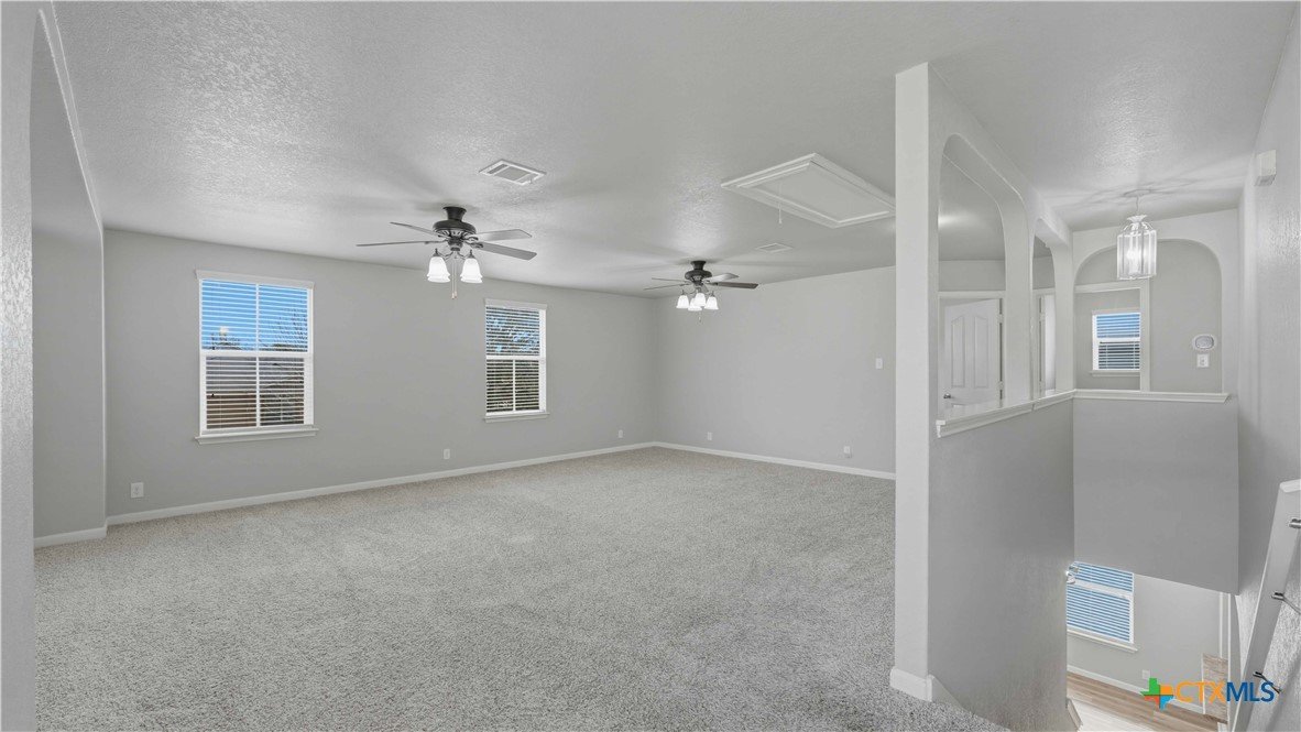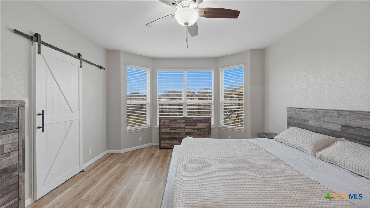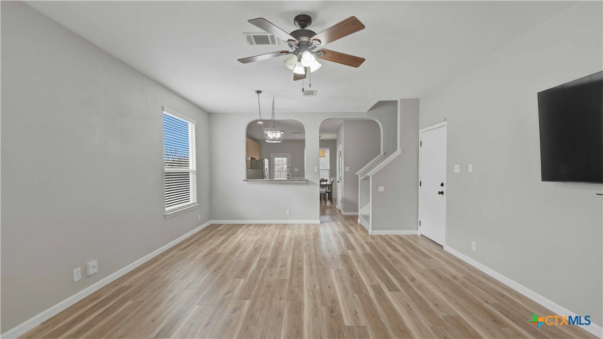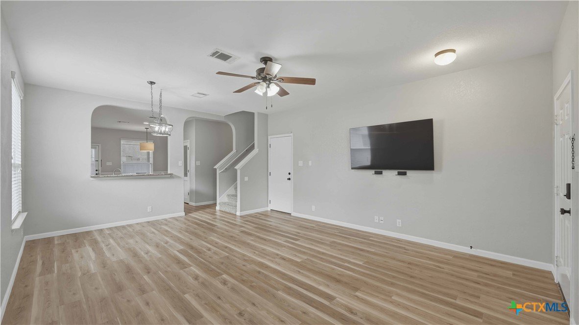 This well-maintained, move-in-ready home offers a spacious floor plan designed for both entertaining and comfortable everyday living. Recent updates reflect a sense of pride of ownership throughout the home. The primary suite is located on the main floor, while the second level includes three additional bedrooms, a versatile loft, a full bath, and a laundry room. Conveniently located near Fischer Park, shopping, dining, schools, and major thoroughfares. The washer, dryer, refrigerator, mounted TV, in the living room, and home security system come with the home. Plus, enjoy the added benefit of no HOA.