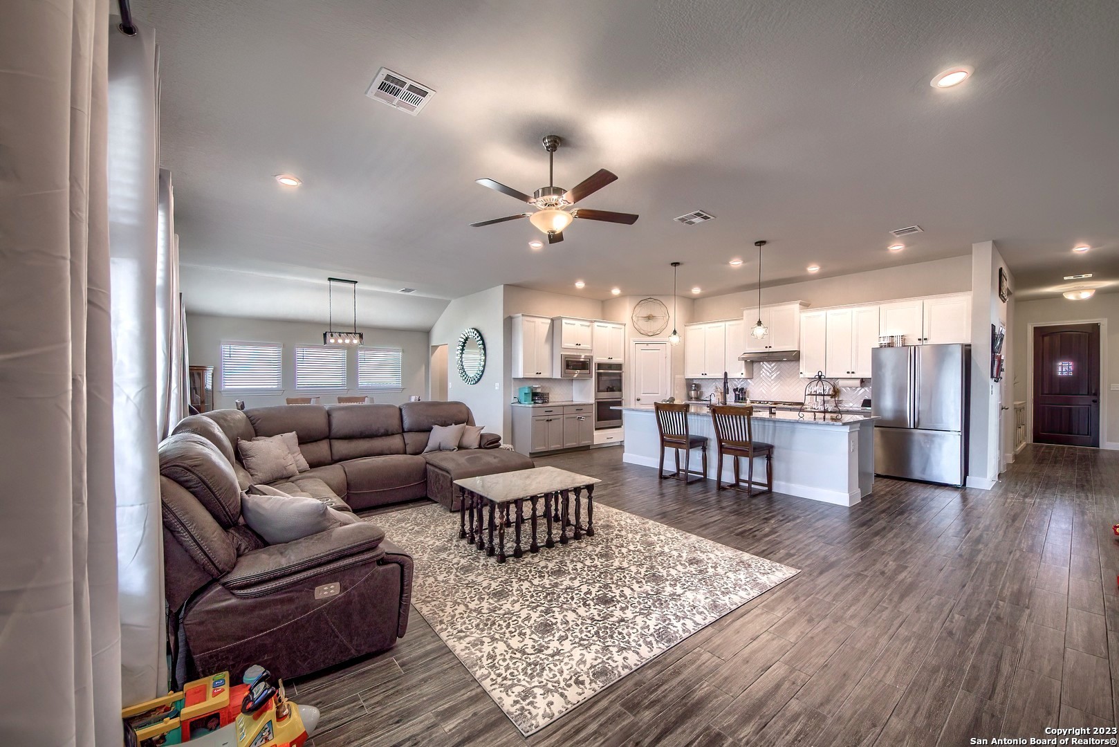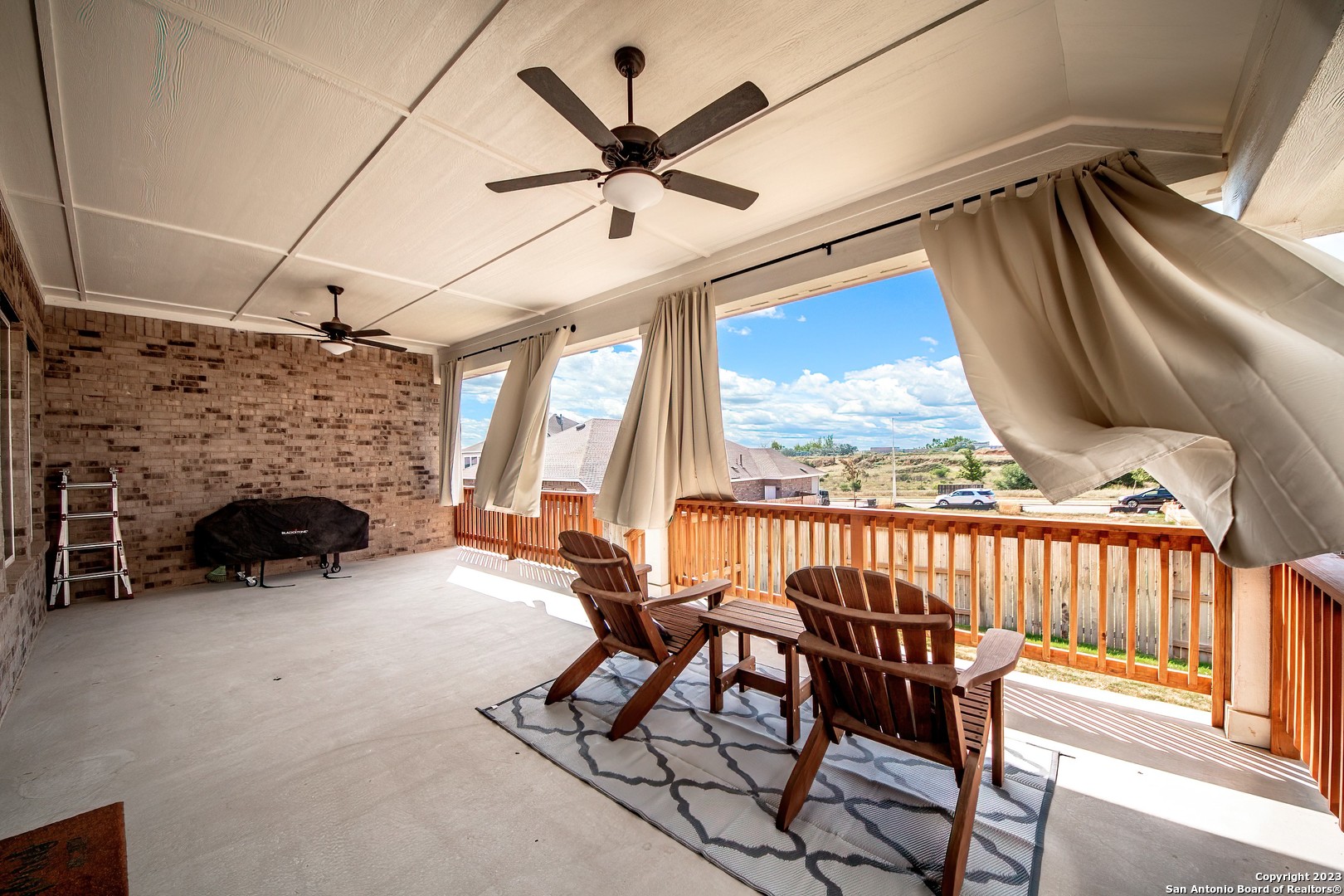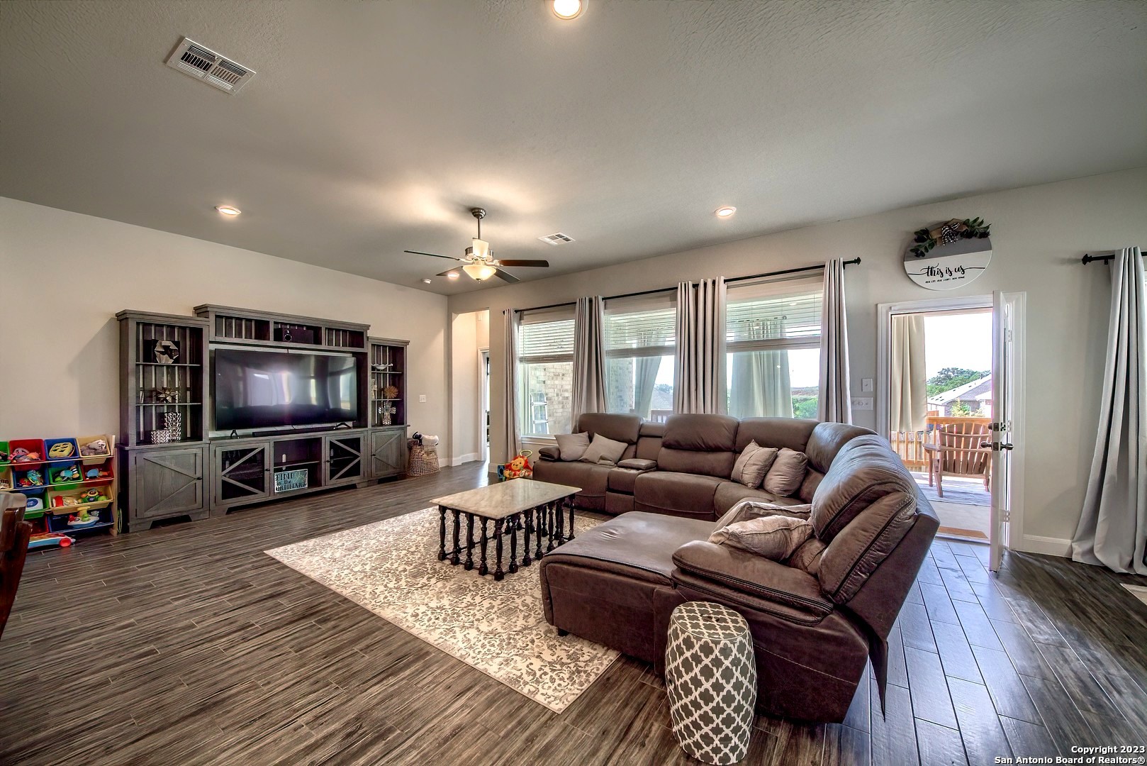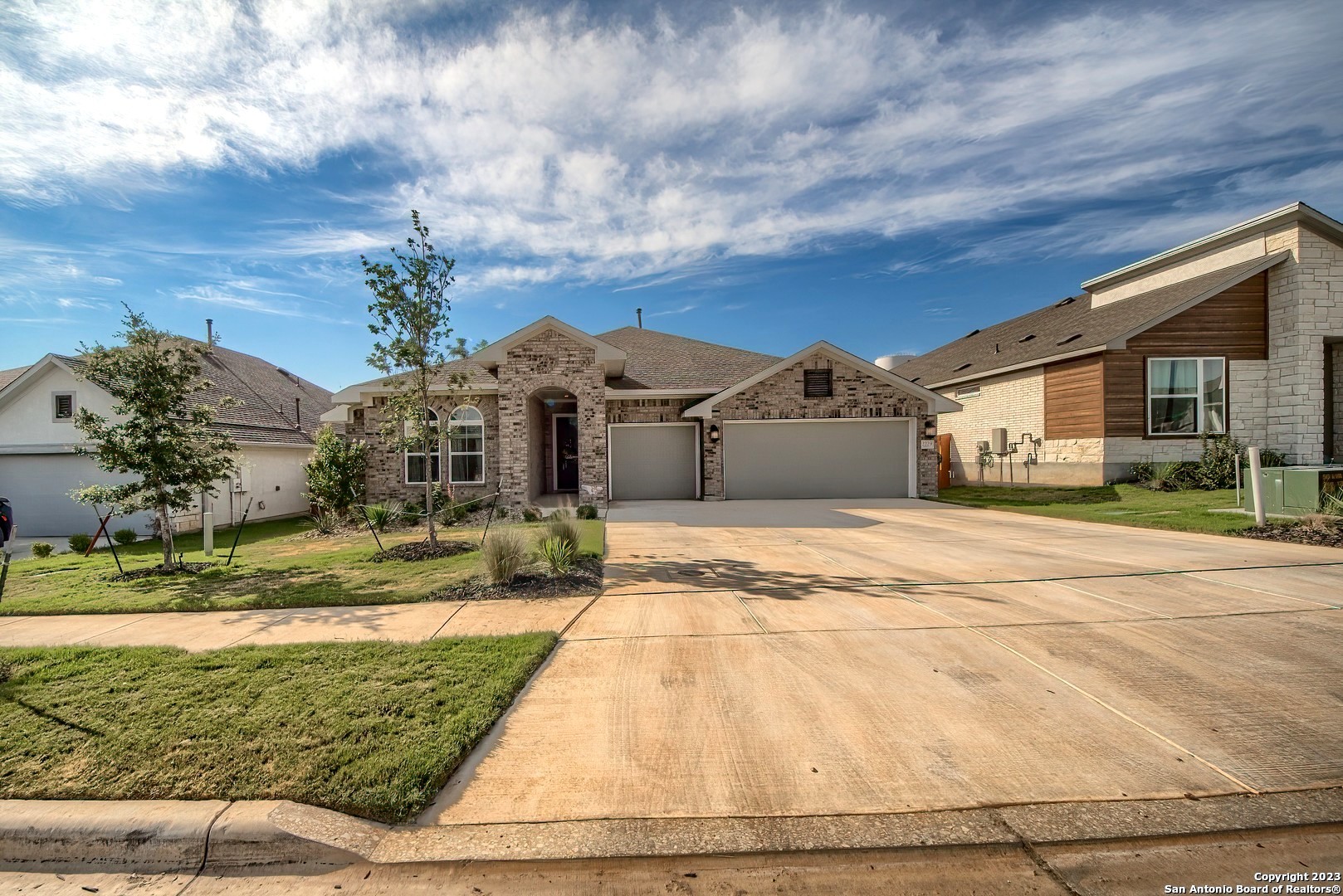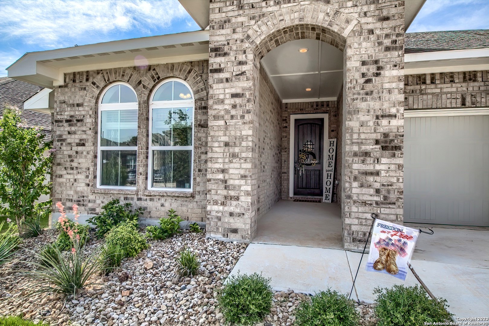 Welcome Veramendi neighborhood New Braunfels Texas. Sellers offering Buyers concessions = $8,000. Step through the front door into this picturesque, One-story 4 Bedroom 3 Full Bathroom exquisite home, elegant flooring, gourmet kitchen, Fantastic Laundry Room tons of cabinetry, custom mud area for organization/ storage and elegant windows enhances the indoor experience energy efficient windows, w/ just the right amount of natural light, and a complete solar system providing clean energy solutions and big savings. The sunlit office/gym/movie/ playroom room offers a versatile extension of the open-concept floor plan. Gourmet kitchen, upgraded appliances stainless steel double oven, gas stove, gorgeous countertops, and exquisite white cabinetry all offering superb functionality to this streamlined kitchen. Gather in the family room and dining room for unforgettable evenings together and enjoy fun-filled weekends from the breezy comfort of the Texas sized covered patio. Two spare bedrooms share a full bath and a Deluxe Guest suite offer privacy and ample personal space for each family member. Retire to your sensational Owner's Retreat, where you can pamper yourself at the end of each day with a delightful en-suite bathroom, garden tub, gorgeous walk-in shower, and a spacious walk-in closet. Wonderful extended rear-covered patio, with two ceiling fans, full sod and irrigation makes this outdoor living space easy to manage.
