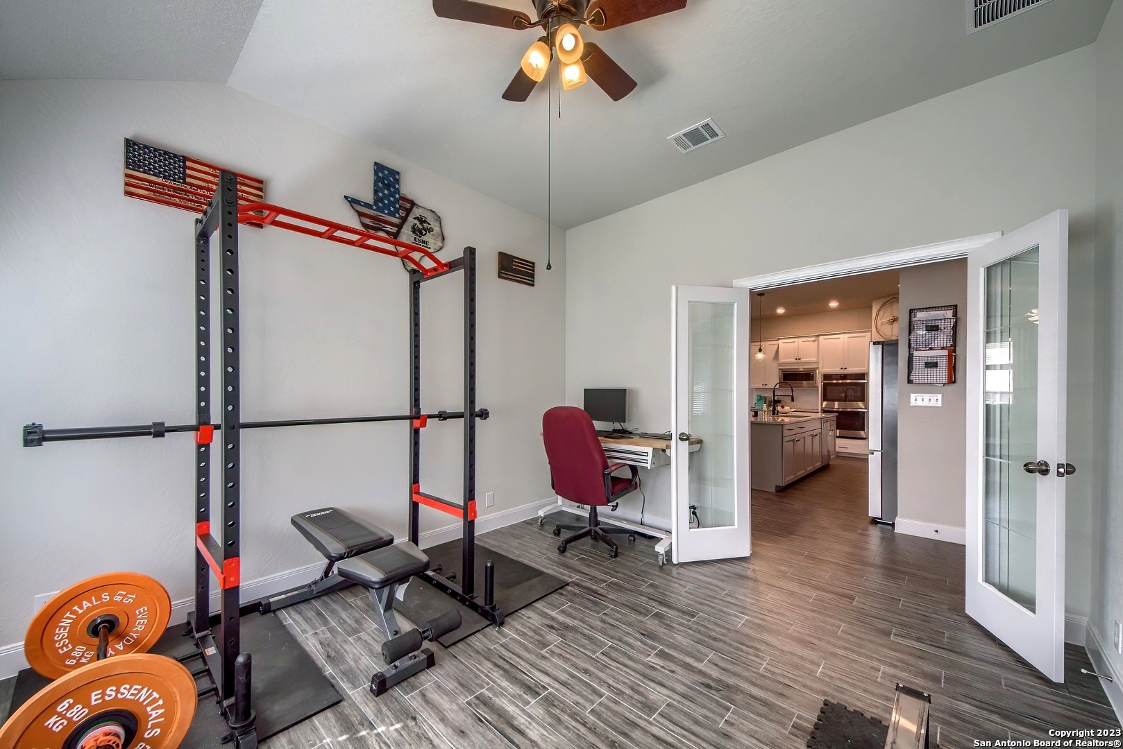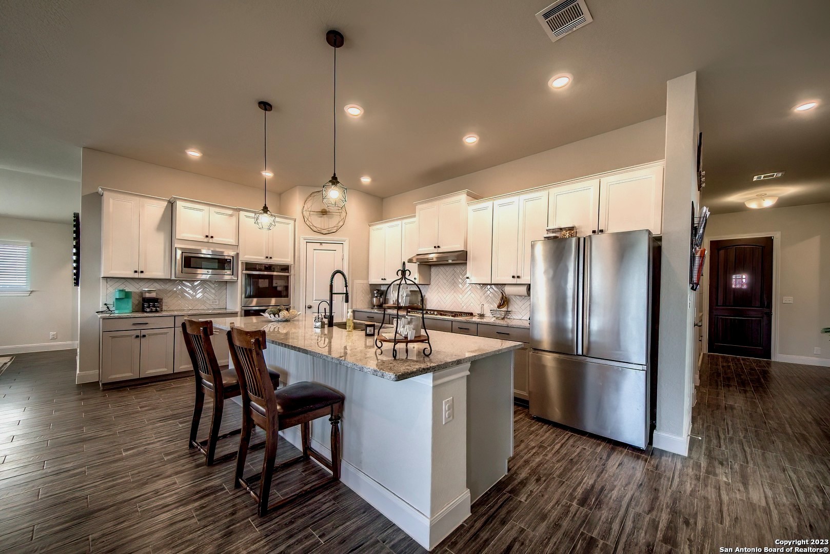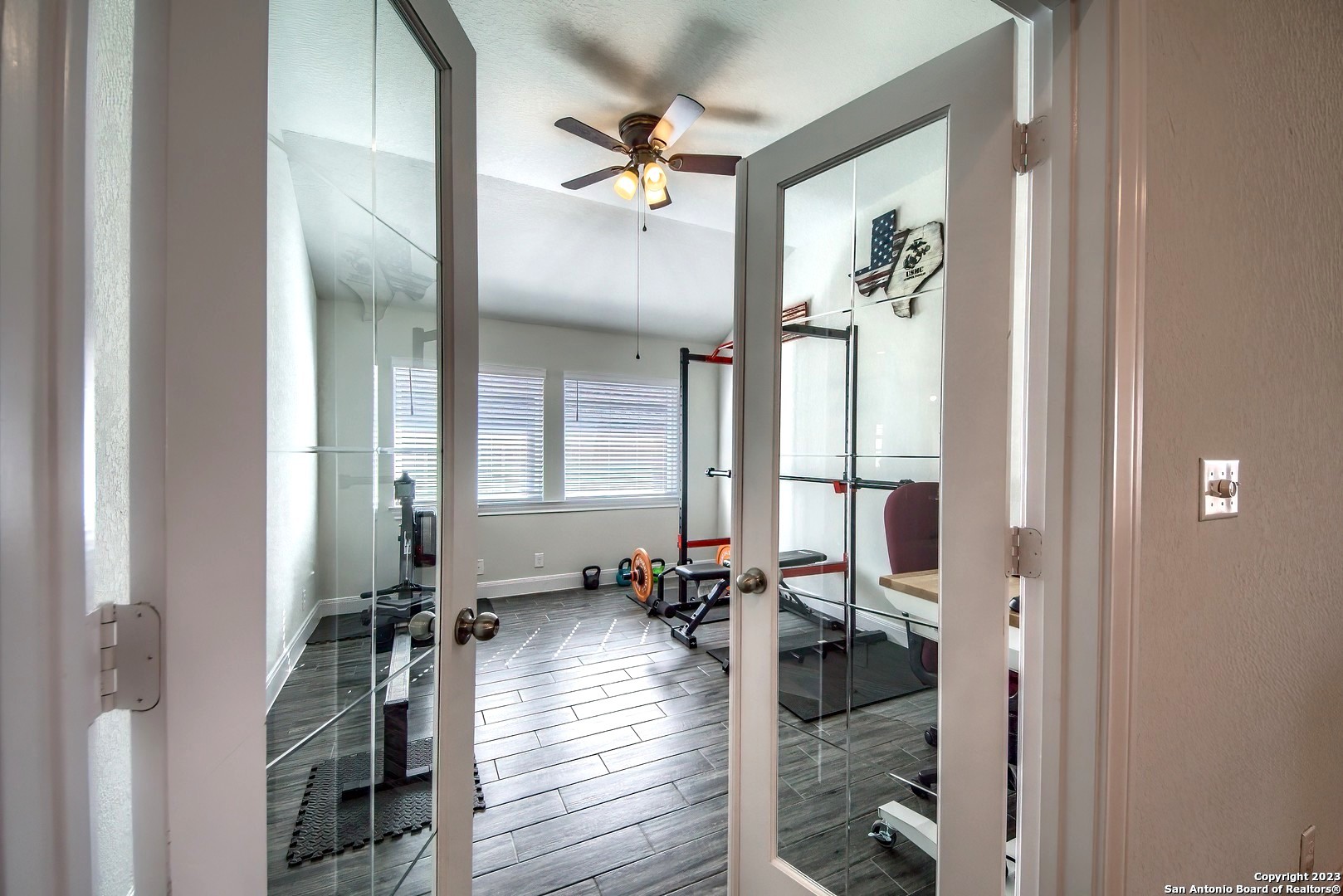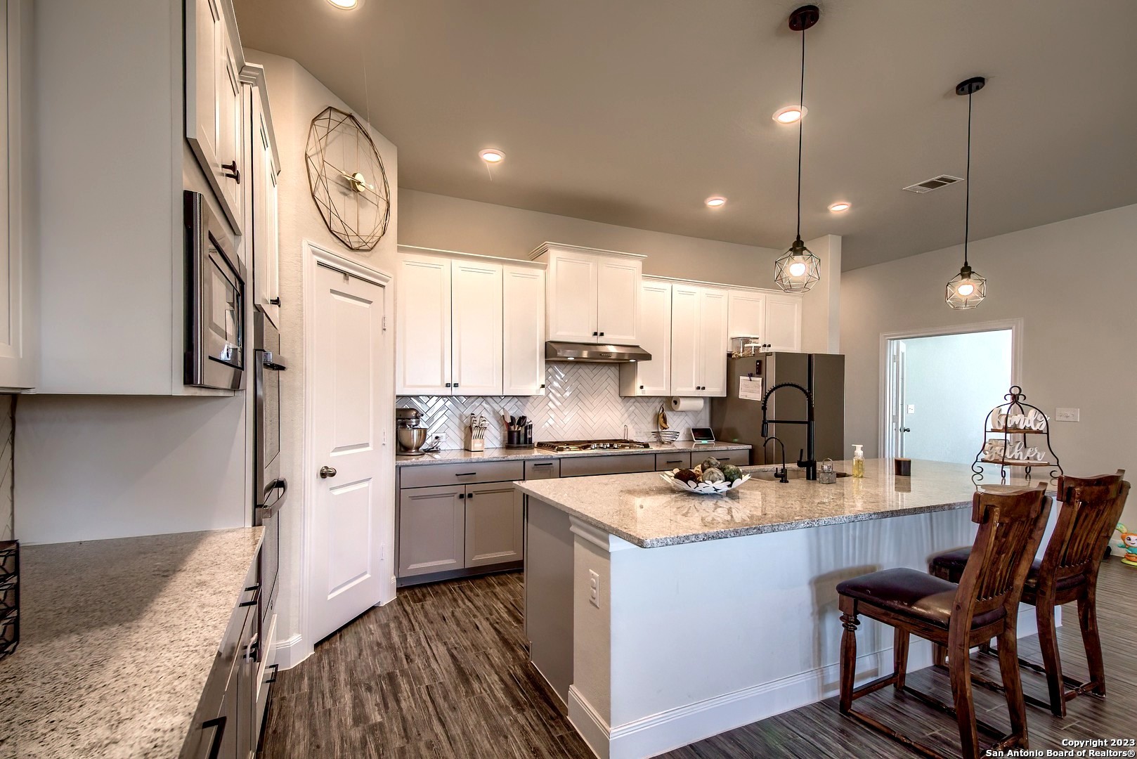 Welcome Veramendi neighborhood New Braunfels Texas. Sellers offering Buyers concessions = $8,000. Step through the front door into this picturesque, One-story 4 Bedroom 3 Full Bathroom exquisite home, elegant flooring, gourmet kitchen, Fantastic Laundry Room tons of cabinetry, custom mud area for organization/ storage and elegant windows enhances the indoor experience energy efficient windows, w/ just the right amount of natural light, and a complete solar system providing clean energy solutions and big savings. The sunlit office/gym/movie/ playroom room offers a versatile extension of the open-concept floor plan. Gourmet kitchen, upgraded appliances stainless steel double oven, gas stove, gorgeous countertops, and exquisite white cabinetry all offering superb functionality to this streamlined kitchen. Gather in the family room and dining room for unforgettable evenings together and enjoy fun-filled weekends from the breezy comfort of the Texas sized covered patio. Two spare bedrooms share a full bath and a Deluxe Guest suite offer privacy and ample personal space for each family member. Retire to your sensational Owner's Retreat, where you can pamper yourself at the end of each day with a delightful en-suite bathroom, garden tub, gorgeous walk-in shower, and a spacious walk-in closet. Wonderful extended rear-covered patio, with two ceiling fans, full sod and irrigation makes this outdoor living space easy to manage.