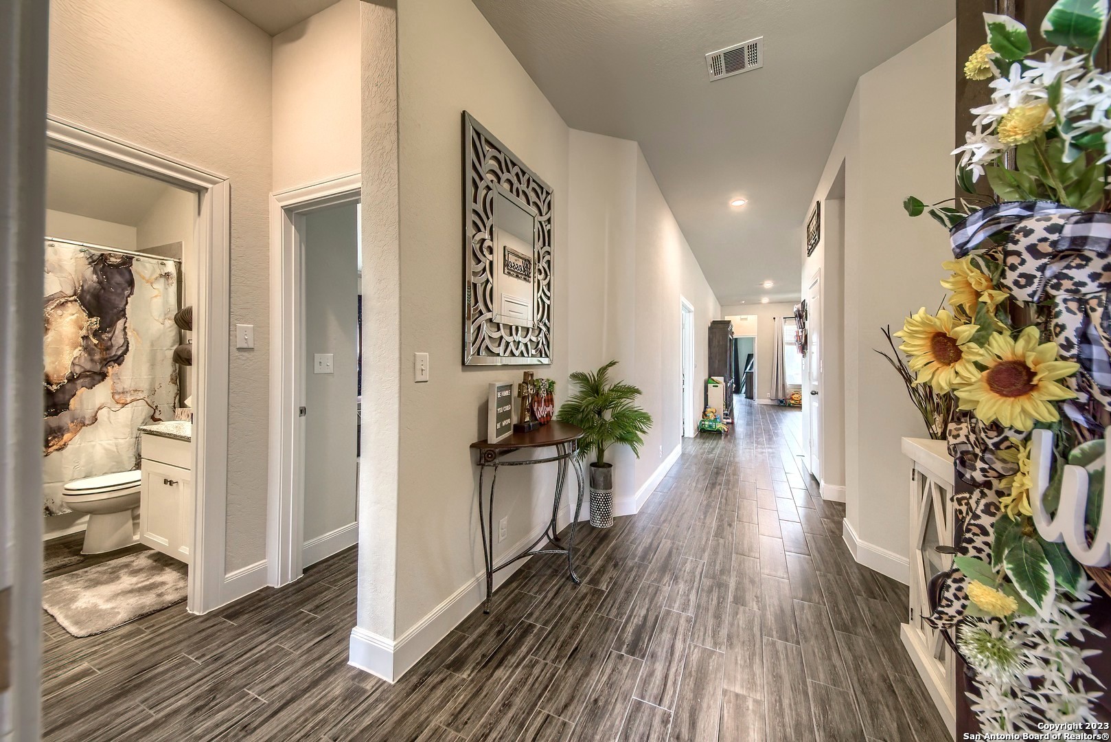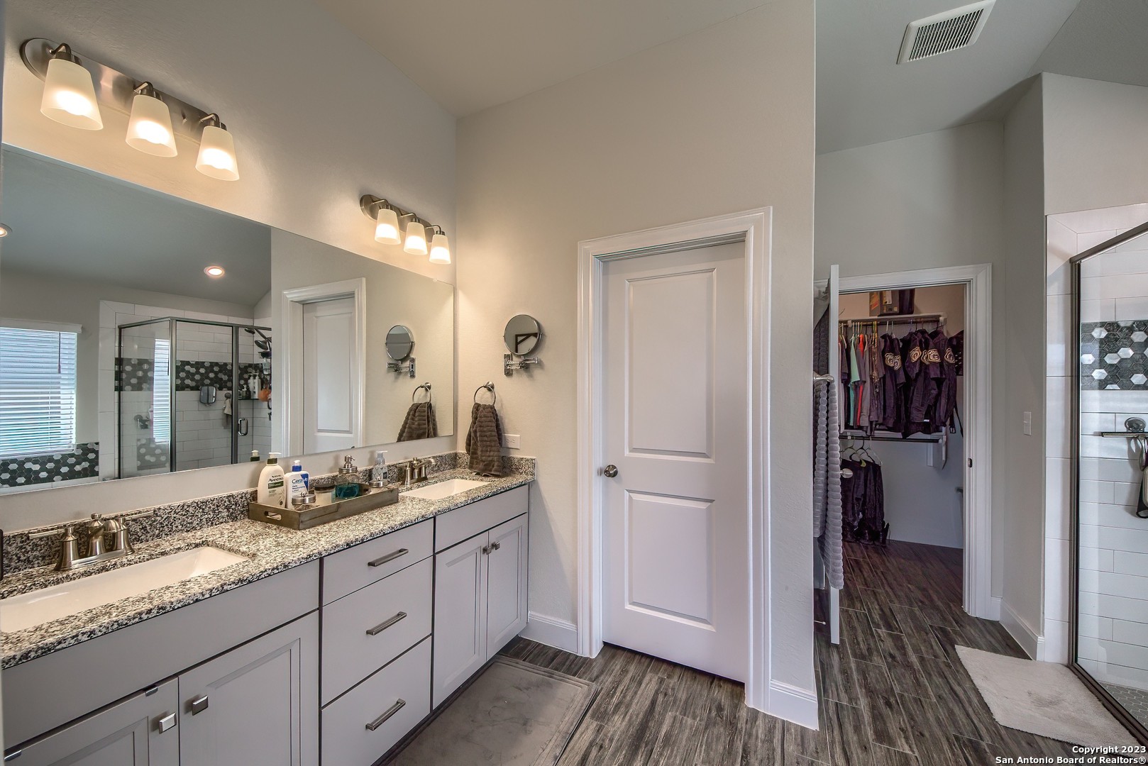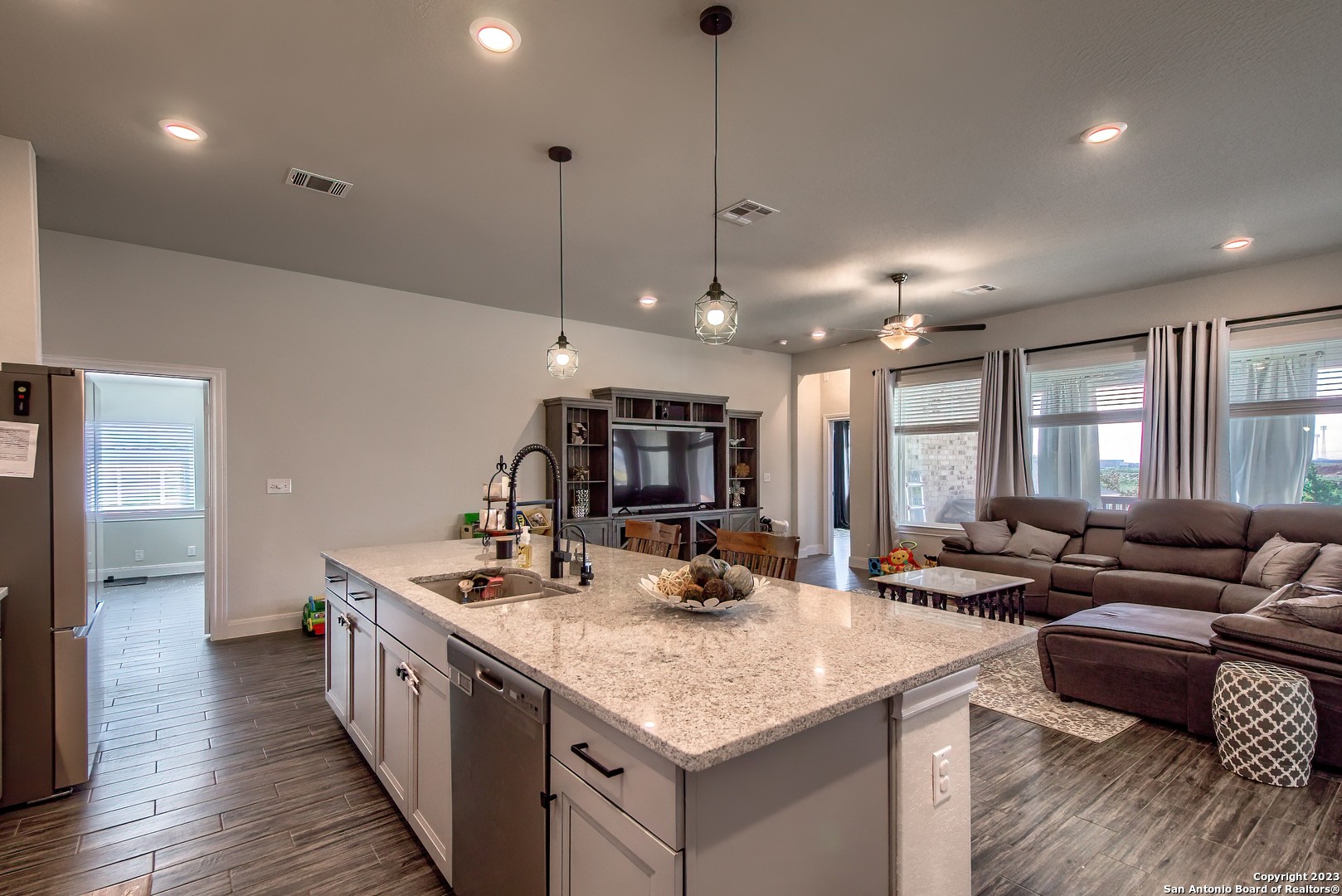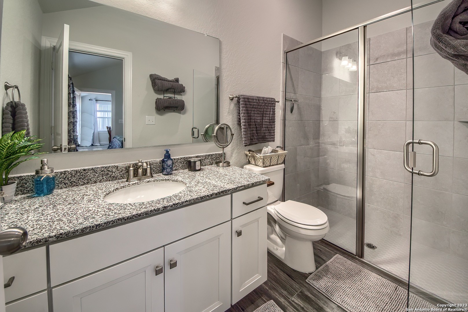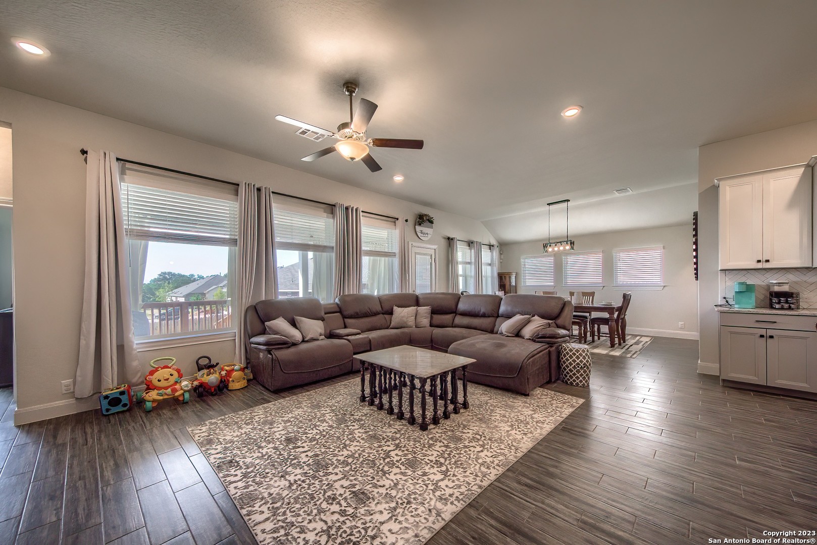 Welcome Veramendi neighborhood New Braunfels Texas. Sellers offering Buyers concessions = $8,000. Step through the front door into this picturesque, One-story 4 Bedroom 3 Full Bathroom exquisite home, elegant flooring, gourmet kitchen, Fantastic Laundry Room tons of cabinetry, custom mud area for organization/ storage and elegant windows enhances the indoor experience energy efficient windows, w/ just the right amount of natural light, and a complete solar system providing clean energy solutions and big savings. The sunlit office/gym/movie/ playroom room offers a versatile extension of the open-concept floor plan. Gourmet kitchen, upgraded appliances stainless steel double oven, gas stove, gorgeous countertops, and exquisite white cabinetry all offering superb functionality to this streamlined kitchen. Gather in the family room and dining room for unforgettable evenings together and enjoy fun-filled weekends from the breezy comfort of the Texas sized covered patio. Two spare bedrooms share a full bath and a Deluxe Guest suite offer privacy and ample personal space for each family member. Retire to your sensational Owner's Retreat, where you can pamper yourself at the end of each day with a delightful en-suite bathroom, garden tub, gorgeous walk-in shower, and a spacious walk-in closet. Wonderful extended rear-covered patio, with two ceiling fans, full sod and irrigation makes this outdoor living space easy to manage.