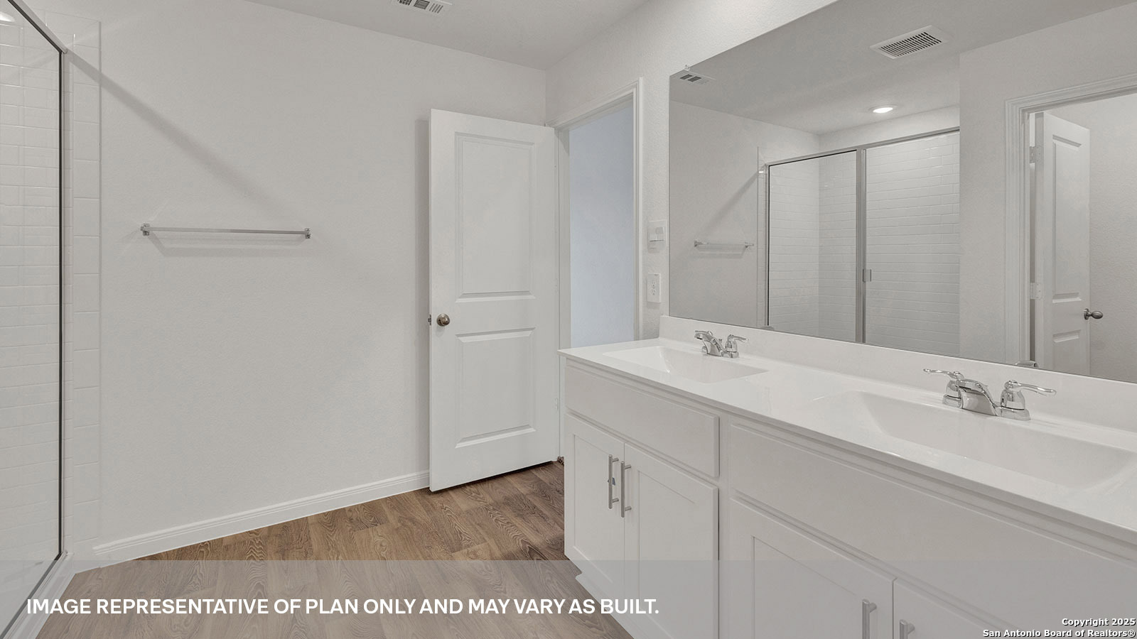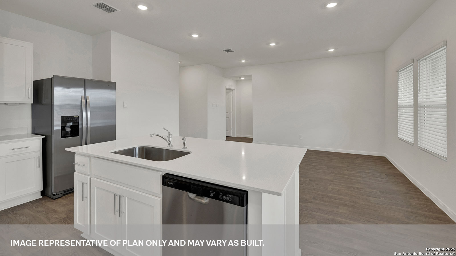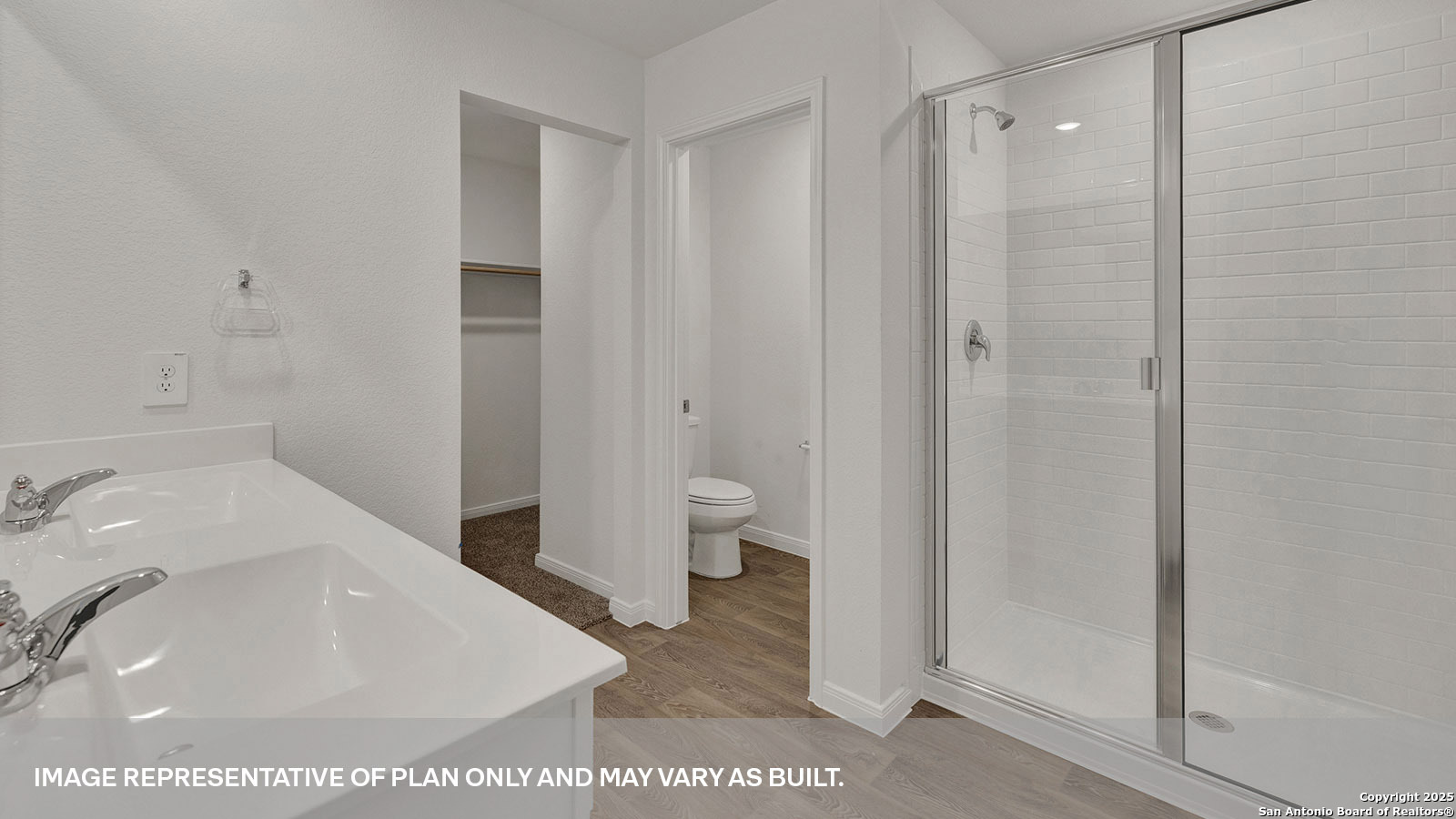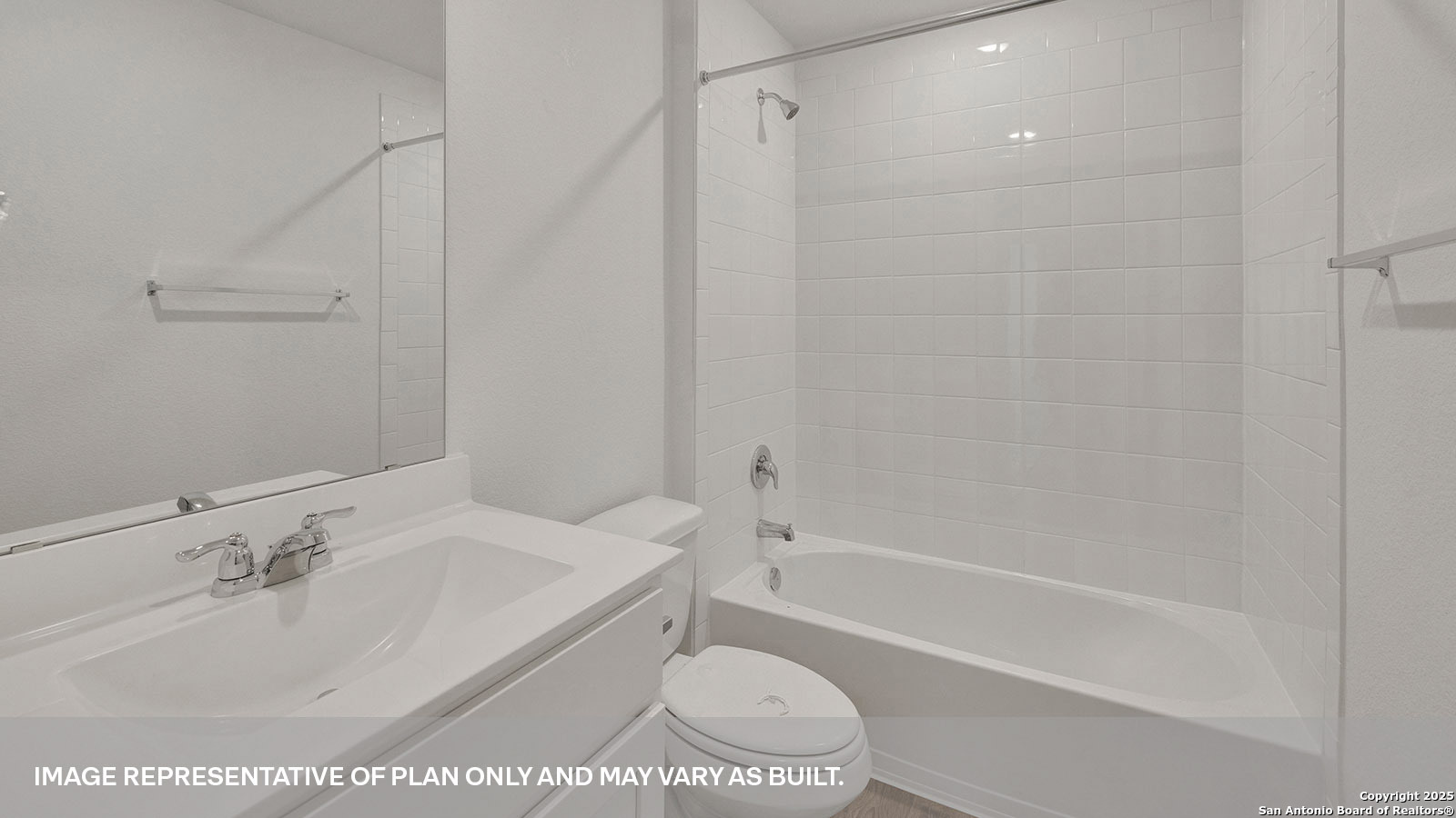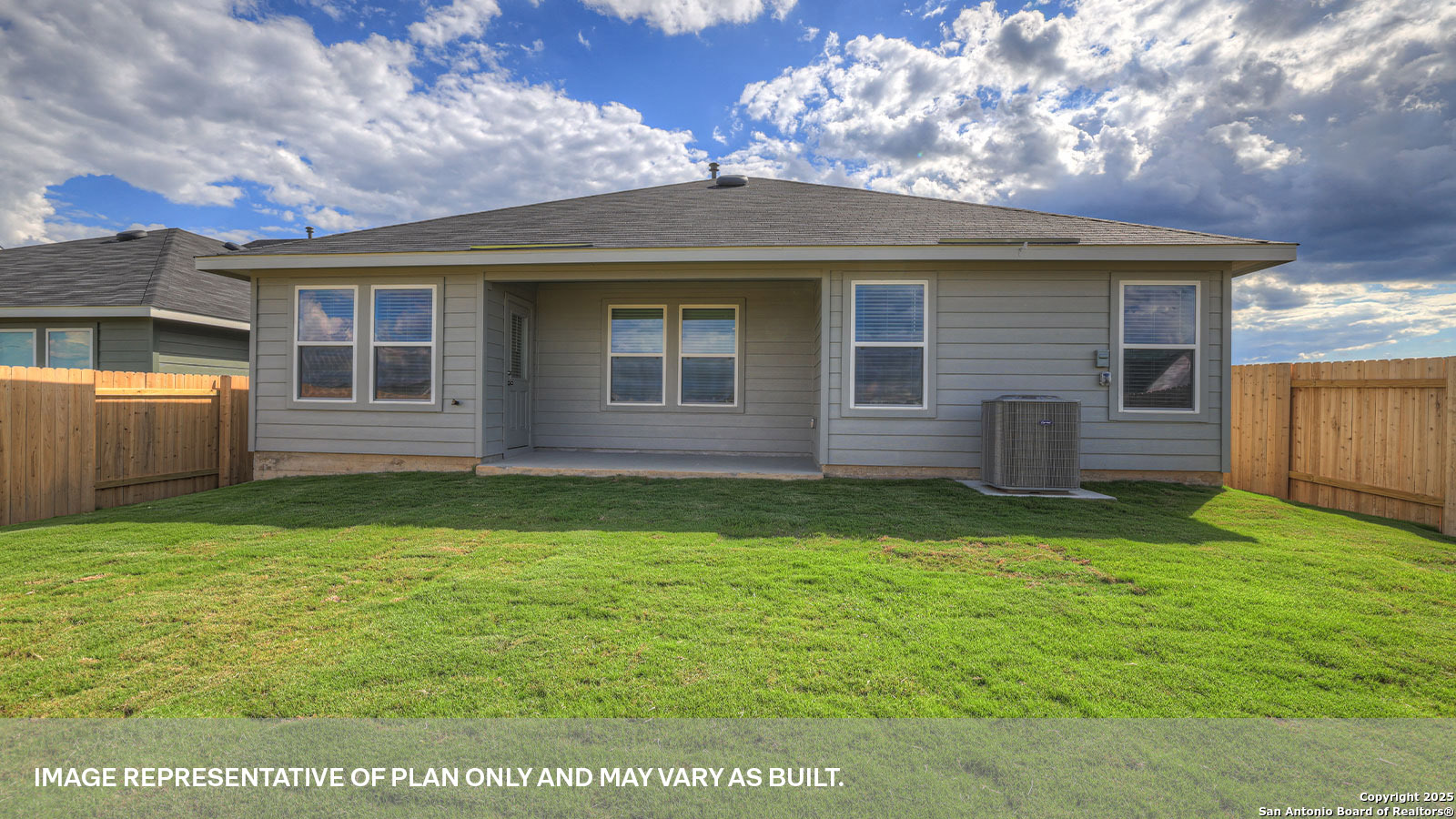 MOVE IN READY! COMMUNITY LOCATED NEXT TO I-35. The Bellvue is one of our one-story floorplans featured at our Trace community in San Marcos, Texas. This home is perfect for smaller families or homeowners looking to downsize. Featuring 3 bedrooms and 2 bathrooms, this home also includes a 2-car garage all within 1,407 square feet of living space. Our homes in Trace feature farmhouse exteriors. Stepping inside the home from the covered front porch, you will find a short hallway that leads to the secondary bedrooms and bathroom. Bathroom 2 includes a tub/shower combination, and both bedrooms include a walk-in closet with shelving. Whether you use these rooms for an office, child's room or guest room, there is amble space for the entire family. The living area is an open concept design, so you are always close to the action in the family room, kitchen or dining area. The kitchen features an island with an undermount sink facing the family room, stainless steel appliances, quartz countertops, corner pantry closet and 36" upper cabinets. Enjoy the natural light with four rear windows looking out to the backyard. The primary bedroom is off the family room and includes its own attached bathroom, making the start of your day a seamless step from sleep to your morning routine. Enjoy the 5' walk in shower, vanity and separate door to the toilet for privacy. A walk-in closet with generous shelving is connected to the bathroom. The utility room is outside the primary bedroom, allowing for the laundry chores to be completed with ease. The Bellvue includes vinyl flooring throughout the common areas of the home, and carpet in the bedrooms. All our new homes feature a covered back patio, full sod, an irrigation system in the front and back yard, and a 6' privacy fence around the back yard. This home features our America's Smart Home base package, which includes the Video Front Doorbell, Front Door Deadbolt Lock, Home Hub, Thermostat, and Deako Smart Switches.