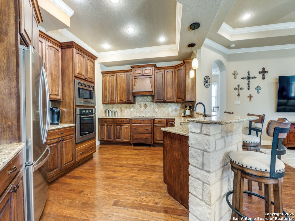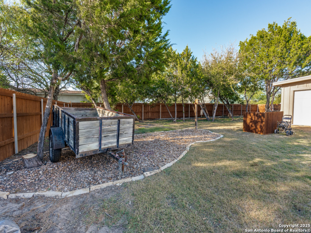 Custom Mediterranean Ranch with Luxury ADU & Lake Dunlap Access!! Welcome to an unparalleled living opportunity, which is tucked away on a private, secluded half-acre lot just outside the city limits. This custom property offers the ultimate blend of luxury, privacy, and income potential-all while enjoying No City Taxes. This custom single-story Mediterranean Ranch is a fully masonry, well-maintained home spanning 2,672 square feet with 3 bedrooms, 3 full bathrooms and an office. The home is entered through double 8-foot fiberglass entry doors and features a built-in alarm system for peace of mind. Designed for sophisticated living, the interior showcases superior finishes, including hardwood floors in the main living areas and kitchen, complemented by tile flooring in the laundry room, and bathrooms. You'll find custom cabinetry and granite on all surfaces. The elegance is defined by crown molding throughout and trayed ceilings in the primary suite, both living rooms, and the separate formal dining room. Relax and entertain across two spacious living areas, anchored by a stunning indoor masonry fireplace and charming interior rock-work arches. The large Primary Bedroom suite is a true retreat, featuring both a large walk-in closet and a separate additional closet for maximum storage. The spa-like bathroom boasts a luxurious custom double shower and a separate Jacuzzi tub for ultimate relaxation. Functionality is maximized with a large laundry room that includes a utility sink, custom cabinets, granite counters, and a dedicated pantry. The entire property benefits from a water softener system feeding both residences. What truly sets this property apart is the separate, custom-built 720 sq. ft. guest house positioned privately in the expansive backyard, which is perfect for multi-generational living or a lucrative rental opportunity. The ADU is a standalone luxury residence, featuring 1 Bedroom and 1 Bath, 10-foot ceilings, and ceramic hardwood tile throughout. The kitchen boasts custom cabinets, an island, and a separate laundry closet. The bathroom features a beautiful custom shower with a rain head. Built for efficiency, it is completely foam insulated and powered by an on-demand propane tankless water heater. Guests will enjoy their own dedicated outdoor spaces, including a covered front patio facing the pool and a private back patio for ultimate seclusion. It even includes an attached 1-stall garage/storage space. Entertaining is always a great time at this property with the resort-style outdoor oasis in the backyard! The large backyard is completely fenced for maximum privacy and secured by a 10-foot electric gate. The expansive concrete driveway extends all the way to the back, providing ample room to keep your boat on premises with a boat launch a mere mile away. Cooling off is just a short few steps out the back door. The yard centers around a sparkling inground swimming pool and a substantial covered patio with a grand outdoor wood-burning masonry fireplace-perfect for year-round entertaining. The entertainment area is fully equipped with a built-in gas grill and refreshment fridge and the entire home is prepped for the holidays with built-in trim lighting. You'll save significantly on utilities thanks to the private well used exclusively for the inground sprinkler system and filling the pool. The property boasts extensive recent upgrades, including a two-year-old roof on both structures and fresh exterior paint. This desirable location belongs to an affordable HOA that offers exclusive access to a community park on the waterfront at the end of the road. Features include a pavilion with a grill, an ADA-accessible ramp, a large dock w/swimming area and boat slips