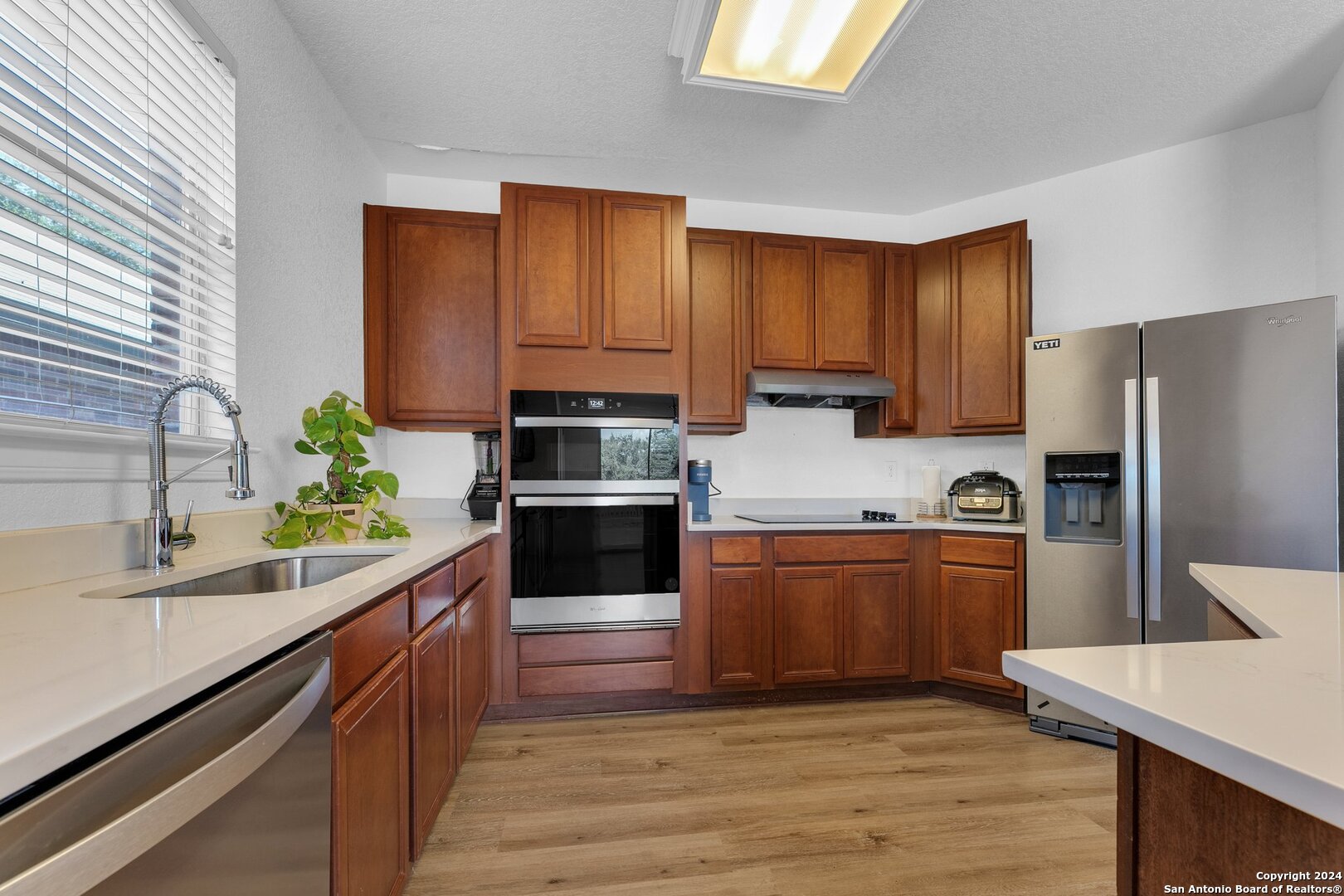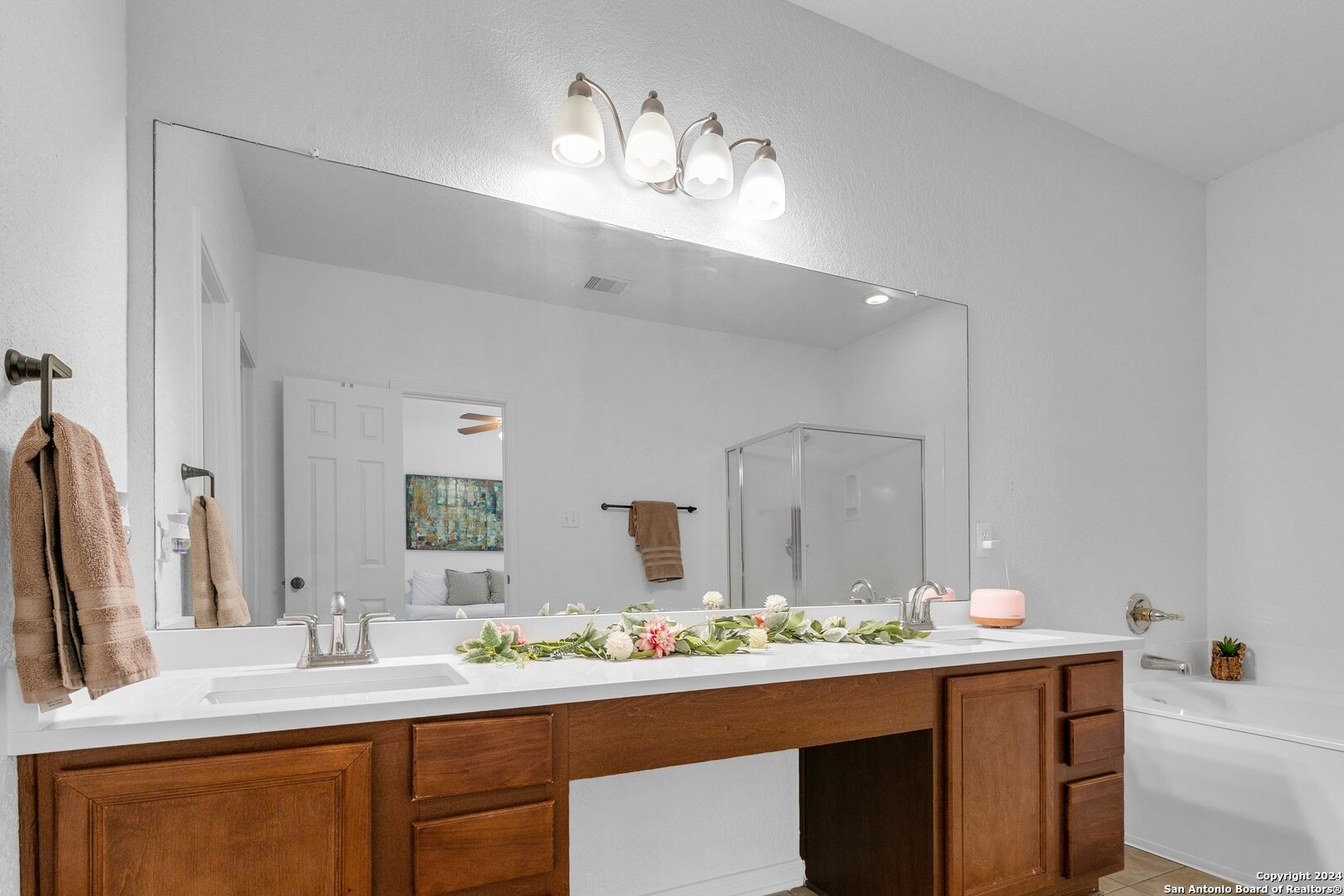 Welcome to your dream rental home at 22319 Mesa Knoll, located in the highly sought-after Stone Oak community in San Antonio, TX 78258! This beautifully renovated one-story residence offers a perfect blend of modern comfort and elegance. The open floor plan boasts high ceilings, abundant natural light, and exquisite finishes throughout. With all-new flooring (no carpet) and freshly painted interiors, the home feels bright and inviting. The gourmet kitchen features brand-new quartz countertops, new appliances, and a stylish new faucet. The spacious living area is ideal for relaxing or entertaining. The master suite includes a luxurious en-suite bathroom with dual vanities, new quartz countertops, and updated toilets. Additional bedrooms are generously sized with ample closet space, and there's a versatile office or study, perfect for remote work. Located in a gated community, you'll enjoy added security along with access to top-rated schools, shopping, dining, and nearby amenities like Stone Oak Park and Village at Stone Oak shopping center. The community pool is also available to cool off during warm Texas days. Don't miss the chance to rent this fully renovated home in a prime location. Schedule your viewing today!