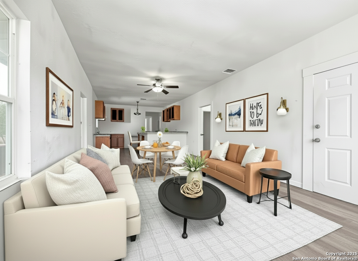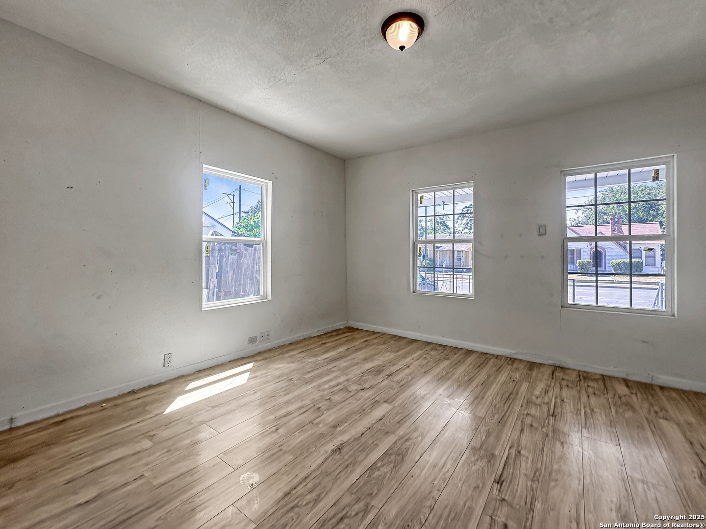 This fabulous home sits just east of downtown San Antonio and is located as much sought after Alamo Dome District. This home features a large, living dining combination a primary bedroom with a primary bath that features a more than ample oversized shower It offers a split bedroom floor plan with three additional bedrooms towards the rear of this home. Also, has an indoor utility area. The backyard features a rear fence yard at one car detached garage with adjacent storage facilities. Minutes to 3 major freeways and downtown. A great location.
