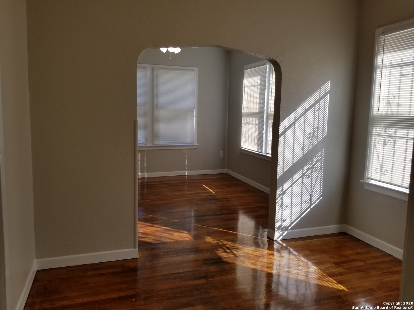 Lovely 1 bedroom 1 bath duplex with beautiful hardwood floors. Move in ready Includes central heat and air, refrigerator, stove. Ceramic tile in kitchen and bathroom Freshly painted Close to Fort Sam Houston Dogs under 25 pounds only no cats
