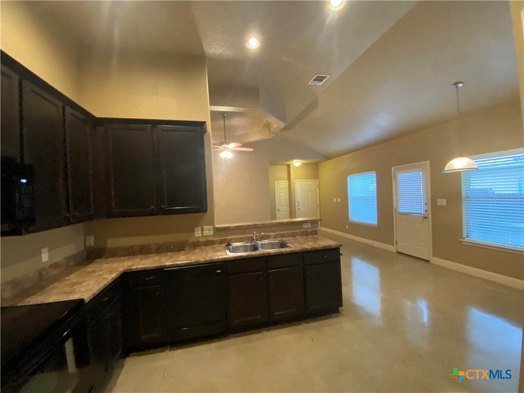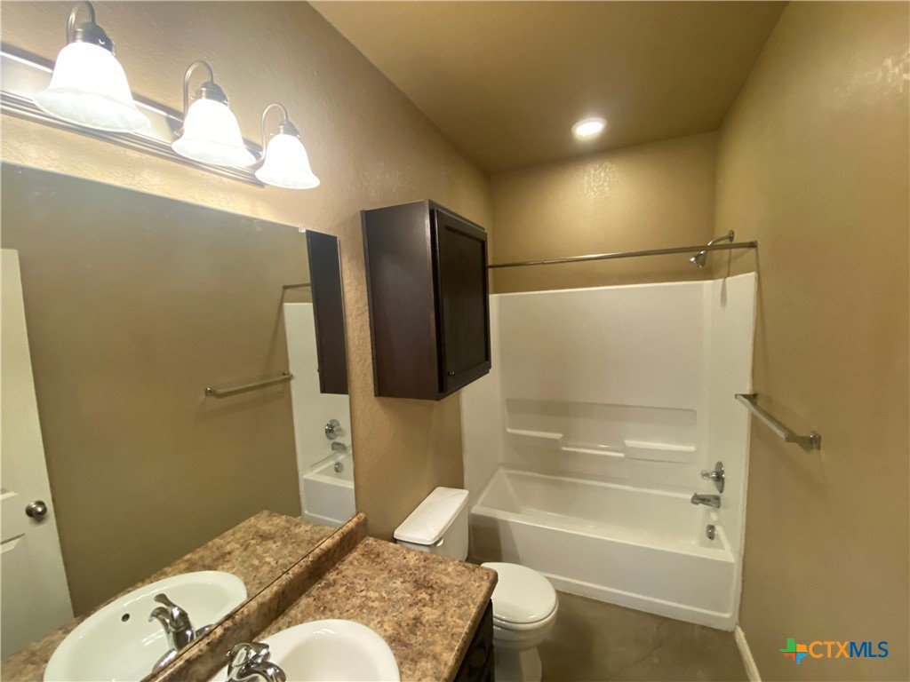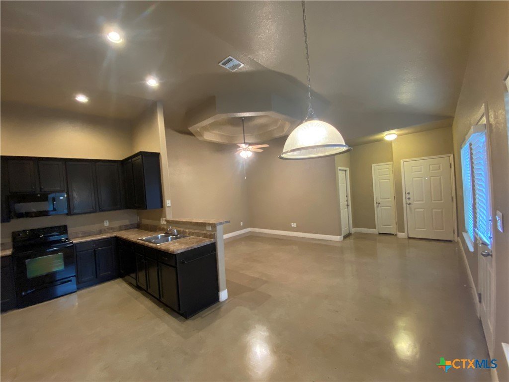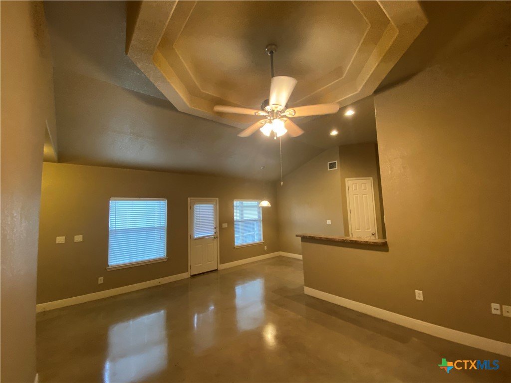 3.2 Miles to Creekside Shopping, Restaurants, & Entertainment. 3.5 Miles to Downtown New Braunfels. Stained Concrete Floor - no carpet. Kitchen Includes: fridge, built in microwave, stove/ oven range electric, dishwasher, breakfast bar, pantry, & recessed lighting. Other Features: washer / dryer connections, shower/tub combo, walk in closet, ceiling fans, fenced in backyard, covered back patio. CISD 1 pet max, no cats please, dog max size 40 lbs *2 weeks free rent off the first full month*
