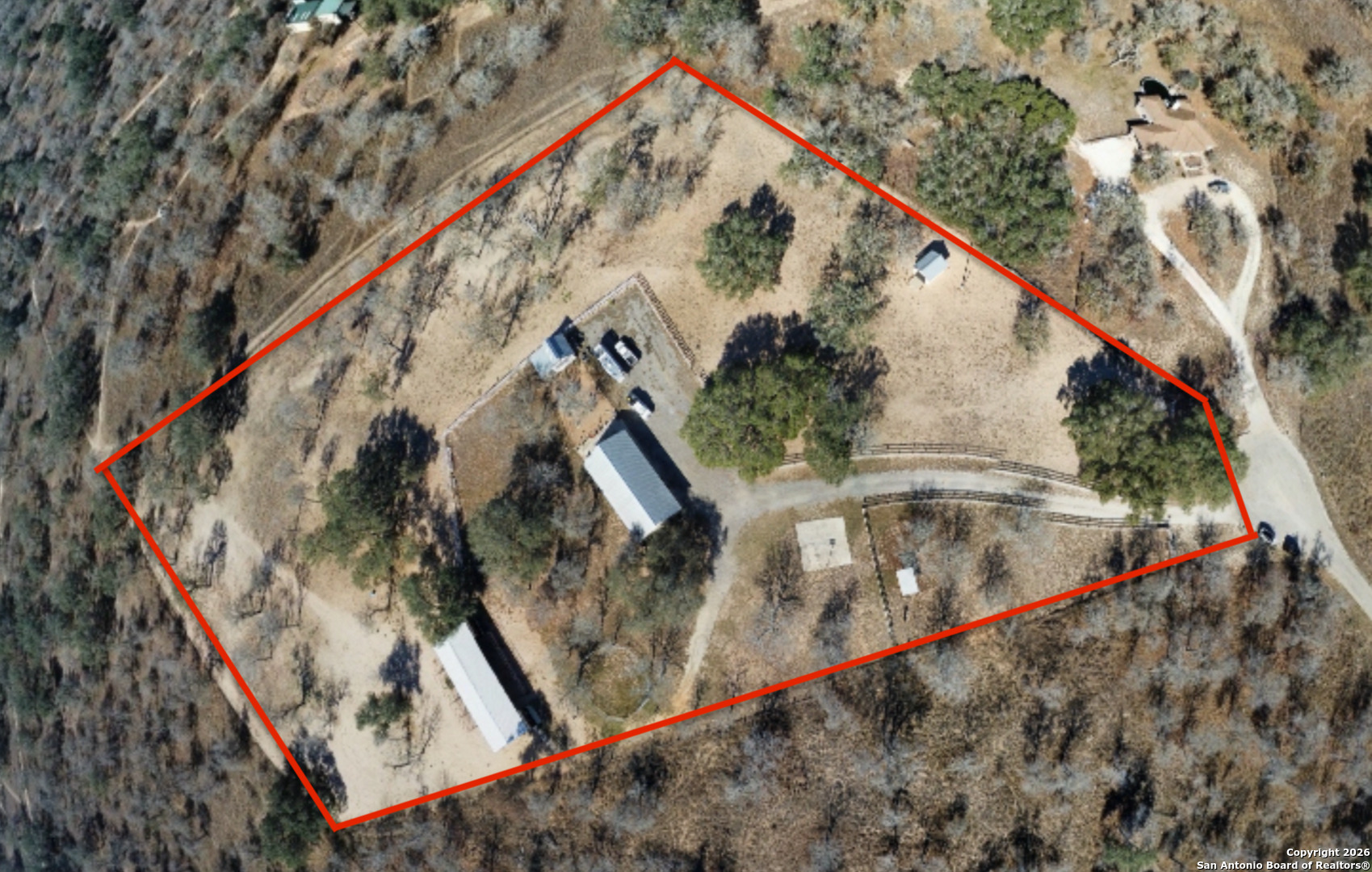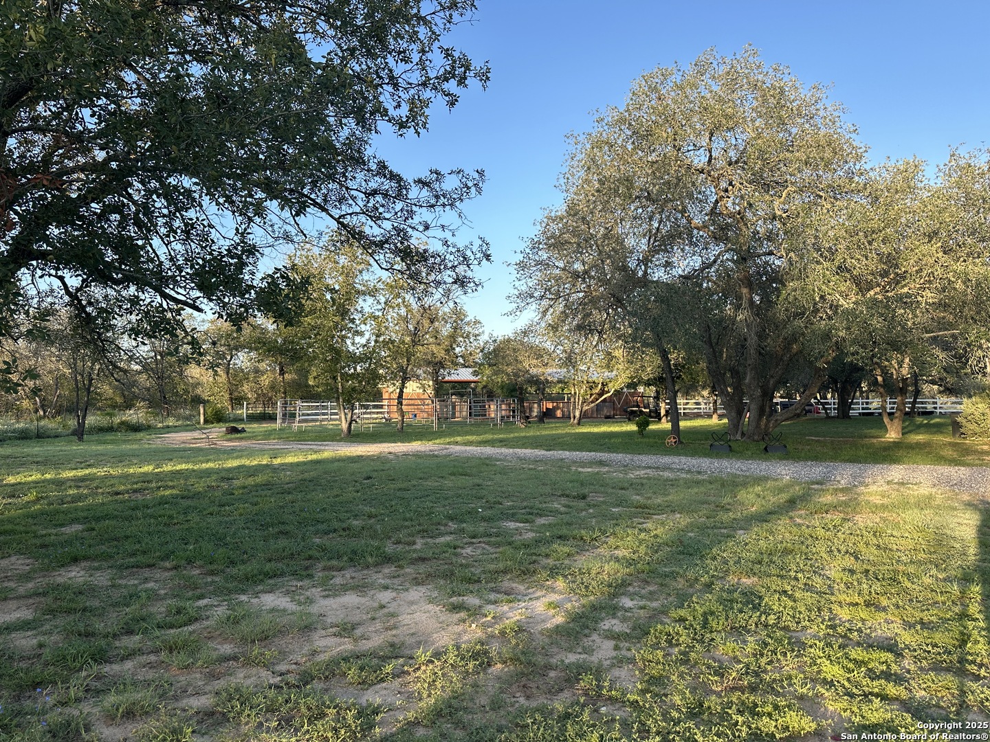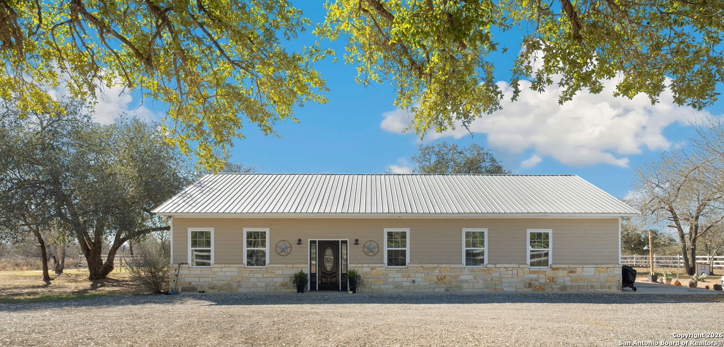 Tucked away at the end of a quiet cul-de-sac in the sought-after Great Oaks Subdivision, this stunning 8.13-acre estate offers the perfect blend of privacy, elegance, and country living, all just 35 minutes from San Antonio. Surrounded by mature oak trees and white fencing, this move-in ready property is ideal for those who crave both tranquility and convenience. The home offers a fully updated kichen with under-cabinet lighting and modern finishes. The remodeled bathrooms feature contemporary touches and high-end fixtures. Exterior roperty features include an electric gated entrance, beautifully landscaped grounds featuring a custom rock garden, and a spacious driveway with plenty of room for trailers and multiple vehicles. This property is a horse lover's dream with an 84x36 covered pole barn, a 14x16 finished tack room, a 12x12 covered feed room, wash area, custom gutters and no-climb fencing with wood panel doors. Designed for comfort, funciton, and aesthetic appeal. Outside you will also find a spacious storage shed and a tiny home ready to be finished out. Your Texas ranch dream awaits!