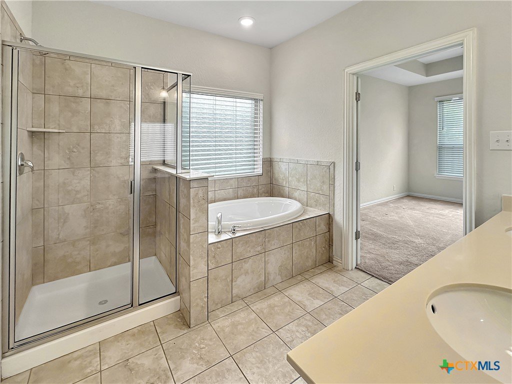 Spacious, Stylish, and Perfectly Located! This beautiful home built by Gehan offers a practical blend of comfort, space, and convenience. Situated in a prime New Braunfels location with easy access to I-35, this home is perfectly positioned for commuters to San Antonio or Austin, and just minutes from Gruene Hall, Creekside, and HEB. With 4 bedrooms, 2.5 bathrooms, and 2,712 square feet, this open-concept floorplan is designed to fit a modern lifestyle. The main bedroom is located on the first floor and features a coffered ceiling that adds elegance and dimension. The primary bathroom comes with a double vanity, walk-in closet, large garden tub, and a separate shower. Upstairs, you'll find three additional bedrooms and a spacious second living area or game room, perfect for an office, entertaining, movie watching, or simply relaxing. The gourmet kitchen is a chef’s dream with 42" cabinets, granite countertops, a large island, stainless steel appliances (refrigerator included), a gas range, and plenty of storage and prep space. Don’t miss the opportunity to make this beautiful, well-located home yours — whether you’re looking for space, convenience, or style, this home has it all! Seller will contribute $5000 to buyers' closing costs.