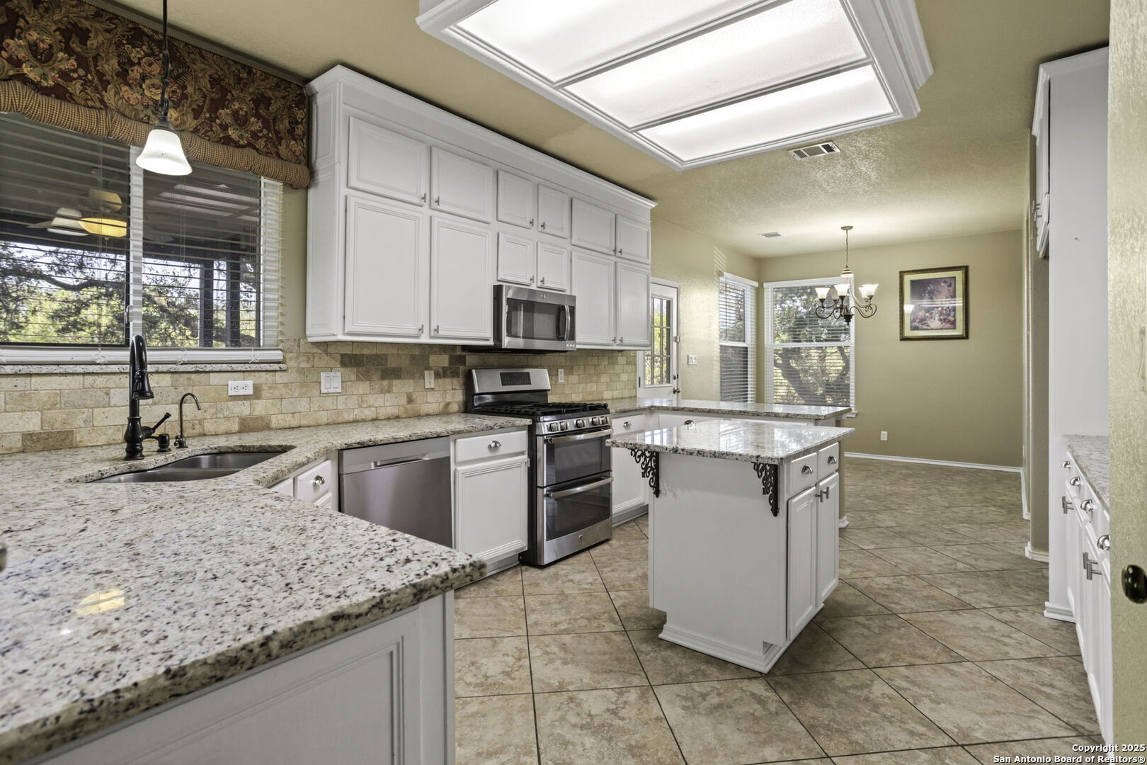 Your search is over! This immaculately maintained family home is move-in ready! You'll enjoy 5 BRs, 3 full baths, side entry 2 car garage, on a 1/3 acre lot! Office space built in attic for separate study/office room. Huge driveway which can hold more than 5 cars! Updated Windows and Just a year-old HVAC system. Outdoor living at its best w/ screened covered patio, backyard covered with turf for low maintenance! Updates include granite kitchen counters, tumbled marble backsplash, upper kitchen cabs, butcher block island, SS appliances. All Lg secondary BR's have walk-in closets! Abundant storage / Texas basement! Perfect location! Top NEISD! Get $5000 towards rate buydown/closing costs if the seller's preferred lender is used.