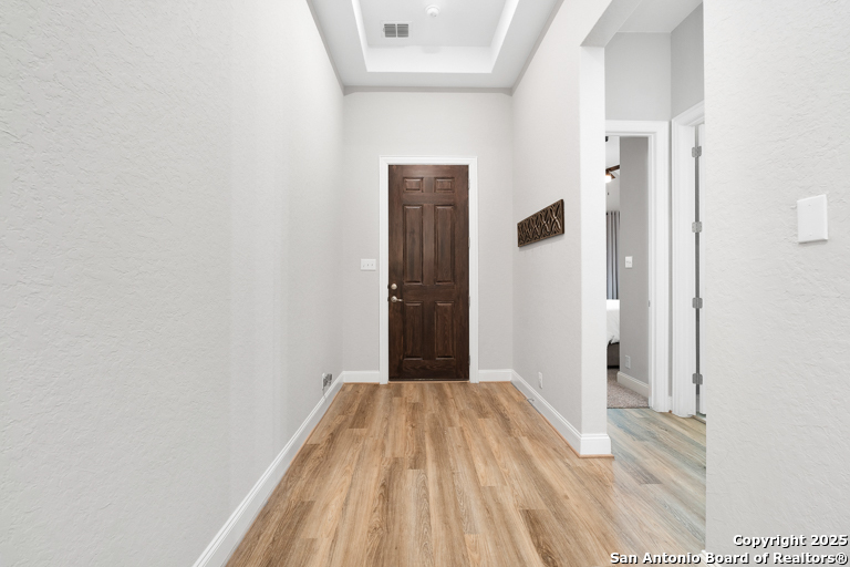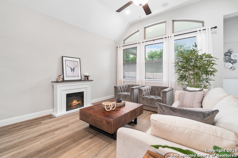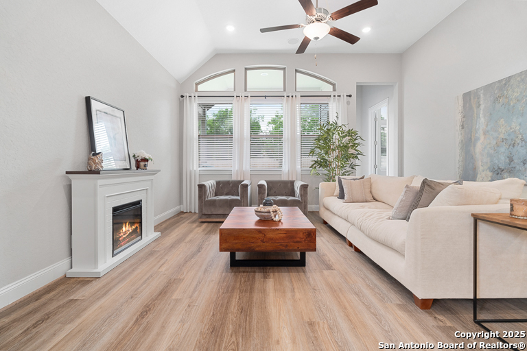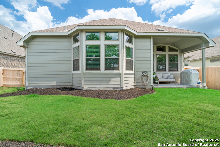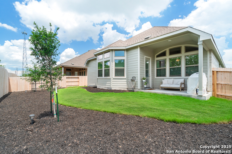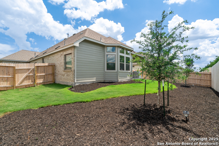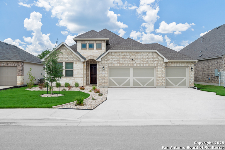 Located just one mile from historic Gruene, this immaculate 4-bedroom, 3-bath home by Brightland Homes offers 2,170 sq ft of thoughtfully designed living space. Built in 2022, it showcases 10' ceilings, luxury vinyl plank flooring, and over $50K in premium upgrades. The open-concept layout features a chef-inspired kitchen with quartz countertops, built-in stainless appliances, and modern tile finishes. The spacious master suite includes a bay window, spa-like bath, and access to a covered patio perfect for entertaining. Guest rooms are privately situated for maximum comfort. Additional highlights include epoxy garage floors, owned water softener, surround sound with iPad control, and a 3-car garage. Energy-efficient lighting and appliances, stylish hardware, and upgraded landscaping complete this move-in-ready gem. Enjoy living in a sought-after community near parks, shopping, and top-rated schools.