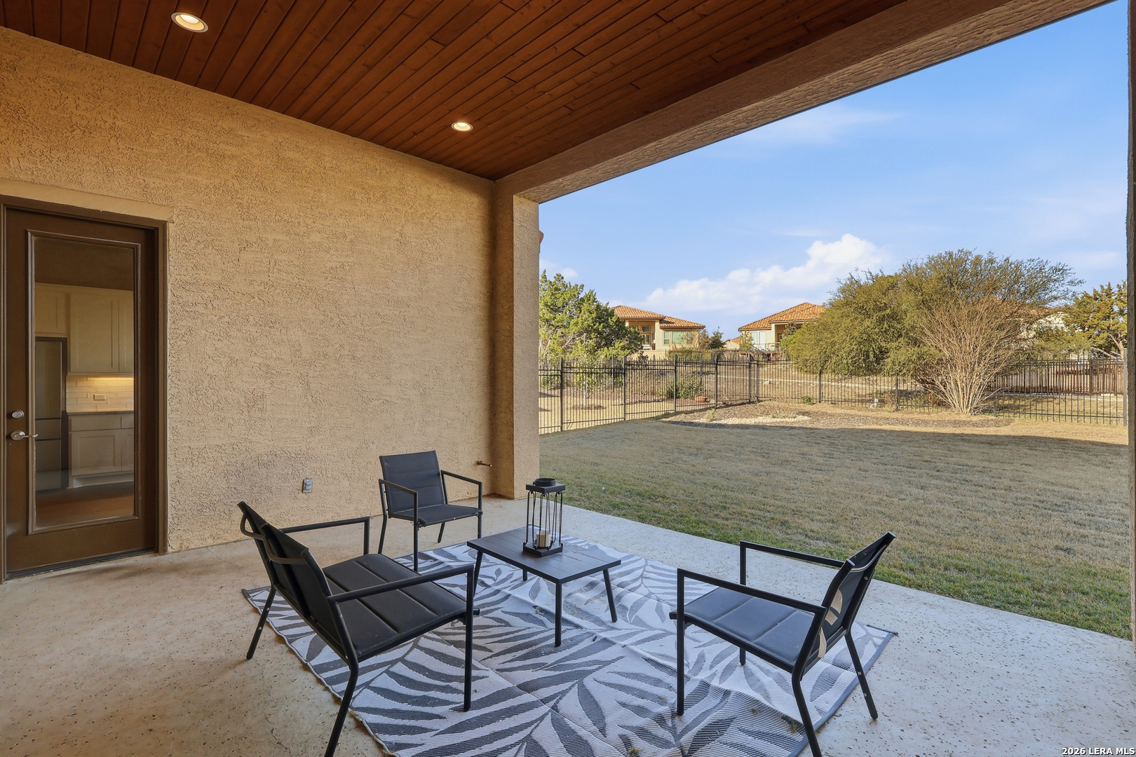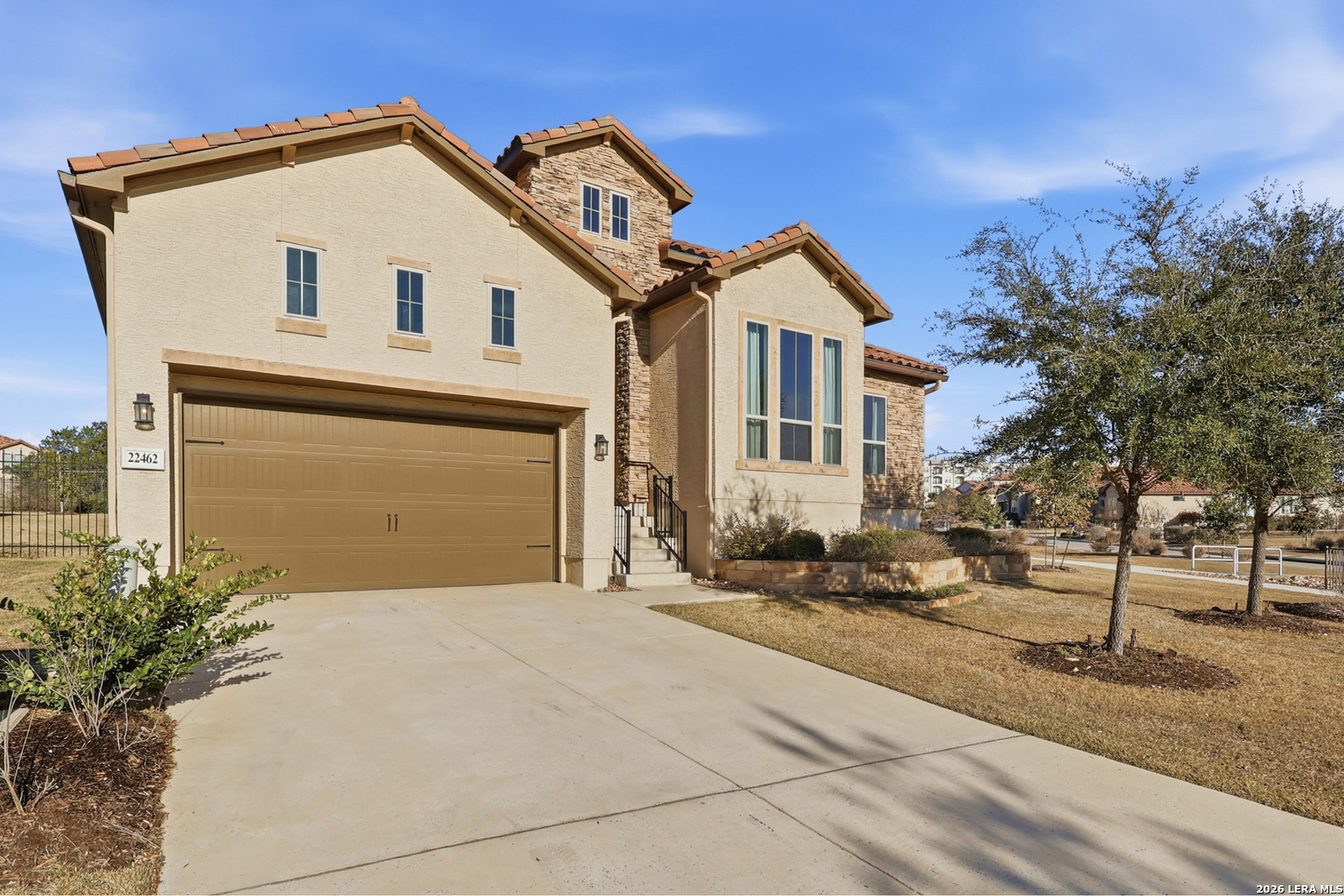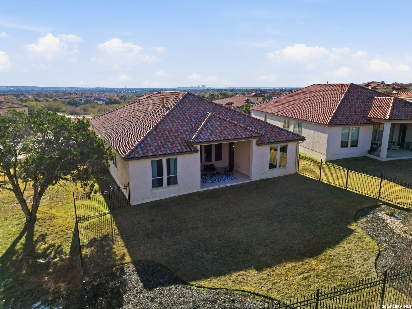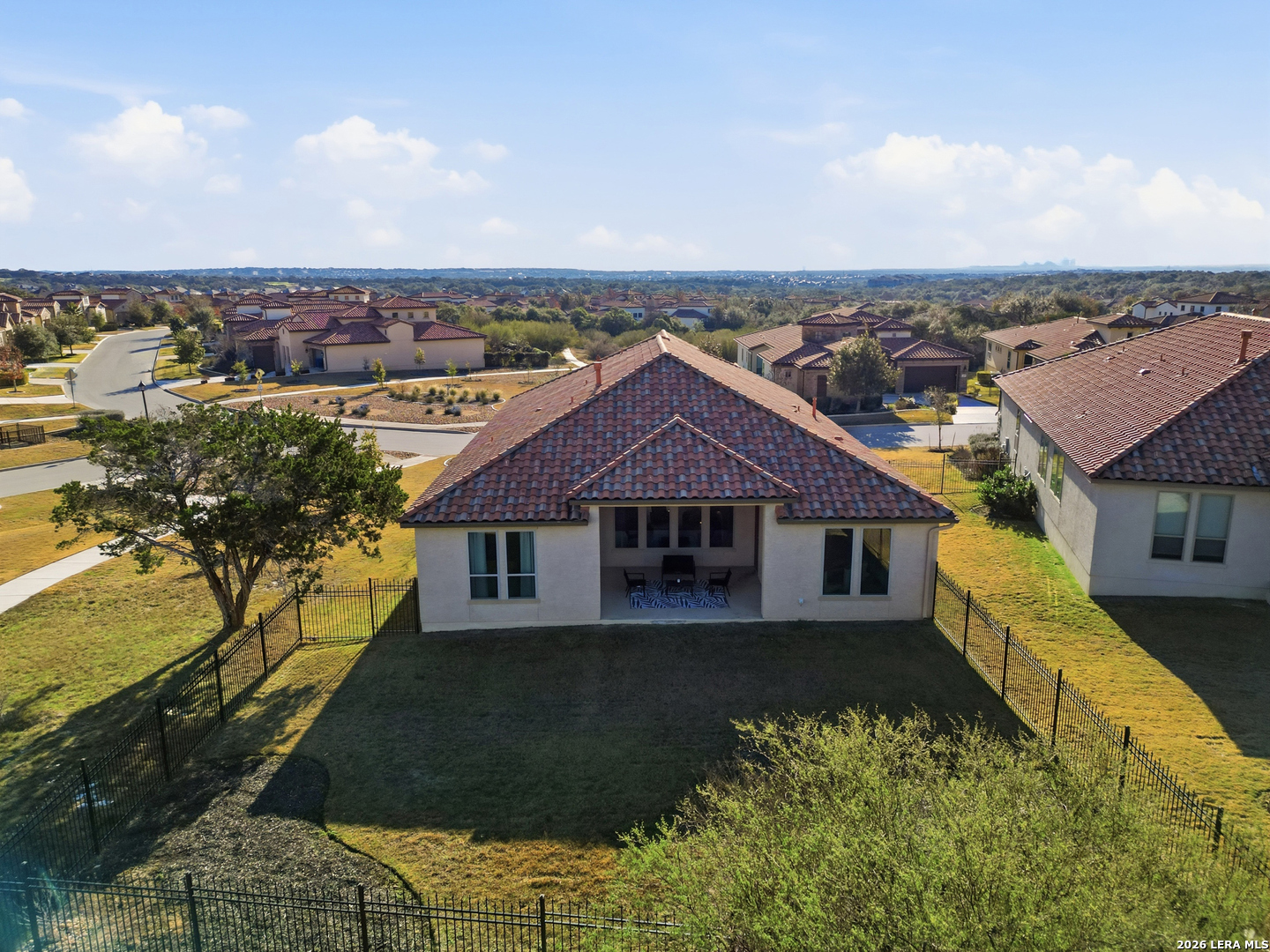 Located on a quiet corner lot with no rear neighbors, 22462 Estacado offers privacy, space, and thoughtful design in the heart of Cibolo Canyons. This 2,825 sq ft home features four bedrooms or three bedrooms plus a dedicated office, along with three full bathrooms and high ceilings throughout that enhance the open, airy feel of the home. The kitchen and main living area flow seamlessly, creating a layout well-suited for both everyday living and entertaining. The owner's suite is set apart for privacy and functions as a true retreat, while secondary bedrooms offer generous closet space and flexibility. Large windows frame peaceful backyard views, bringing in natural light and reinforcing the home's quiet, comfortable atmosphere. Energy-efficient insulation and double-pane windows contribute to year-round comfort and a noticeably calm interior. Residents of The Campanas enjoy a private clubhouse, resort-style pools, access to additional community amenities, scenic walking trails, and a welcoming neighborhood feel. Conveniently located near everyday essentials, the JW Marriott resort, and TPC San Antonio, this home balances Hill Country surroundings with easy city access.
