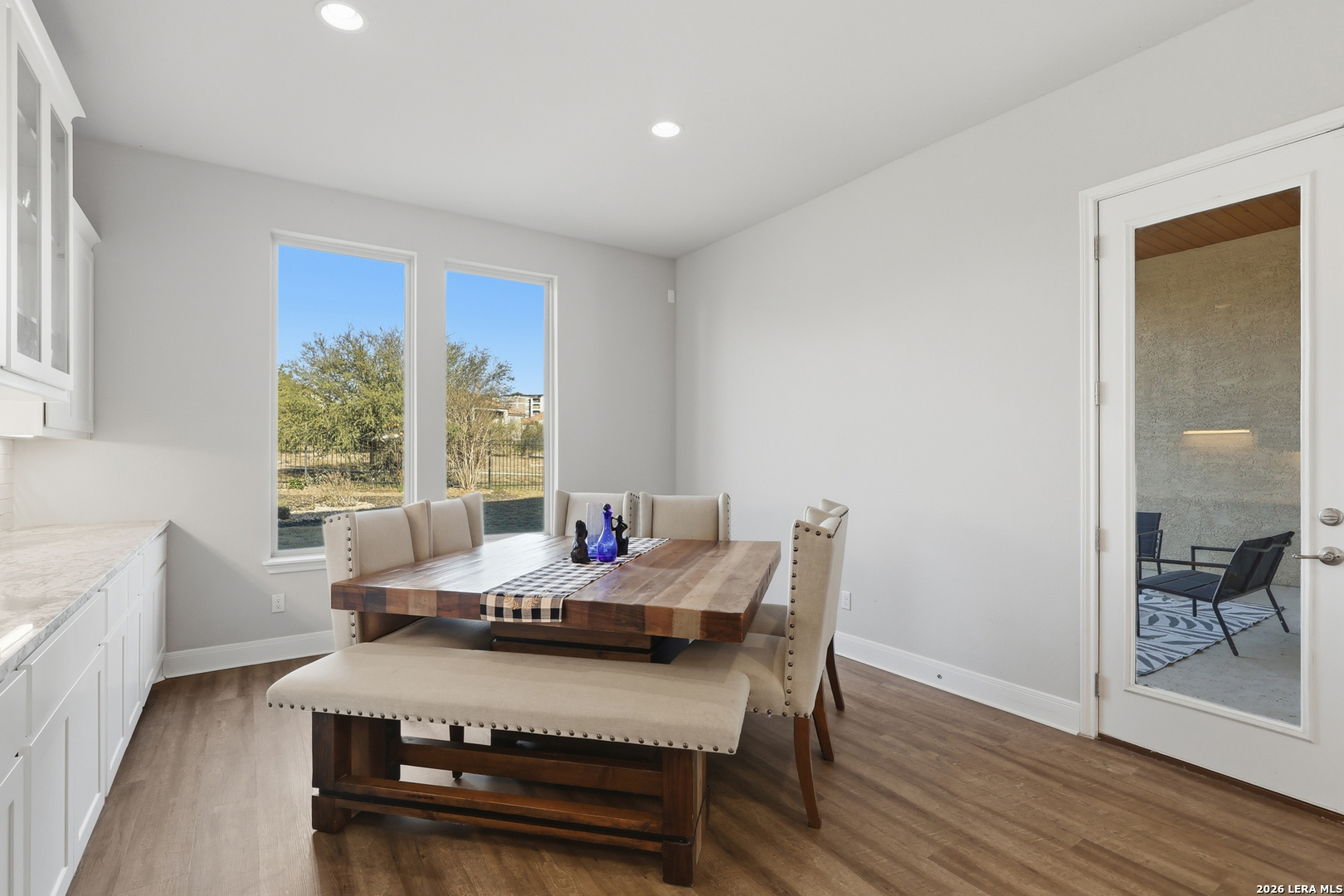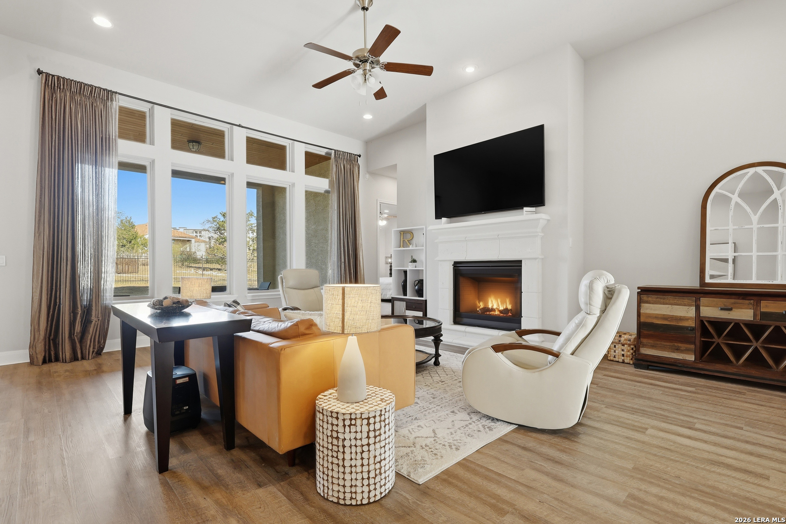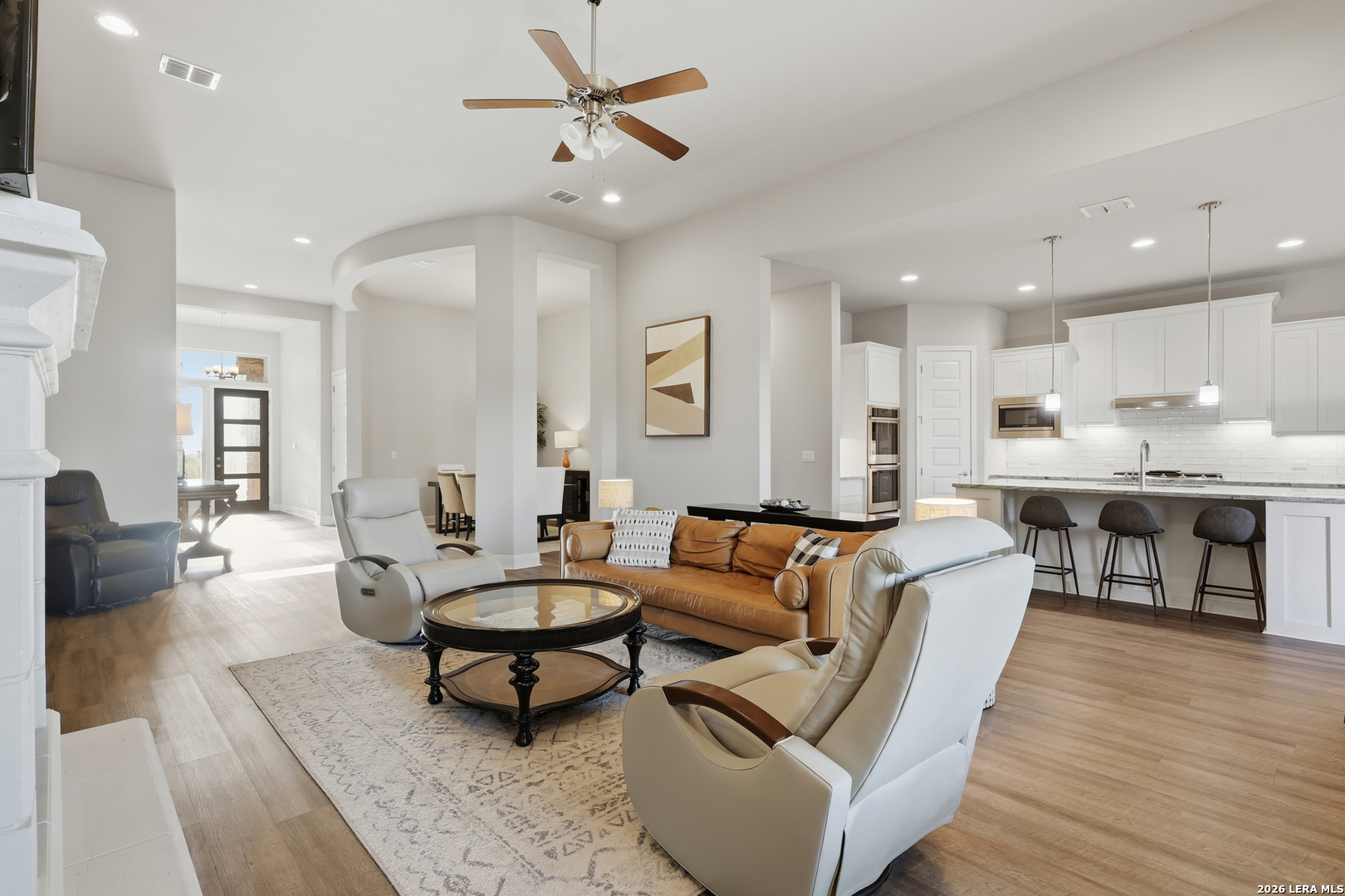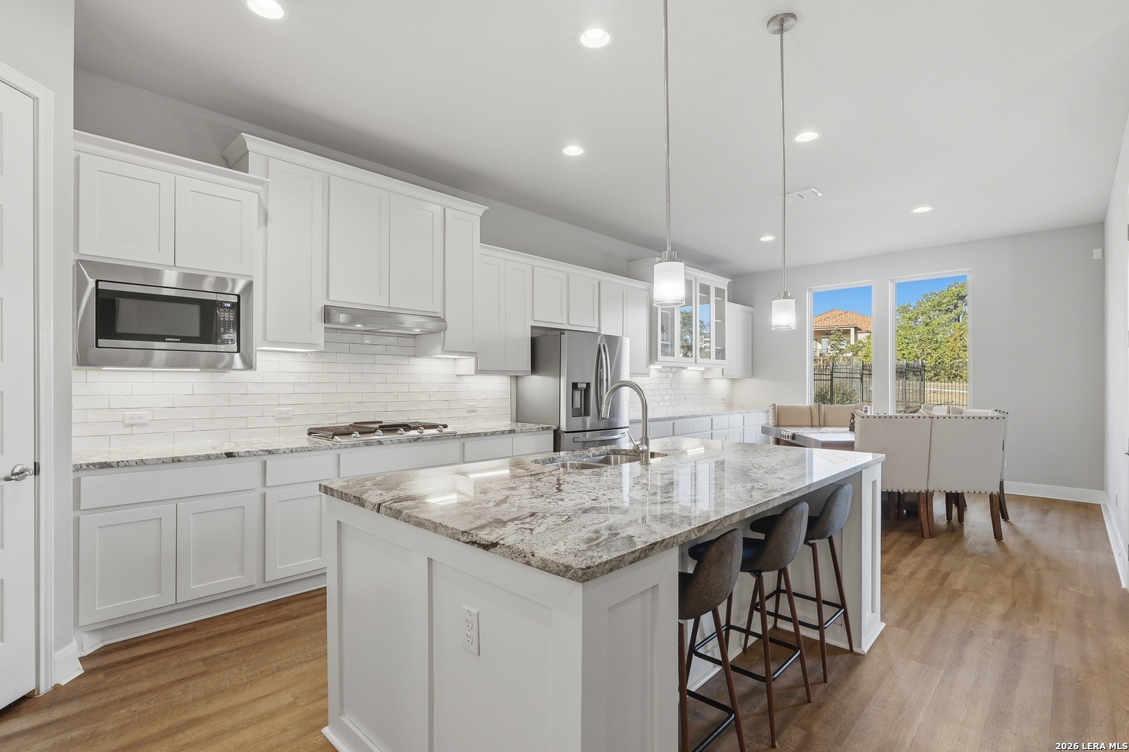 Located on a quiet corner lot with no rear neighbors, 22462 Estacado offers privacy, space, and thoughtful design in the heart of Cibolo Canyons. This 2,825 sq ft home features four bedrooms or three bedrooms plus a dedicated office, along with three full bathrooms and high ceilings throughout that enhance the open, airy feel of the home. The kitchen and main living area flow seamlessly, creating a layout well-suited for both everyday living and entertaining. The owner's suite is set apart for privacy and functions as a true retreat, while secondary bedrooms offer generous closet space and flexibility. Large windows frame peaceful backyard views, bringing in natural light and reinforcing the home's quiet, comfortable atmosphere. Energy-efficient insulation and double-pane windows contribute to year-round comfort and a noticeably calm interior. Residents of The Campanas enjoy a private clubhouse, resort-style pools, access to additional community amenities, scenic walking trails, and a welcoming neighborhood feel. Conveniently located near everyday essentials, the JW Marriott resort, and TPC San Antonio, this home balances Hill Country surroundings with easy city access.