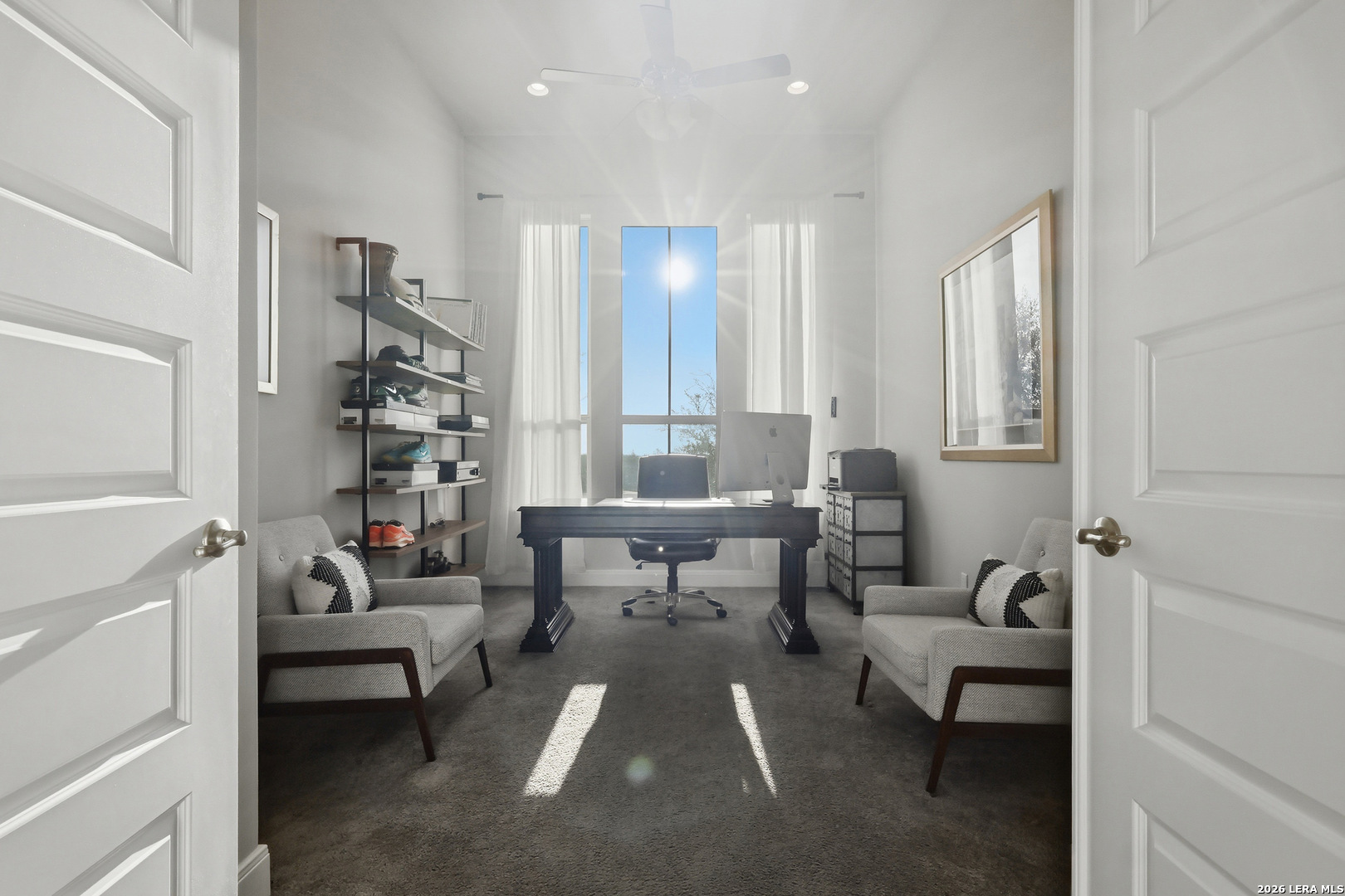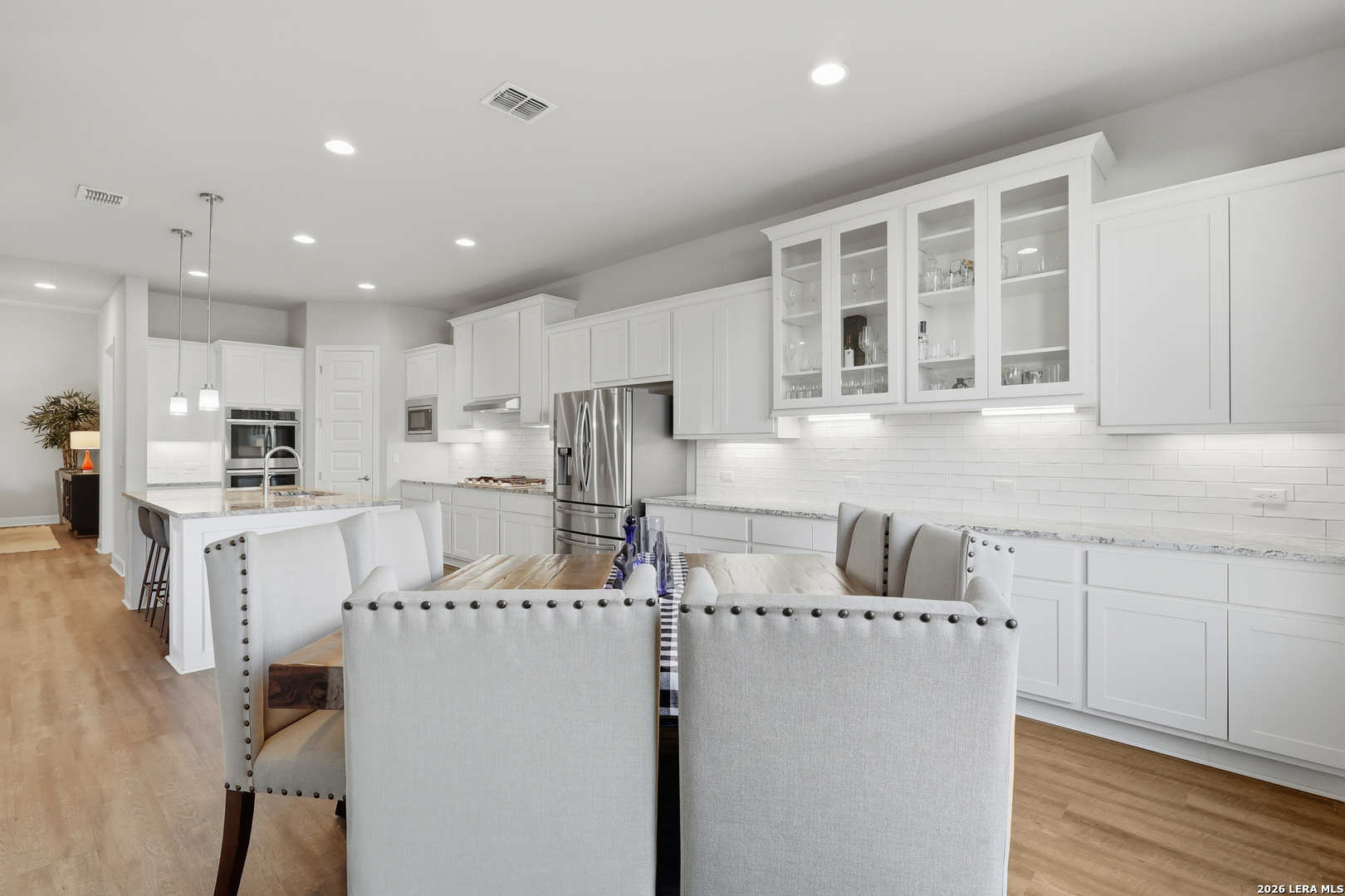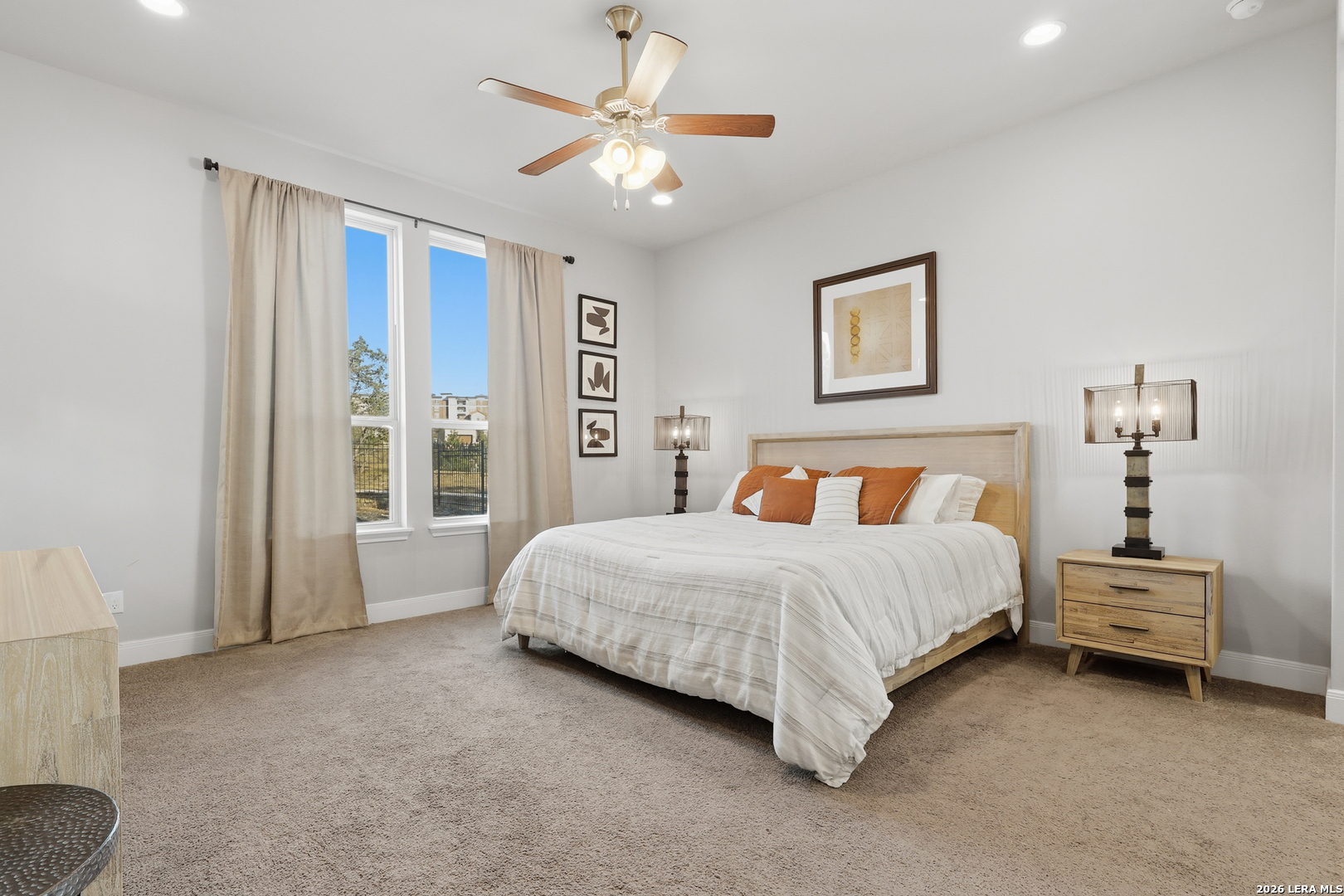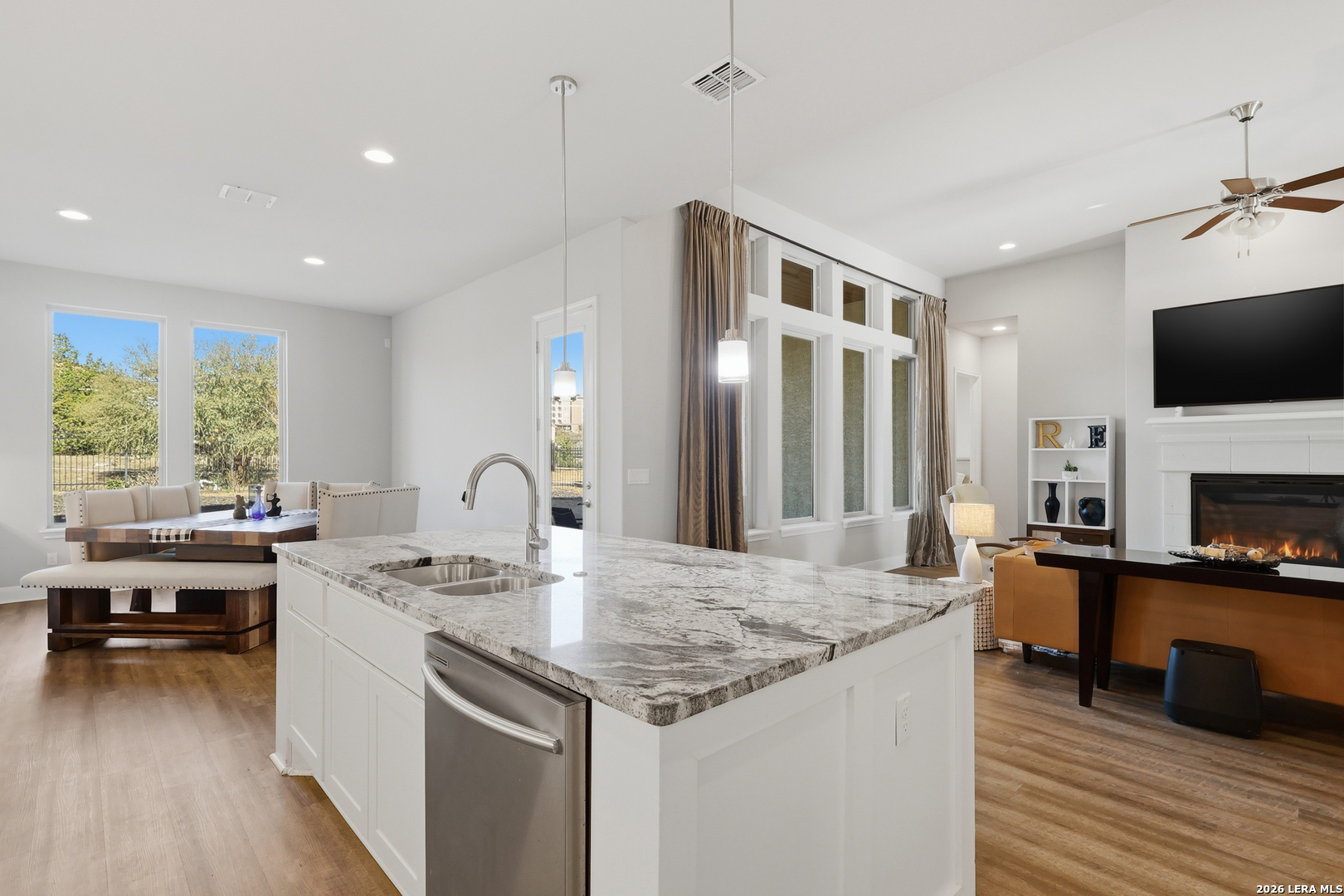 Located on a quiet corner lot with no rear neighbors, 22462 Estacado offers privacy, space, and thoughtful design in the heart of Cibolo Canyons. This 2,825 sq ft home features four bedrooms or three bedrooms plus a dedicated office, along with three full bathrooms and high ceilings throughout that enhance the open, airy feel of the home. The kitchen and main living area flow seamlessly, creating a layout well-suited for both everyday living and entertaining. The owner's suite is set apart for privacy and functions as a true retreat, while secondary bedrooms offer generous closet space and flexibility. Large windows frame peaceful backyard views, bringing in natural light and reinforcing the home's quiet, comfortable atmosphere. Energy-efficient insulation and double-pane windows contribute to year-round comfort and a noticeably calm interior. Residents of The Campanas enjoy a private clubhouse, resort-style pools, access to additional community amenities, scenic walking trails, and a welcoming neighborhood feel. Conveniently located near everyday essentials, the JW Marriott resort, and TPC San Antonio, this home balances Hill Country surroundings with easy city access.