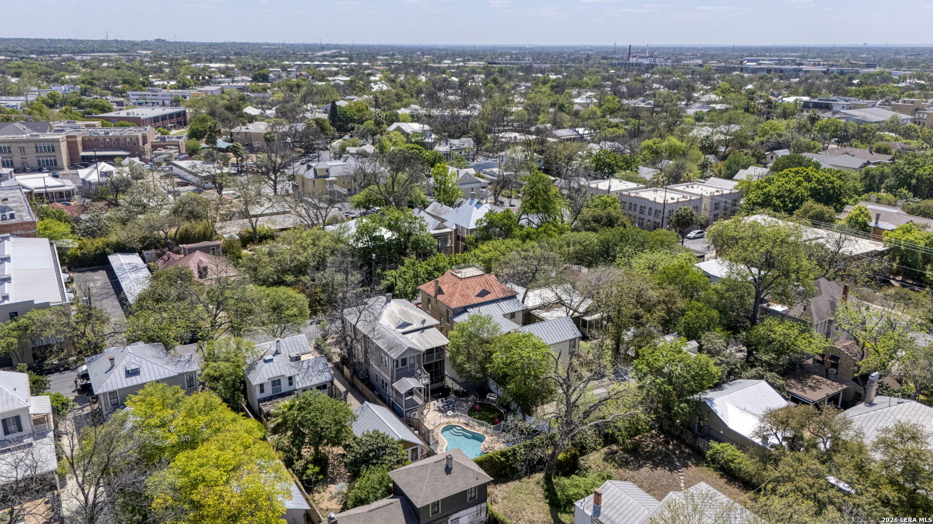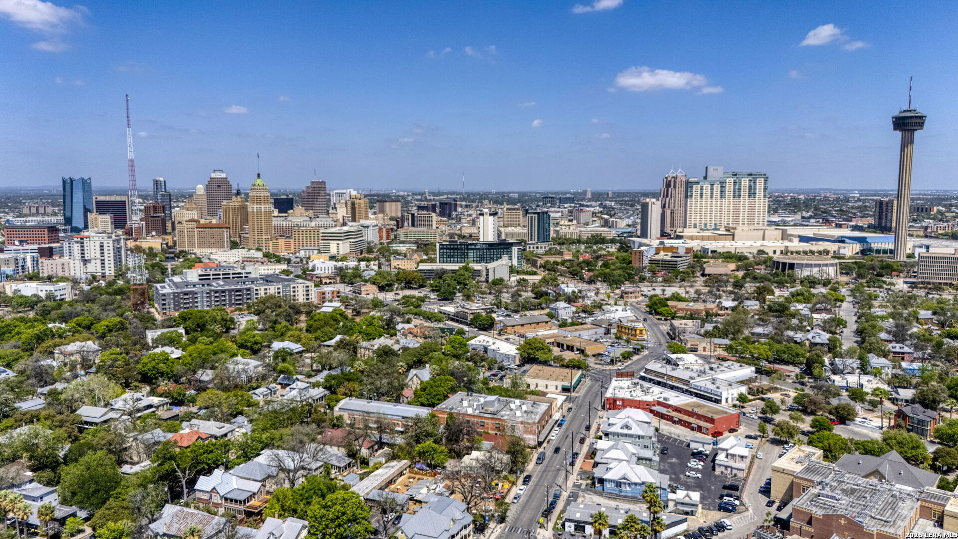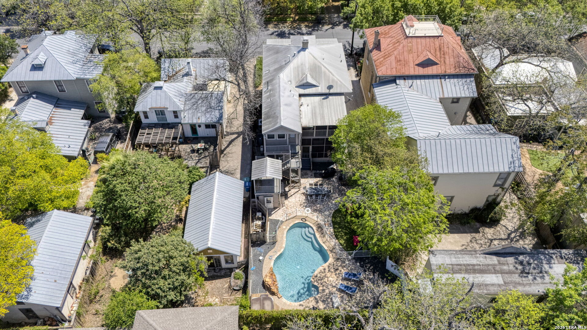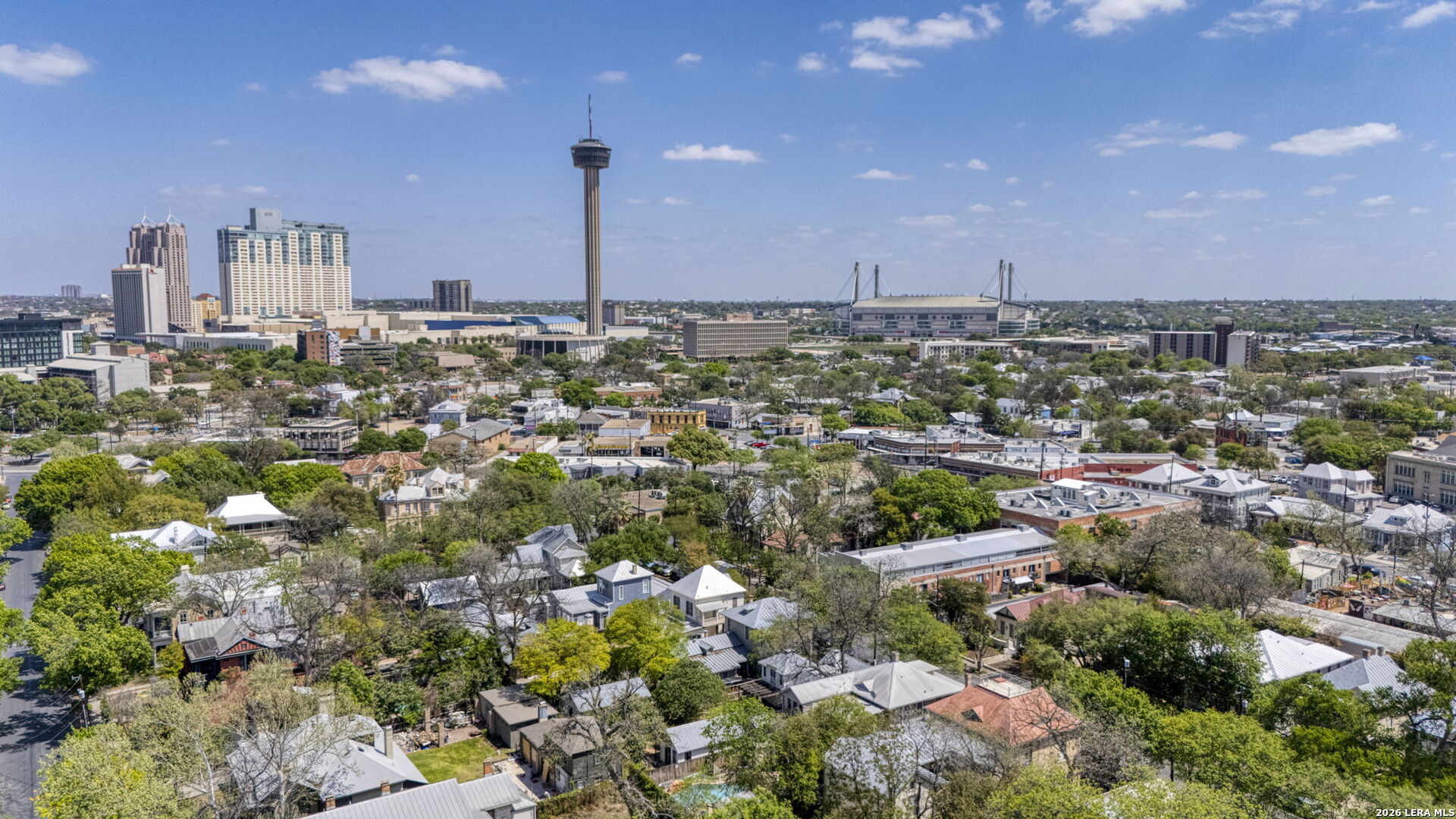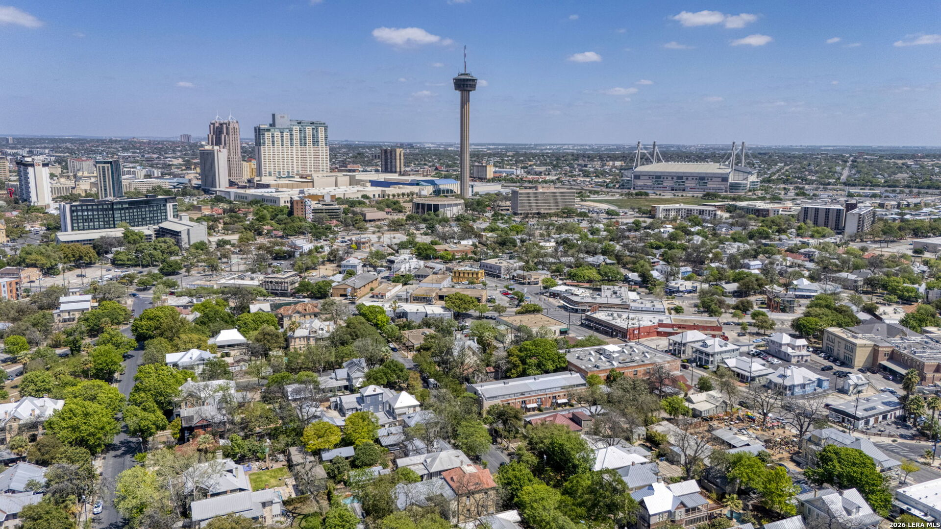 Spectacular 1922 Victorian in the heart of historic King William, offering timeless curb appeal with a true front porch, classic columns, and beautifully preserved architecture. Just two blocks from the River Walk, this home places you steps from parades, restaurants, and downtown living. Inside, the home blends historic charm with thoughtful updates. It features 5 bedrooms (dual primary suites), 4 full bathrooms, a large living room, formal dining room, and a screened-in porch/sunroom. The beautifully updated kitchen includes refreshed tile floors, backsplash, stunning countertops, lighting, and modern appliances. The living area also boasts a state-of-the-art entertainment system with a 110" automated drop-down screen and 7.1 in-ceiling speakers. Among other energy-saving features, the original windows remain intact & are enhanced with Indow Windows for improved energy efficiency & noise reduction. The backyard is a private retreat with an in-ground pool, deck, low-maintenance turf landscaping, pool fence, and standalone hot tub/spa. Private off-street parking and an electric car charger add convenience. A rare opportunity to enjoy an updated historic home in one of San Antonio's most iconic neighborhoods.