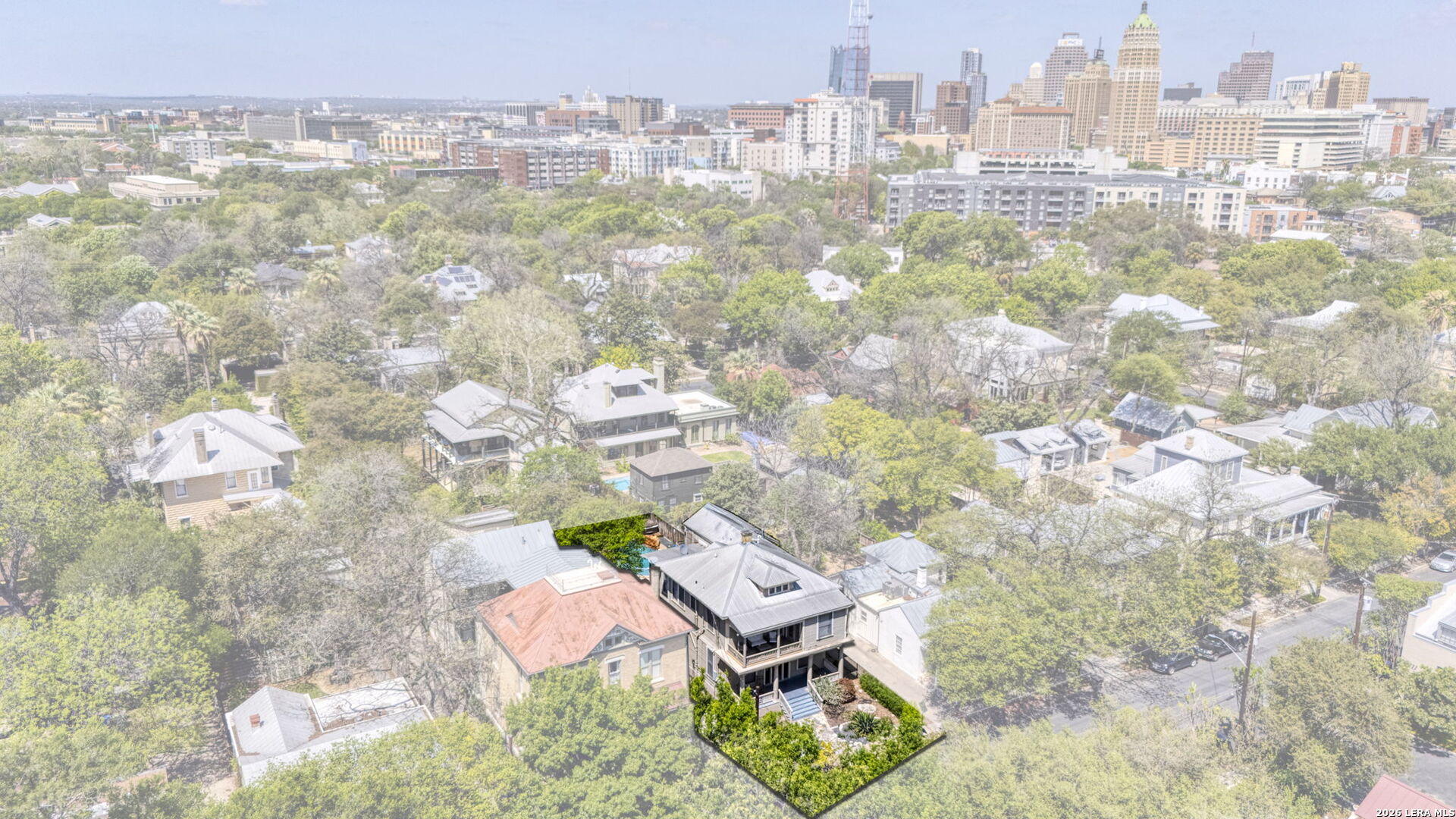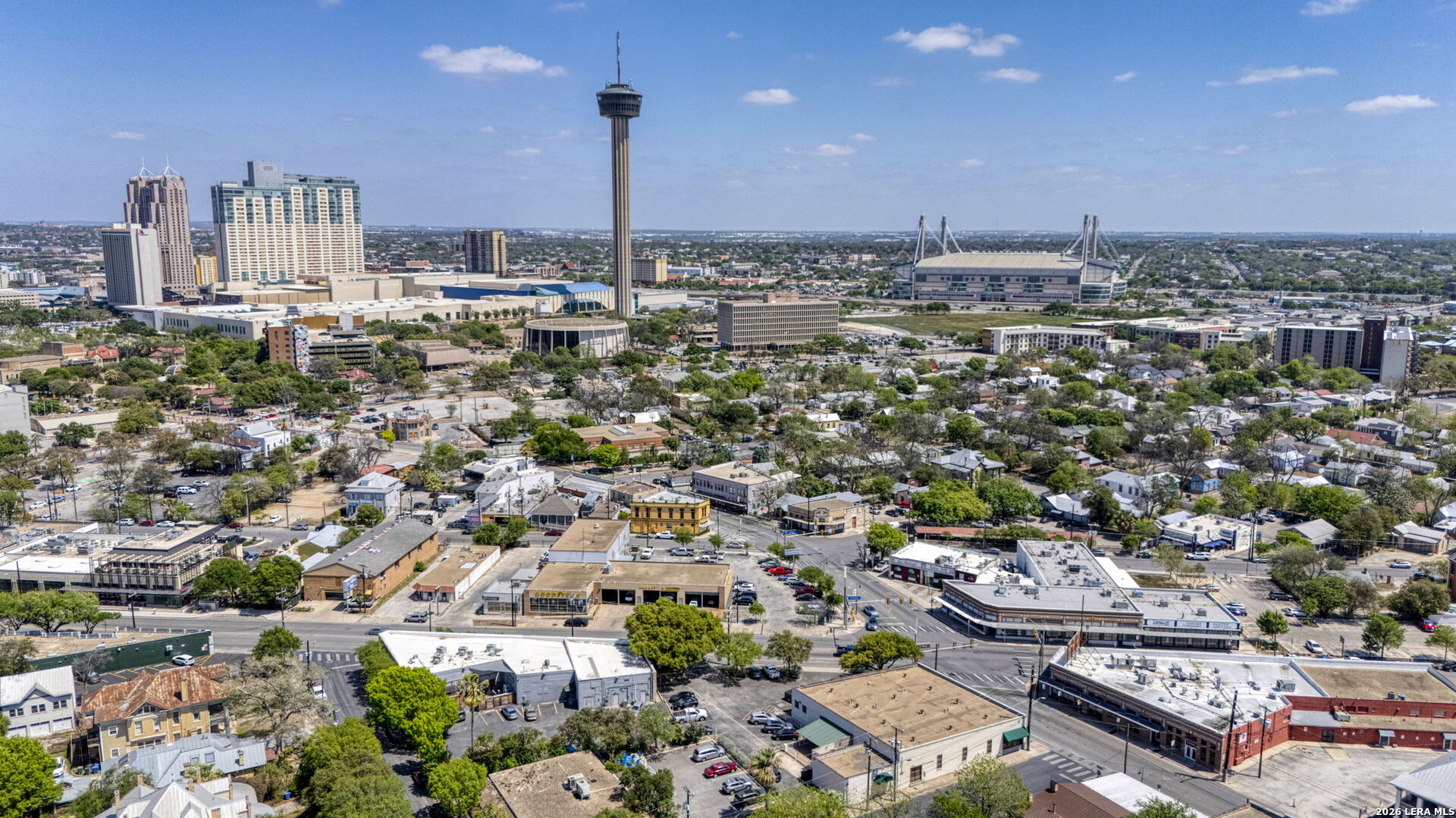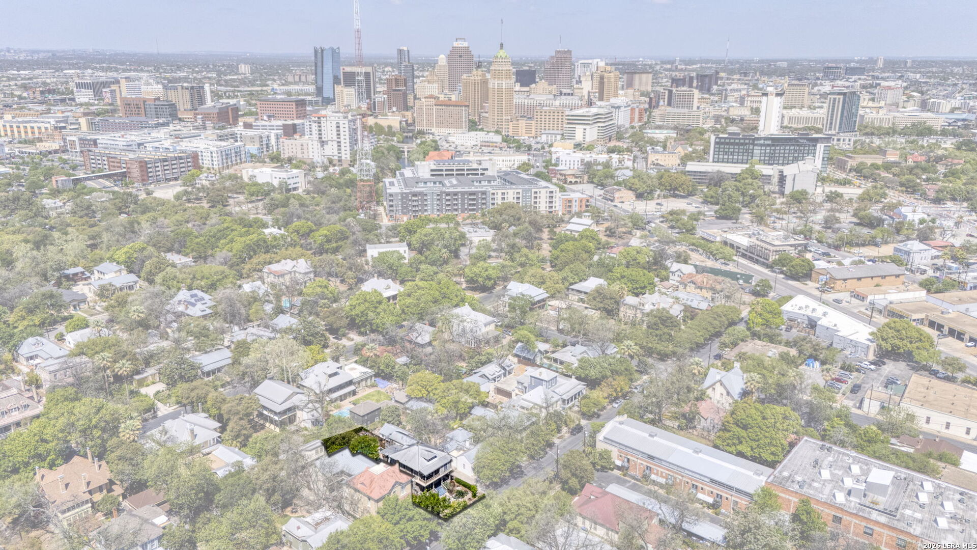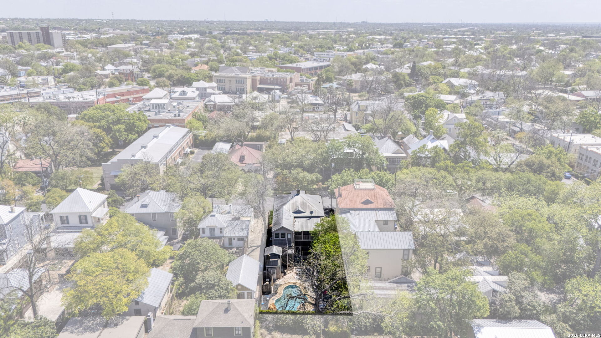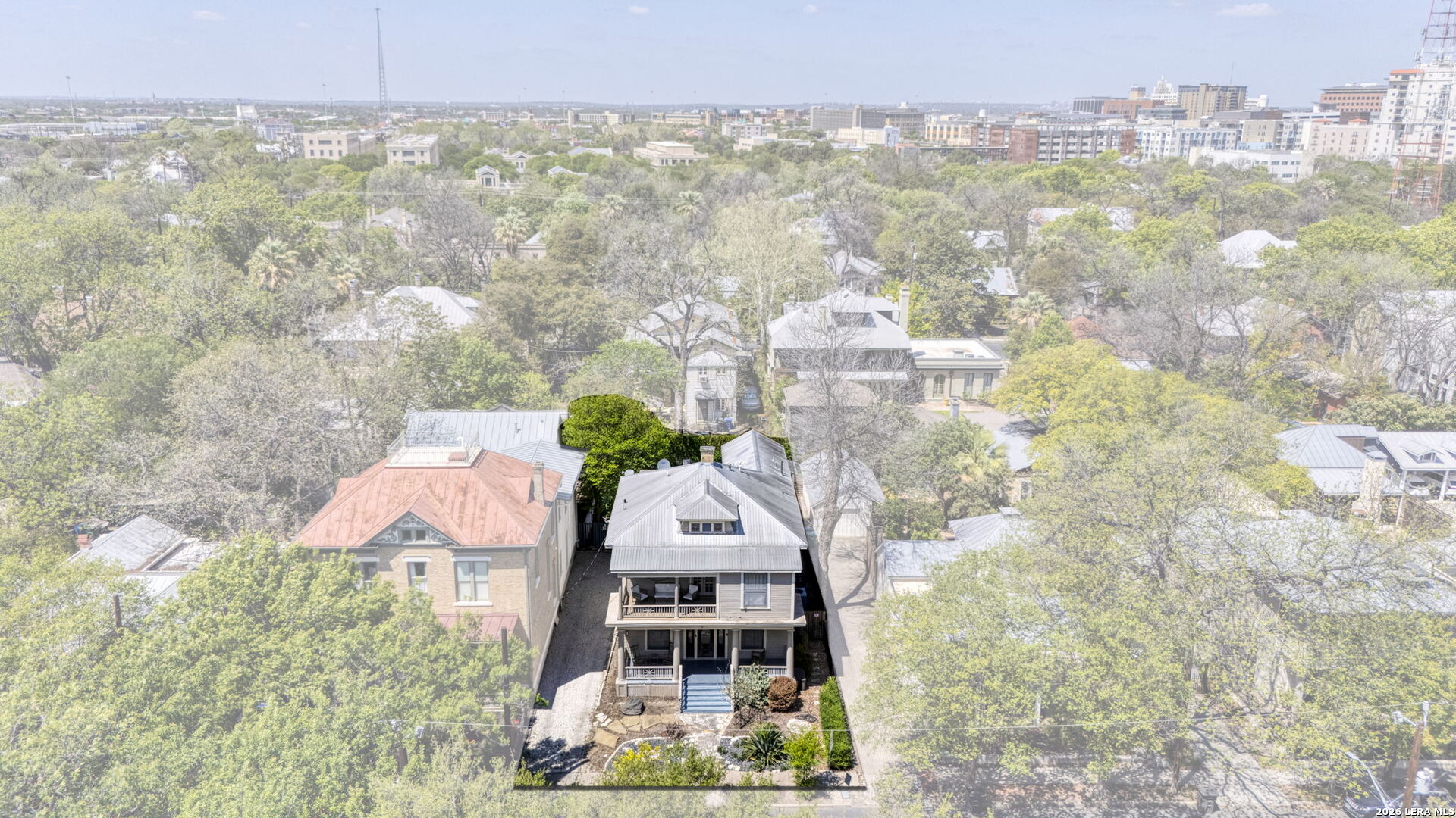 Spectacular 1922 Victorian in the heart of historic King William, offering timeless curb appeal with a true front porch, classic columns, and beautifully preserved architecture. Just two blocks from the River Walk, this home places you steps from parades, restaurants, and downtown living. Inside, the home blends historic charm with thoughtful updates. It features 5 bedrooms (dual primary suites), 4 full bathrooms, a large living room, formal dining room, and a screened-in porch/sunroom. The beautifully updated kitchen includes refreshed tile floors, backsplash, stunning countertops, lighting, and modern appliances. The living area also boasts a state-of-the-art entertainment system with a 110" automated drop-down screen and 7.1 in-ceiling speakers. Among other energy-saving features, the original windows remain intact & are enhanced with Indow Windows for improved energy efficiency & noise reduction. The backyard is a private retreat with an in-ground pool, deck, low-maintenance turf landscaping, pool fence, and standalone hot tub/spa. Private off-street parking and an electric car charger add convenience. A rare opportunity to enjoy an updated historic home in one of San Antonio's most iconic neighborhoods.