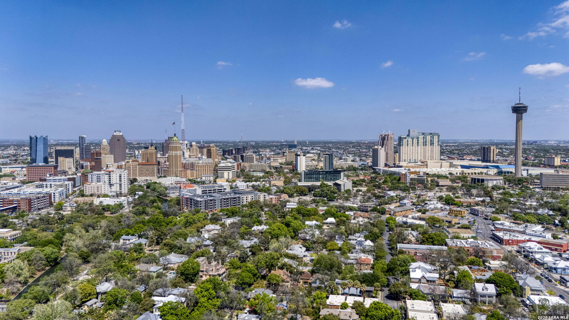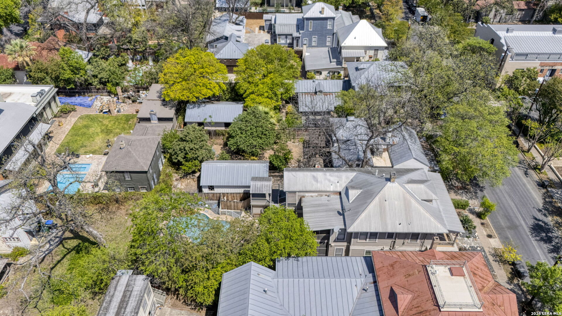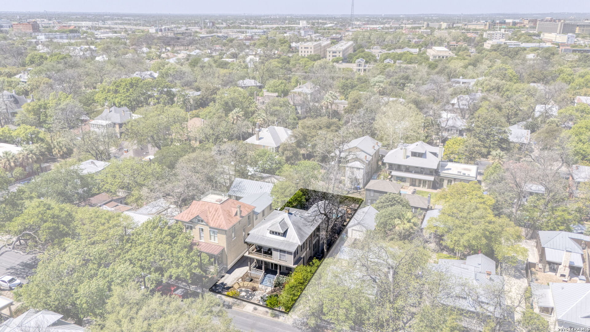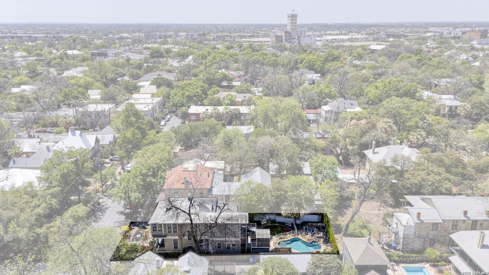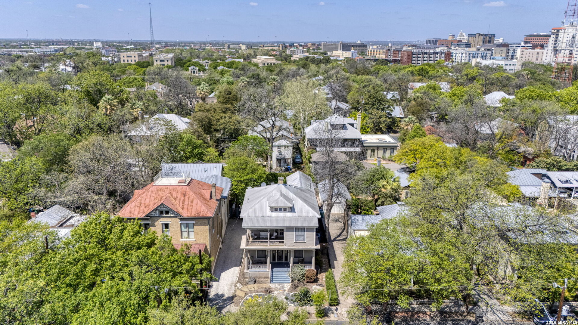 Spectacular 1922 Victorian in the heart of historic King William, offering timeless curb appeal with a true front porch, classic columns, and beautifully preserved architecture. Just two blocks from the River Walk, this home places you steps from parades, restaurants, and downtown living. Inside, the home blends historic charm with thoughtful updates. It features 5 bedrooms (dual primary suites), 4 full bathrooms, a large living room, formal dining room, and a screened-in porch/sunroom. The beautifully updated kitchen includes refreshed tile floors, backsplash, stunning countertops, lighting, and modern appliances. The living area also boasts a state-of-the-art entertainment system with a 110" automated drop-down screen and 7.1 in-ceiling speakers. Among other energy-saving features, the original windows remain intact & are enhanced with Indow Windows for improved energy efficiency & noise reduction. The backyard is a private retreat with an in-ground pool, deck, low-maintenance turf landscaping, pool fence, and standalone hot tub/spa. Private off-street parking and an electric car charger add convenience. A rare opportunity to enjoy an updated historic home in one of San Antonio's most iconic neighborhoods.
