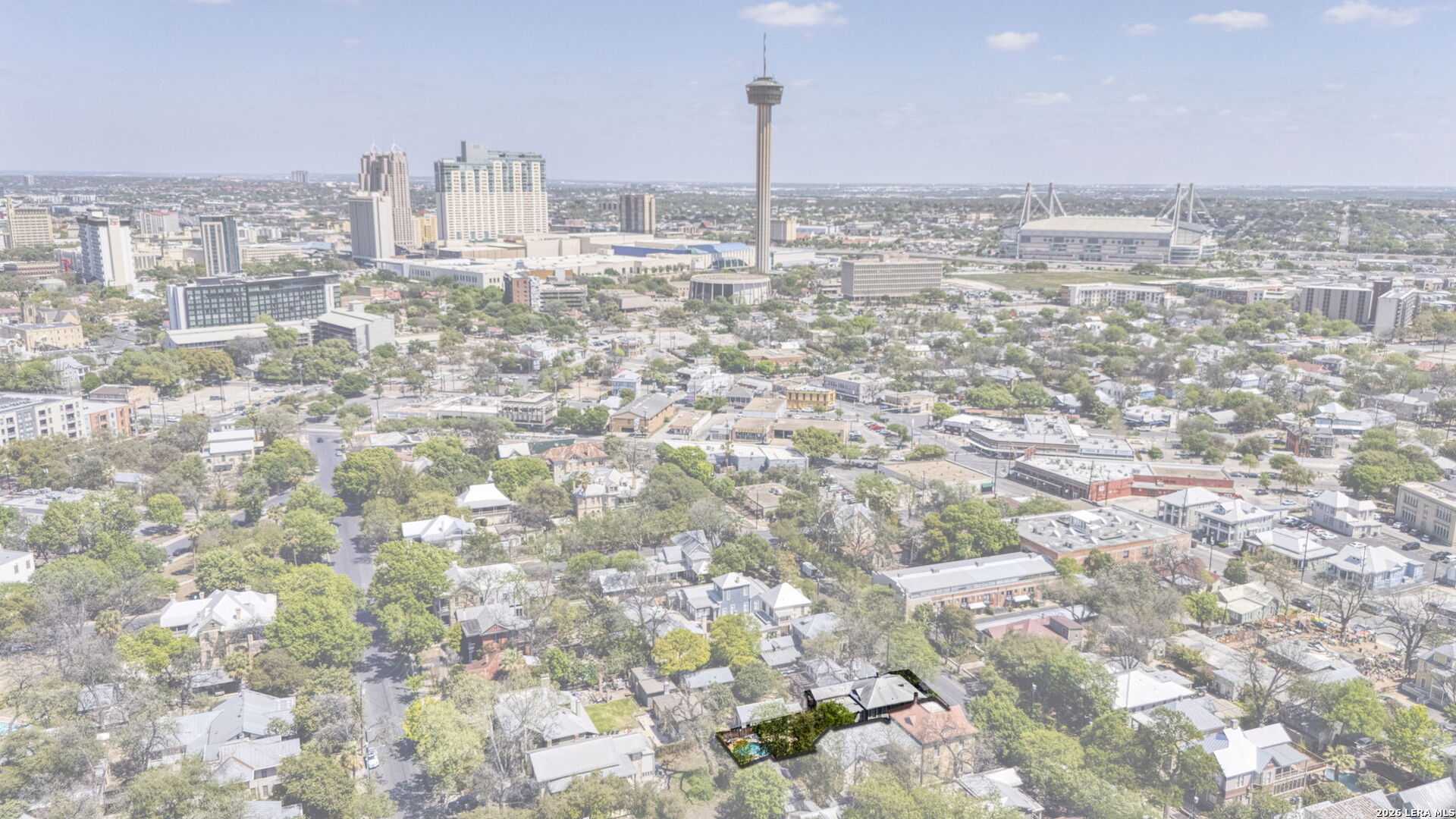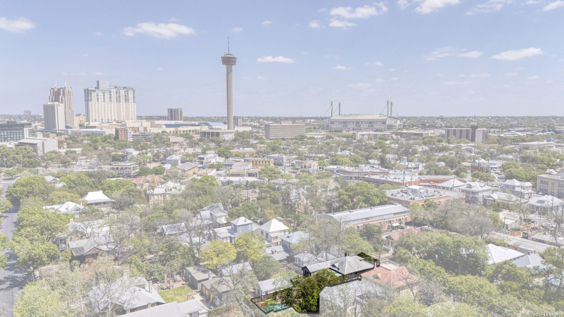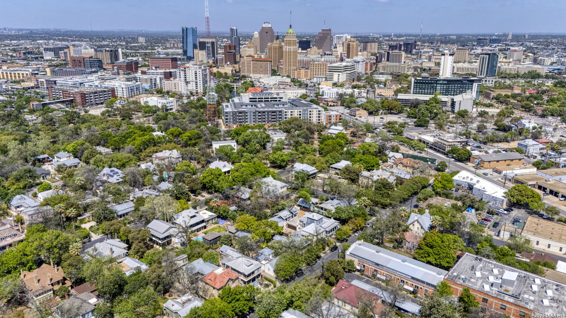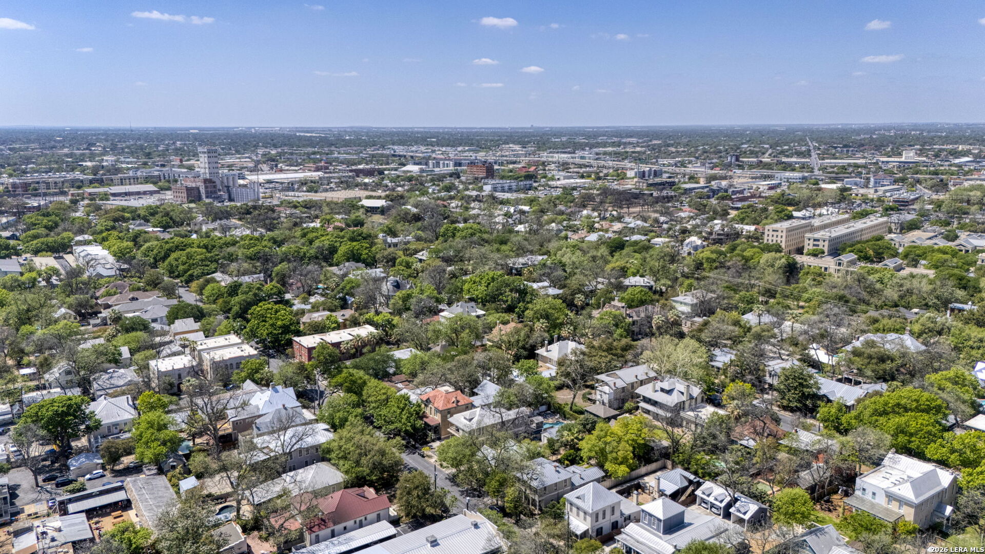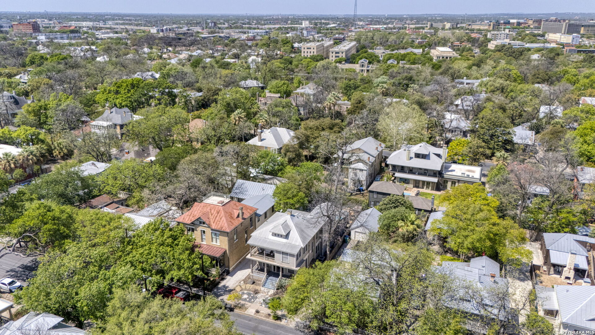 Spectacular 1922 Victorian in the heart of historic King William, offering timeless curb appeal with a true front porch, classic columns, and beautifully preserved architecture. Just two blocks from the River Walk, this home places you steps from parades, restaurants, and downtown living. Inside, the home blends historic charm with thoughtful updates. It features 5 bedrooms (dual primary suites), 4 full bathrooms, a large living room, formal dining room, and a screened-in porch/sunroom. The beautifully updated kitchen includes refreshed tile floors, backsplash, stunning countertops, lighting, and modern appliances. The living area also boasts a state-of-the-art entertainment system with a 110" automated drop-down screen and 7.1 in-ceiling speakers. Among other energy-saving features, the original windows remain intact & are enhanced with Indow Windows for improved energy efficiency & noise reduction. The backyard is a private retreat with an in-ground pool, deck, low-maintenance turf landscaping, pool fence, and standalone hot tub/spa. Private off-street parking and an electric car charger add convenience. A rare opportunity to enjoy an updated historic home in one of San Antonio's most iconic neighborhoods.