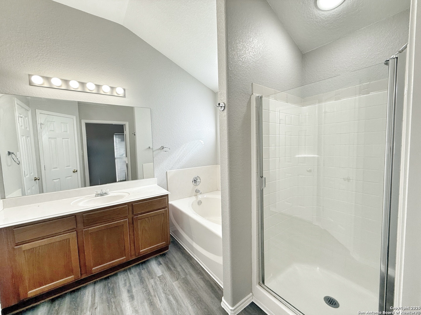 This inviting single-story home offers 4 bedrooms, 2 full baths, and a spacious open layout-perfect for comfortable living and entertaining. The entire interior was freshly painted in November 2025, giving the home a clean, modern feel from the moment you walk in. Step inside to find durable tile flooring throughout the living room, kitchen, and hallway, creating easy maintenance and a cohesive flow. The generous living area features a cozy corner fireplace, ideal for relaxing evenings at home. The large open kitchen includes an eat-in dining space and plenty of cabinet storage. The privately located primary suite sits just off the kitchen and features new carpet (Nov 2025), a full en-suite bath with updated flooring, a walk-in shower, separate soaking tub, private toilet room, and a spacious walk-in closet. Bedrooms 2, 3, and 4 are located on the opposite side of the home, each offering great size, ceiling fans, and versatility for family, guests, or office space. Enjoy outdoor living in the fenced backyard with a patio slab-perfect for grilling or relaxing. The yard does have a slight slope but is simple to maintain. Located in the desirable North Park Meadow subdivision, this home is just minutes from IH-35, within walking distance to Fischer Park, and a short drive to downtown New Braunfels, H-E-B, shopping, dining, and local attractions.