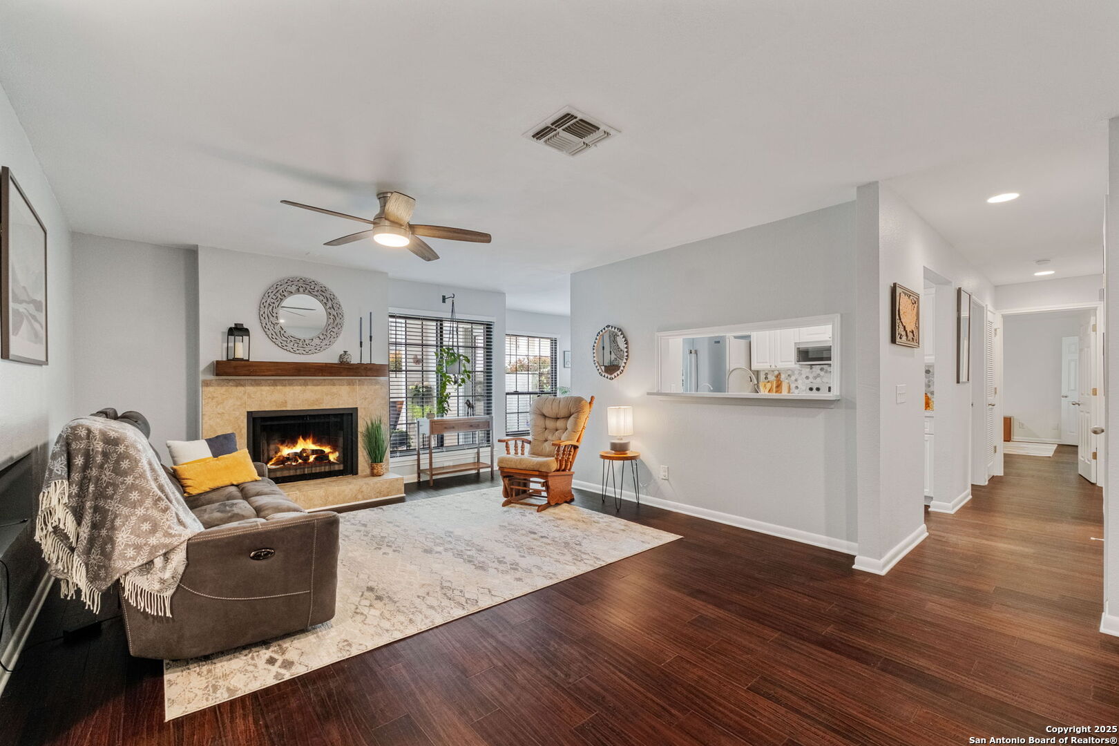 Step into the perfect blend of modern upgrades and cozy charm in this beautifully maintained 2-bedroom, 2-bathroom ground-floor condo, ideally located in the highly sought-after gated community of Thousand Oaks. Recent updates ensure both comfort and efficiency, including Energy Star Andersen windows with screens, a custom patio door, new front door, new HVAC system and air handler, new water heater, reverse osmosis system, upgraded lighting/ceiling fans, and fresh interior paint. Enjoy your private patio, a tranquil space ideal for morning coffee or evening gatherings. The updated kitchen is a chef's dream, featuring quartz countertops and stainless-steel appliances. Inside, the open layout offers two dining areas-perfect for formal dining or a versatile home office/flex space. The spacious bedrooms and well-appointed bathrooms provide everyday comfort, while the living area with a cozy fireplace invites you to unwind in style. Whether you're curled up by the fire or enjoying outdoor evenings under the stars, this condo is more than a home-it's your personal retreat. Conveniently located within walking distance of the local YMCA and just minutes from shopping, dining, and major roadways, this home truly offers the best in comfort, location, and low-maintenance living. Don't miss this rare opportunity!