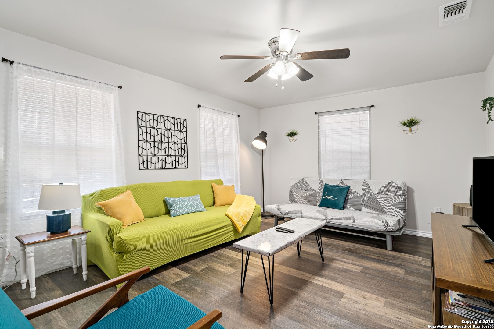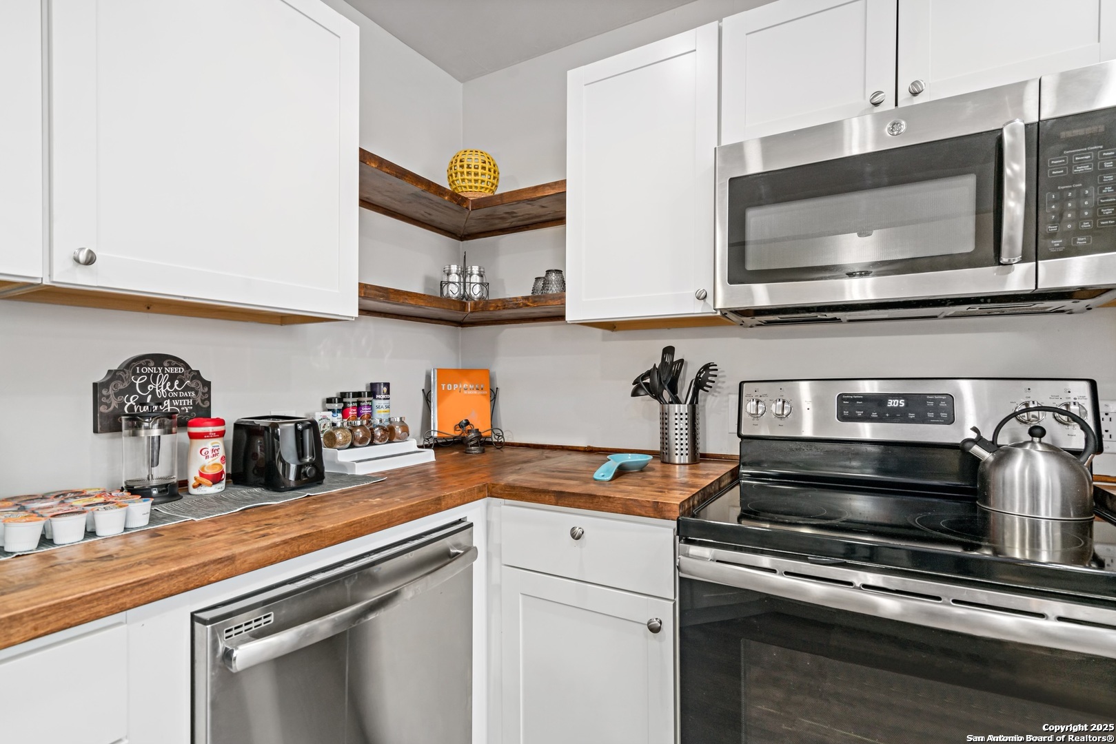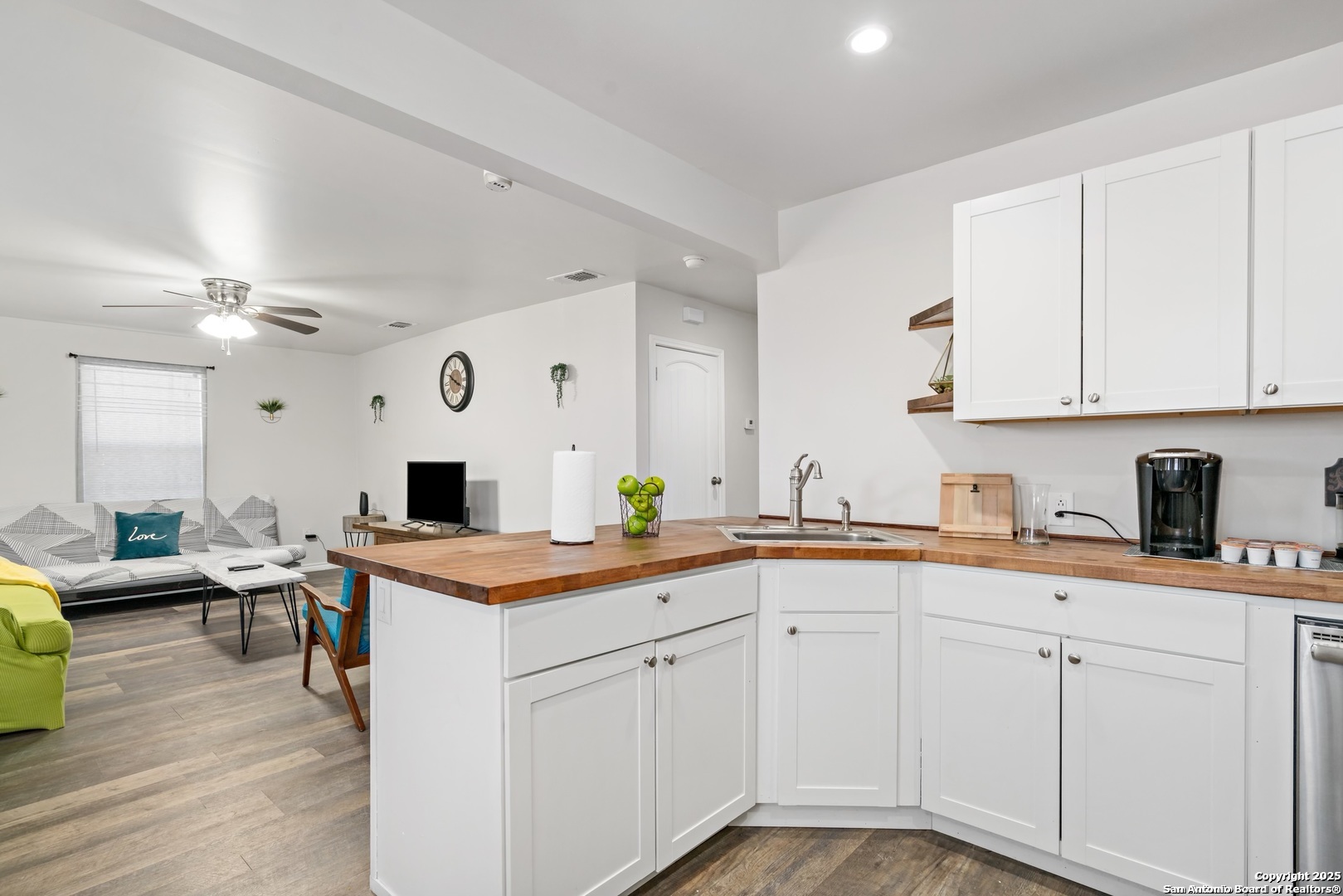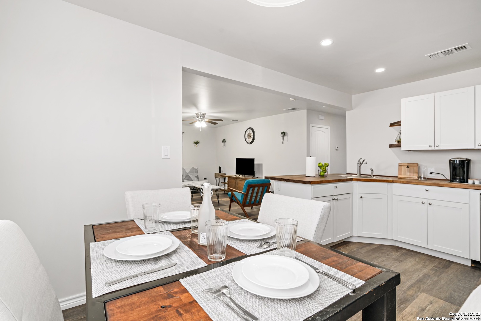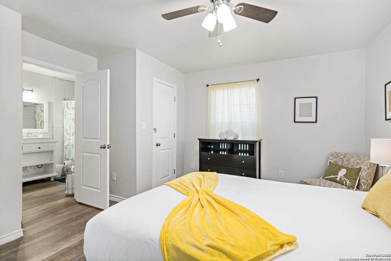 Discover this beautifully updated 2-bedroom, 2-bath home at 226 Bee St, perfectly situated in the heart of Government Hill just minutes from Fort Sam Houston, The Pearl, and Downtown San Antonio. This thoughtfully designed residence blends historic charm with modern upgrades, featuring an open layout with sleek laminate flooring, a contemporary kitchen with butcher block countertops, stainless steel appliances, and a convenient breakfast bar. The primary suite offers comfort and privacy with a stylish en-suite bath and ample closet space, while the secondary bedroom provides versatility for guests or a home office. Enjoy outdoor living on the covered front porch or relax in the fenced backyard, ideal for quiet mornings or evening gatherings. With its prime location, timeless character, and move-in-ready appeal, this home presents an excellent opportunity for both first-time homebuyers and investors seeking a profitable, cash-flowing property-offering the perfect balance of comfort, convenience, and long-term value.
