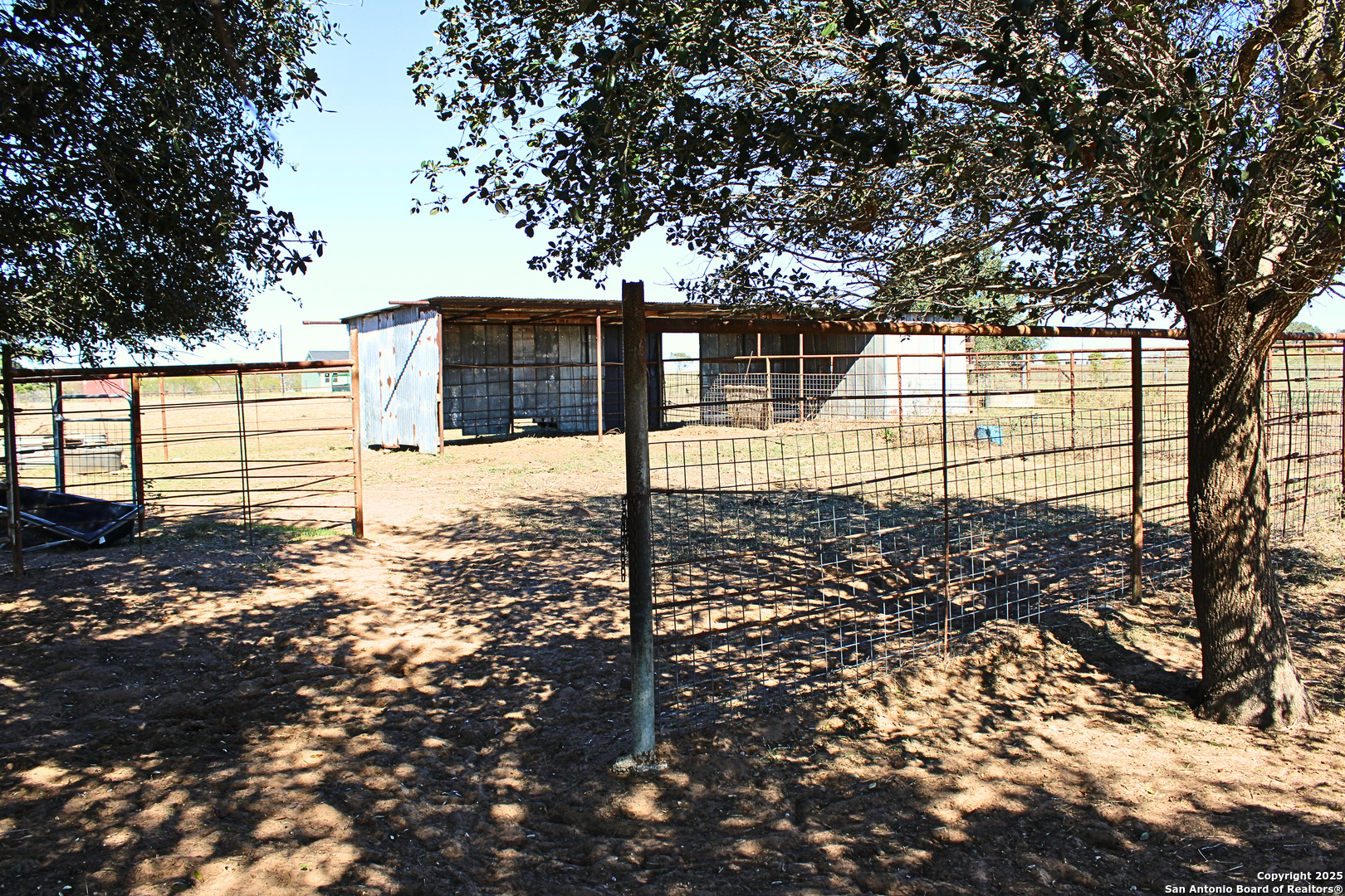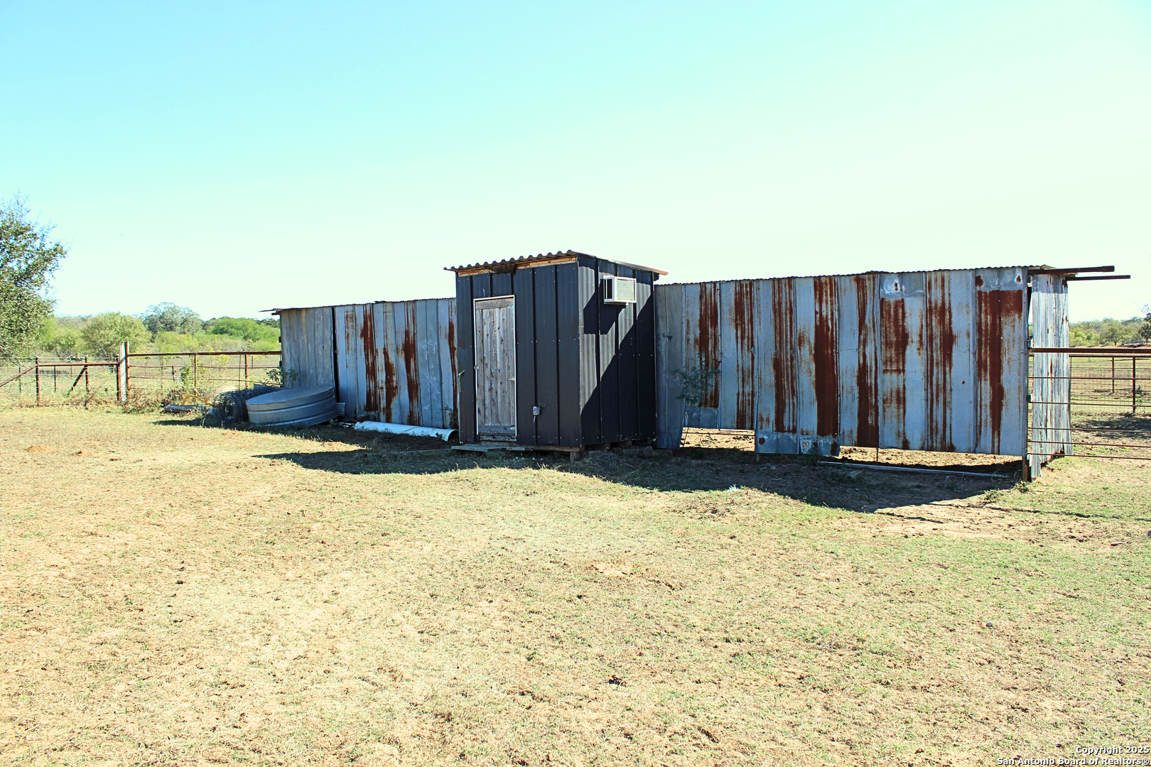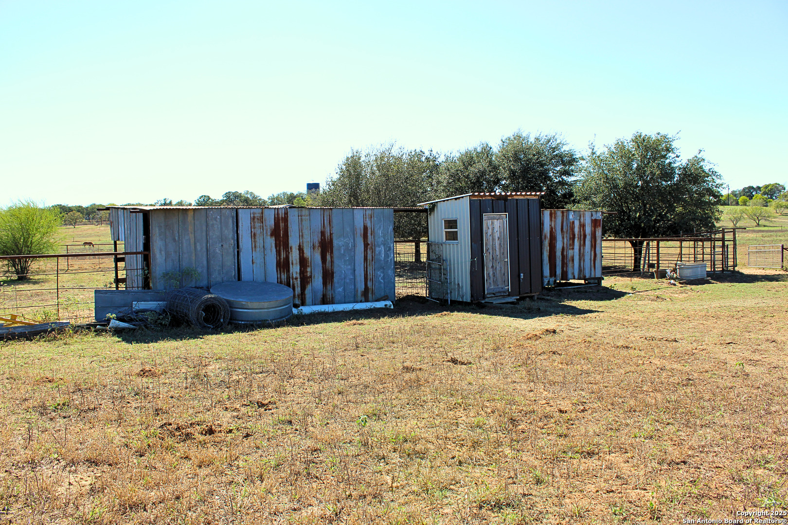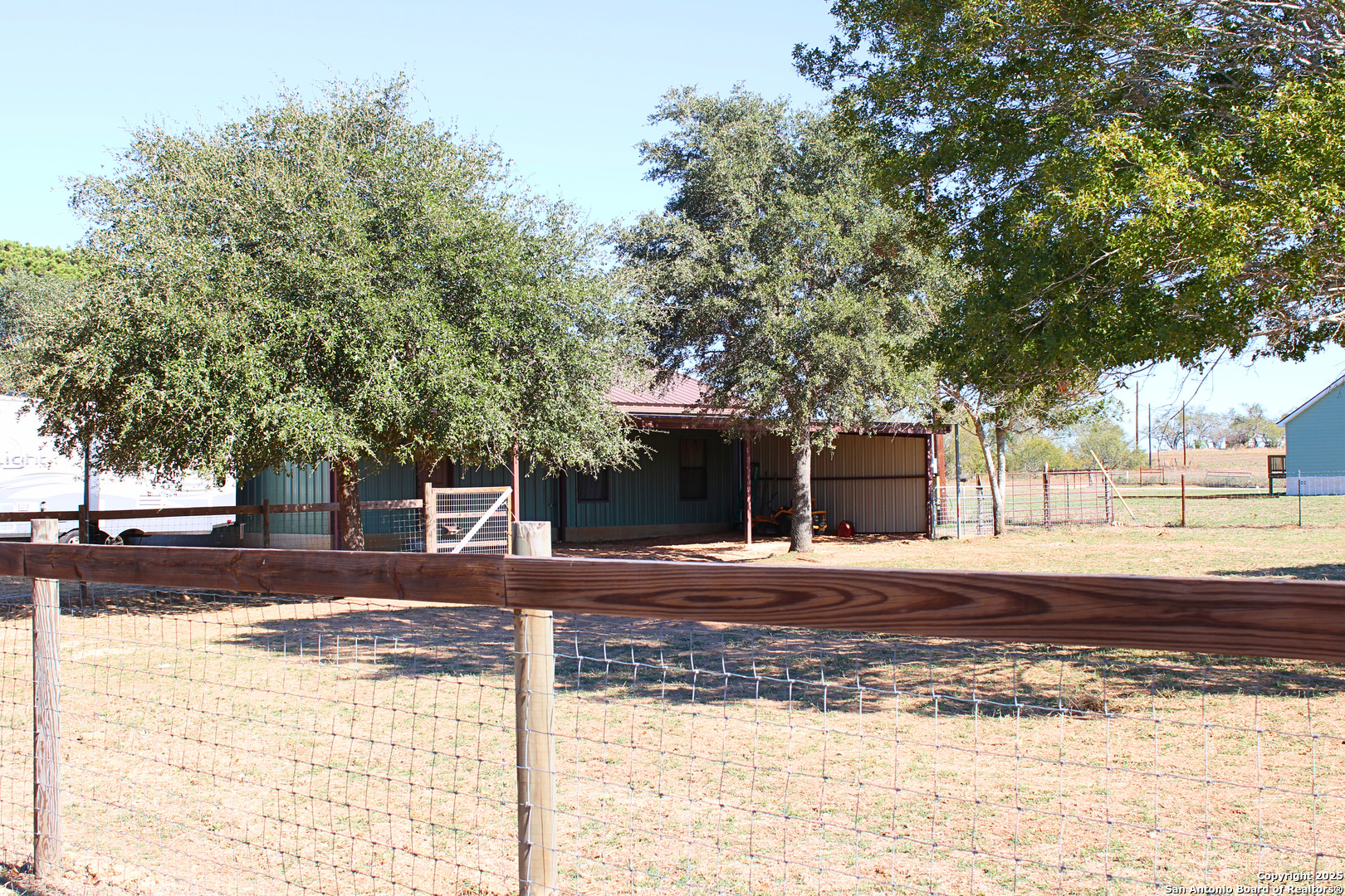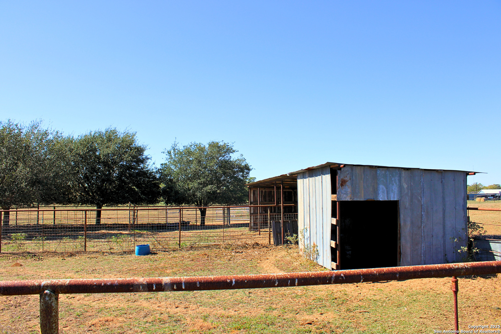 Beautiful Barndominium on 10.01 Acres - Ag-Exempt, Fully Fenced, and Ready for new owners! Welcome to your dream country retreat! This newer barndominium combines rustic charm with modern comfort, offering 1,200 square feet of thoughtfully designed living space. Featuring 2 bedrooms and 1 full bathroom, this home is ideal for those seeking peaceful rural living without sacrificing style or efficiency. Step inside to find stained concrete floors throughout, lending both durability and a sleek modern touch. The open-concept kitchen is beautifully finished with granite countertops, ample cabinet space, and a seamless flow into the living area - perfect for entertaining or relaxing after a long day. Outside, enjoy the serenity of your covered back patio, ideal for morning coffee or evening sunsets. The 10.01-acre property is fully fenced and cross-fenced, complete with cattle/goat pens and plenty of open land for horses or other livestock. A storage shed provides additional space for tools, equipment, or hobbies. The property includes gated entrances for added security and convenience. Blown insulation in the attic and the naturally efficient design of barndominiums help keep utility costs low - making this home not only beautiful but also energy efficient. With its ag-exempt status, you'll enjoy reduced property taxes while maintaining a lifestyle perfectly suited for ranching, recreation, or quiet country living. Don't miss your chance to own this stunning and versatile barndominium and gorgeous ranch property - where modern comfort meets wide-open Texas countryside!
