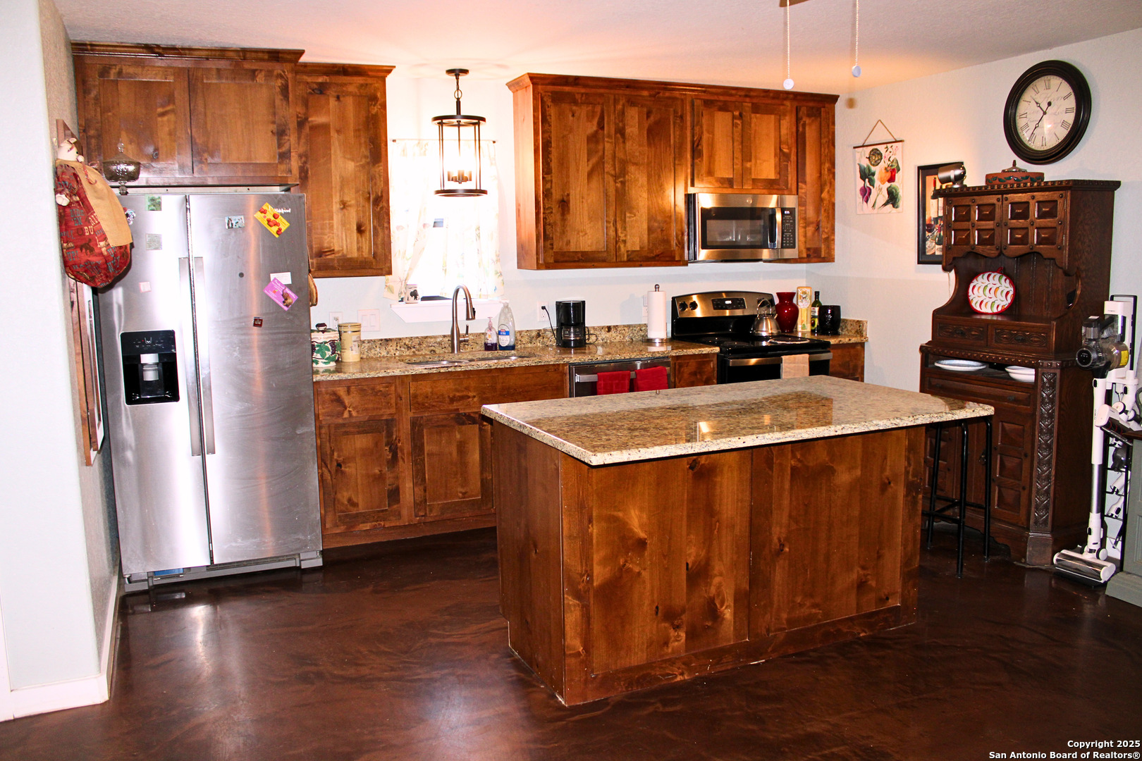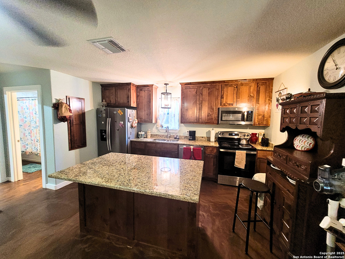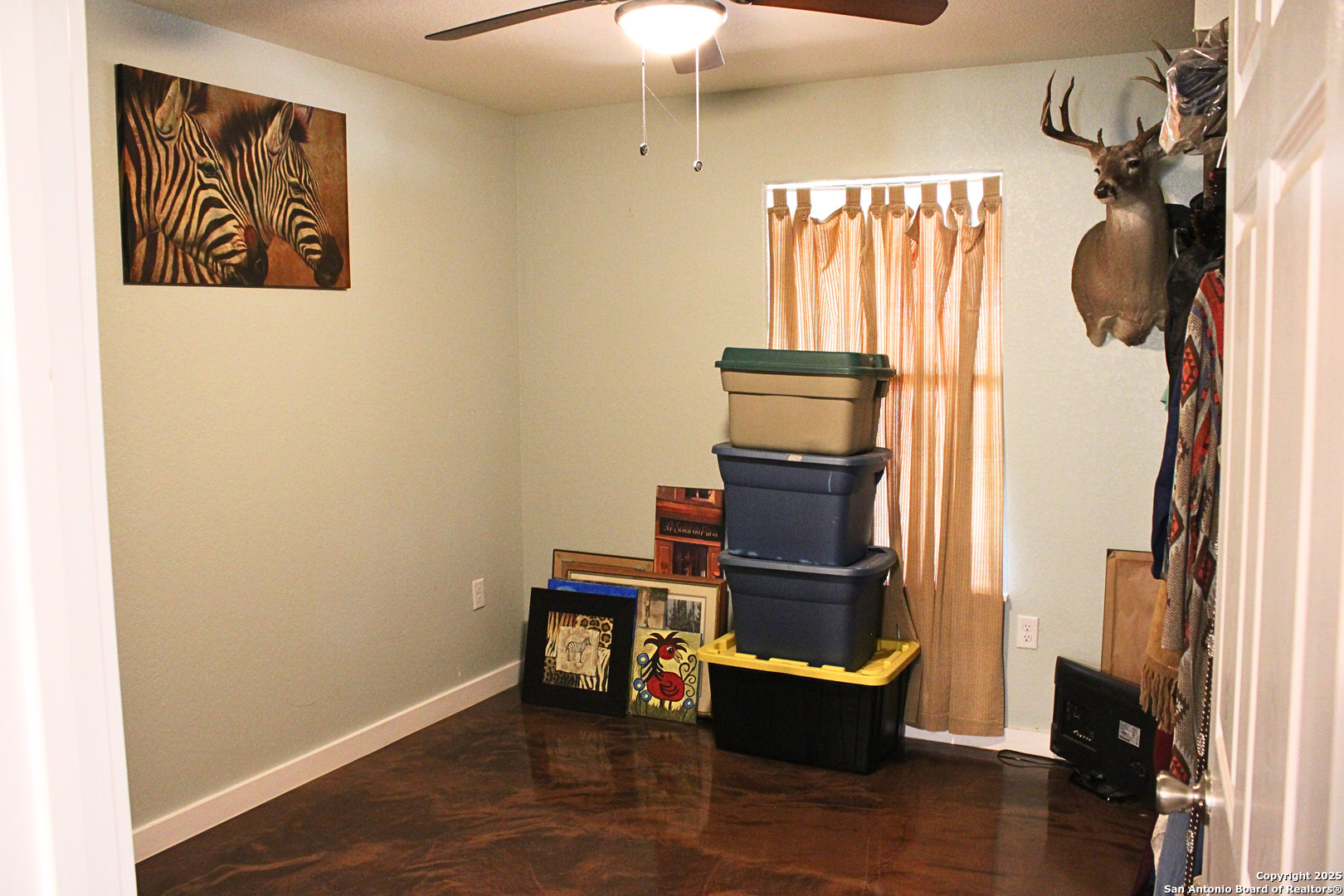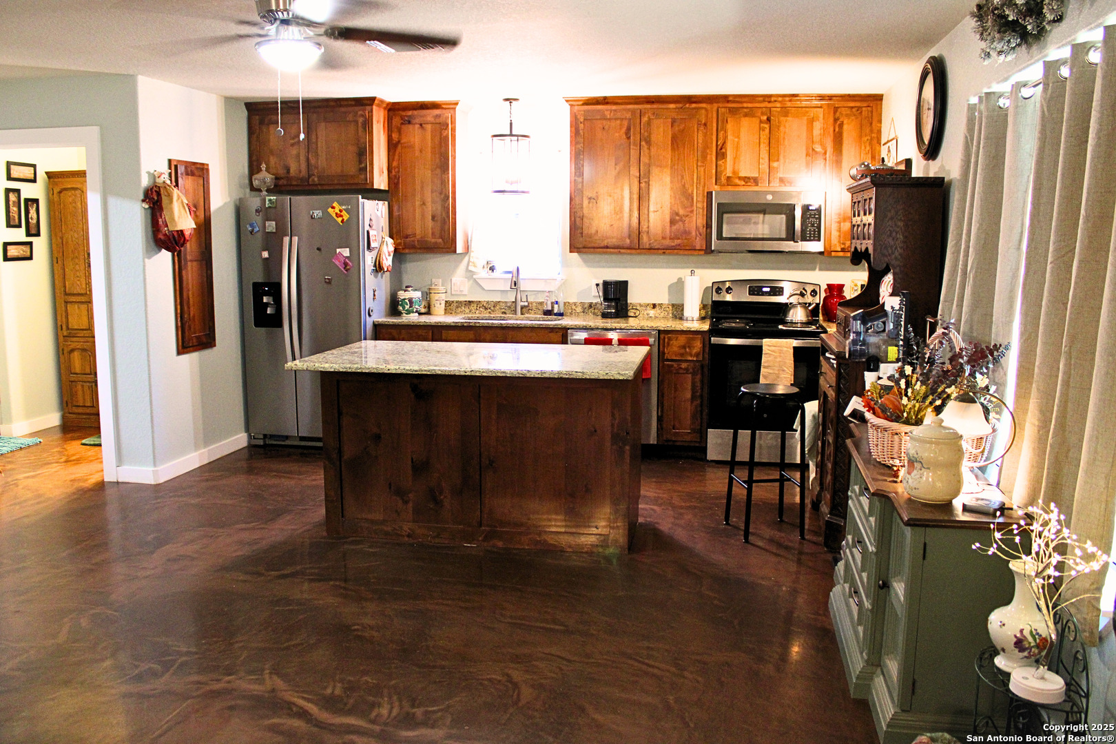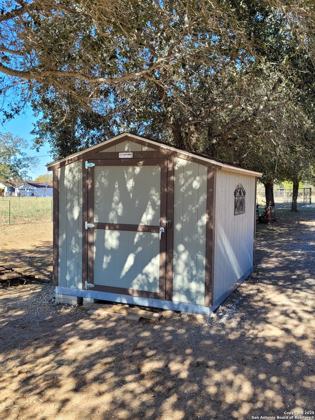 Beautiful Barndominium on 10.01 Acres - Ag-Exempt, Fully Fenced, and Ready for new owners! Welcome to your dream country retreat! This newer barndominium combines rustic charm with modern comfort, offering 1,200 square feet of thoughtfully designed living space. Featuring 2 bedrooms and 1 full bathroom, this home is ideal for those seeking peaceful rural living without sacrificing style or efficiency. Step inside to find stained concrete floors throughout, lending both durability and a sleek modern touch. The open-concept kitchen is beautifully finished with granite countertops, ample cabinet space, and a seamless flow into the living area - perfect for entertaining or relaxing after a long day. Outside, enjoy the serenity of your covered back patio, ideal for morning coffee or evening sunsets. The 10.01-acre property is fully fenced and cross-fenced, complete with cattle/goat pens and plenty of open land for horses or other livestock. A storage shed provides additional space for tools, equipment, or hobbies. The property includes gated entrances for added security and convenience. Blown insulation in the attic and the naturally efficient design of barndominiums help keep utility costs low - making this home not only beautiful but also energy efficient. With its ag-exempt status, you'll enjoy reduced property taxes while maintaining a lifestyle perfectly suited for ranching, recreation, or quiet country living. Don't miss your chance to own this stunning and versatile barndominium and gorgeous ranch property - where modern comfort meets wide-open Texas countryside!