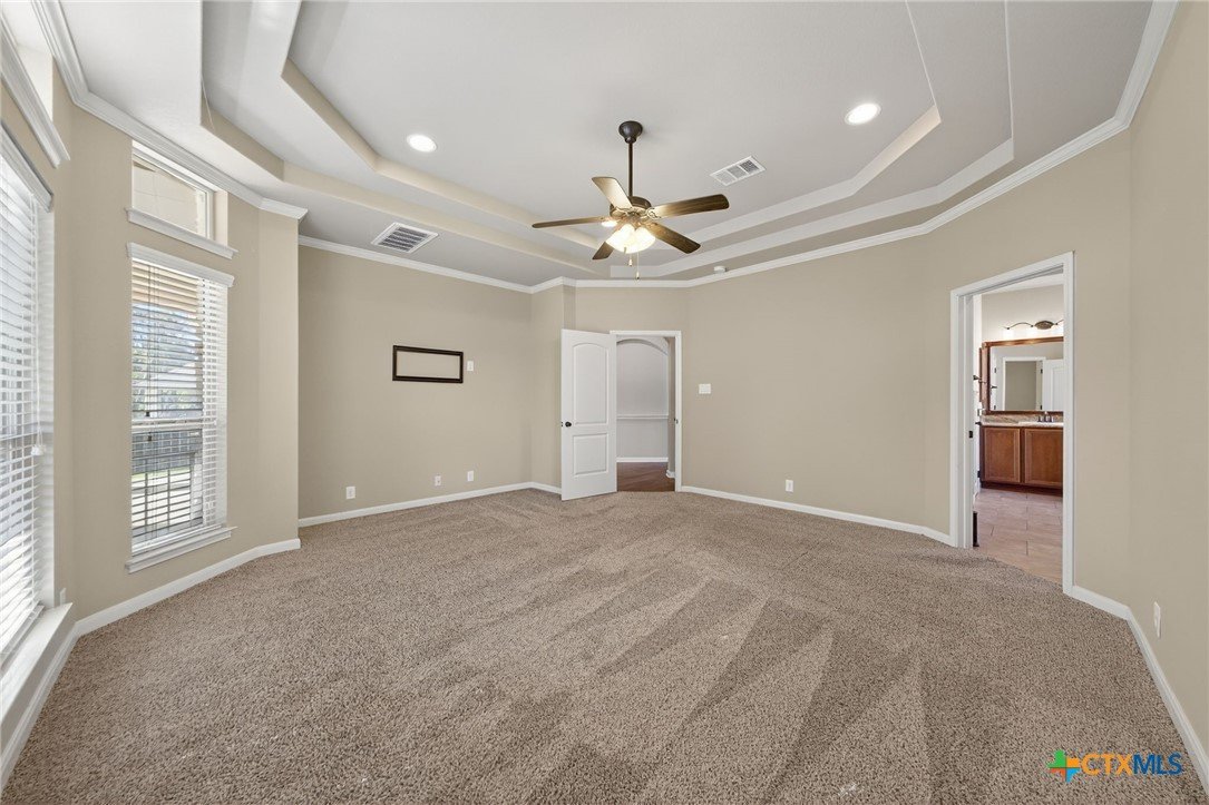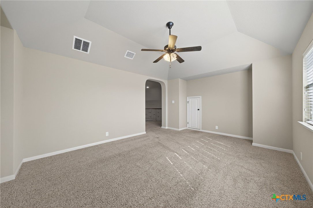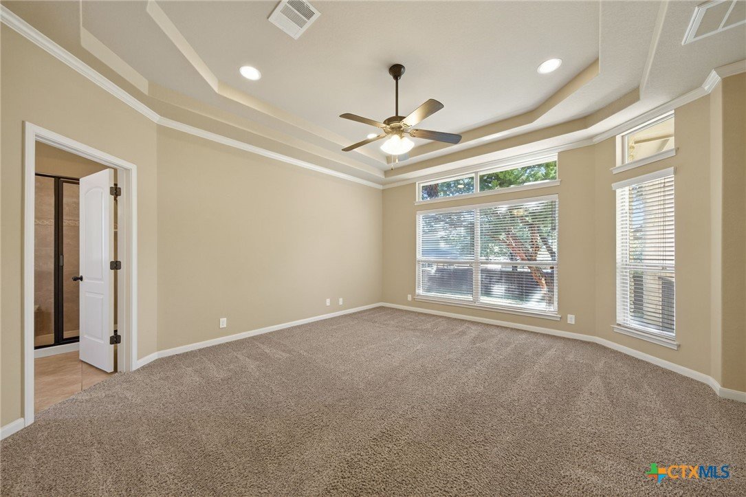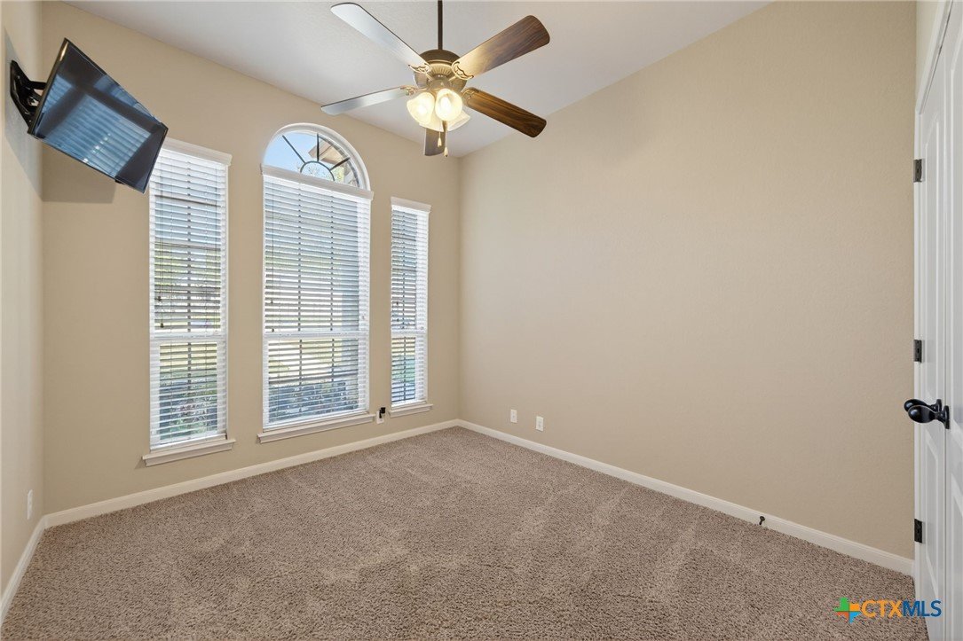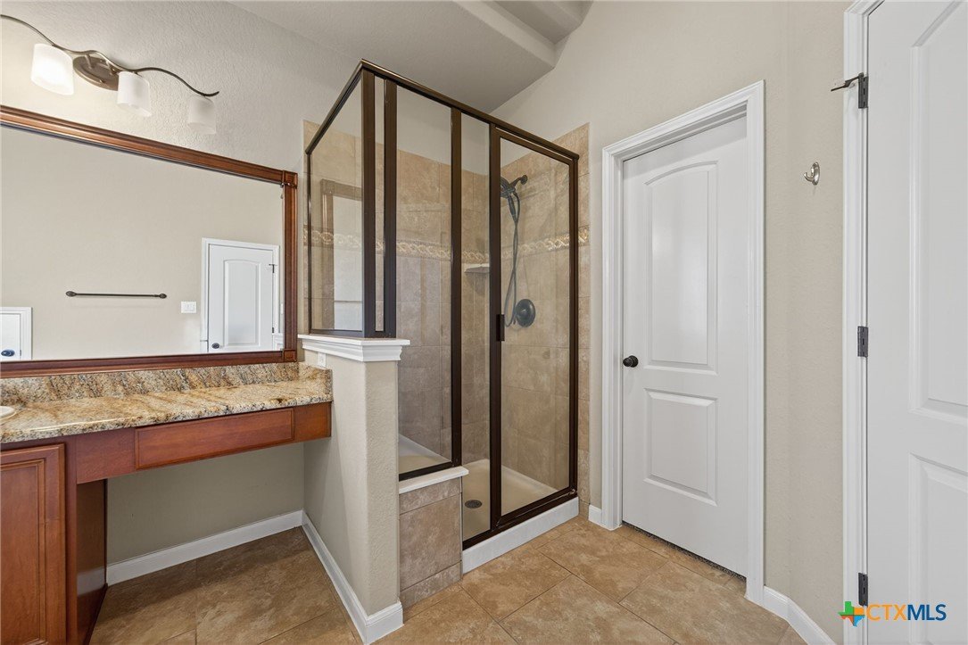 Welcome to this beautiful home set on .344 acres in the gated community of Manor Creek, conveniently located near the community pool. The grand entry with hardwood floors leads into a spacious foyer. The main level features a bedroom with an adjacent full bath, a formal dining room, and a dedicated office. The open living area flows seamlessly into the kitchen, which offers a center island, granite countertops, bar seating, a breakfast nook, gas cooktop, and abundant cabinetry. The primary suite overlooks the backyard and includes dual vanities, a corner tub, walk-in shower, and a large walk-in closet. Two additional bedrooms and a full bath complete the upstairs. The large backyard provides a blank canvas with afternoon shade—perfect for creating your ideal outdoor retreat. An oversized driveway leads to the 3-car garage. Manor Creek amenities include a community pool, neighborhood events, weekly food trucks, and city utilities with gas. Conveniently located near schools, shopping, medical facilities, restaurants, and entertainment, this home offers the best of comfort and Hill Country living. Come experience all that Manor Creek has to offer!