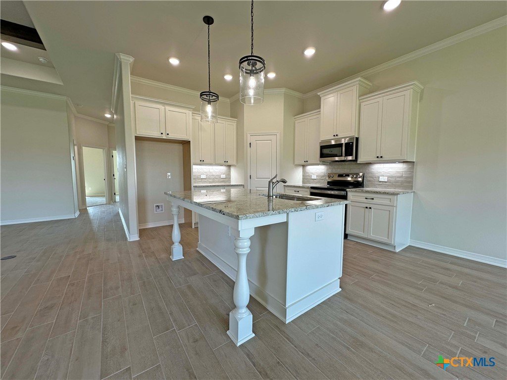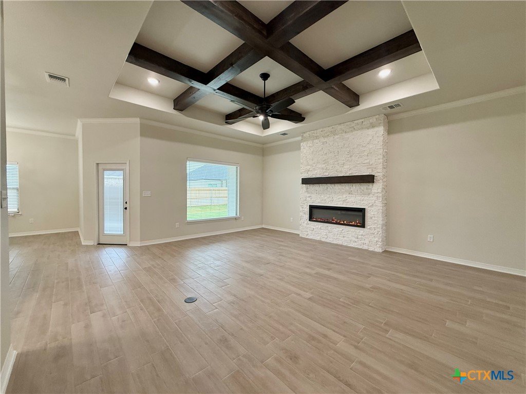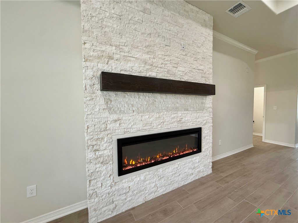 Discover a thoughtfully laid out design in the Nugget plan, offering 4 bedrooms, 2.5 bathrooms, a 2-car garage, and 2120 square feet of living space. The wood-beamed ceiling in the living room adds a touch of rustic charm, creating a cozy ambiance for relaxing with family and friends. And with an electric fireplace, you can enjoy the flickering flames year-round, adding an extra layer of comfort and elegance to your home. The spa-Like Master Bath is the epitome of relaxation. This space is designed to elevate your daily routine with features that go beyond the ordinary. From the vaulted ceilings, natural light, opposing vanities, dual-entry walk-in shower, and elegant garden tub, you will find the ultimate spot for relaxing and rejuvenation. Enjoy the benefits of the neighborhood amenities in Blackland Ranch, including a playground and dog park, close proximity to Baylor S&W Hospital, schools, shopping, restaurants, and easy access to I-35.