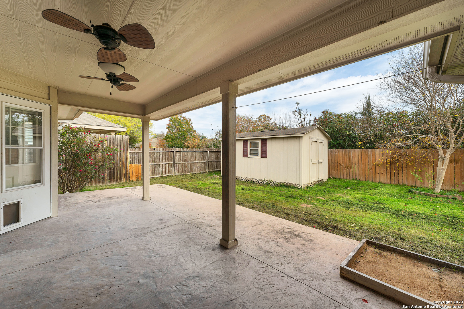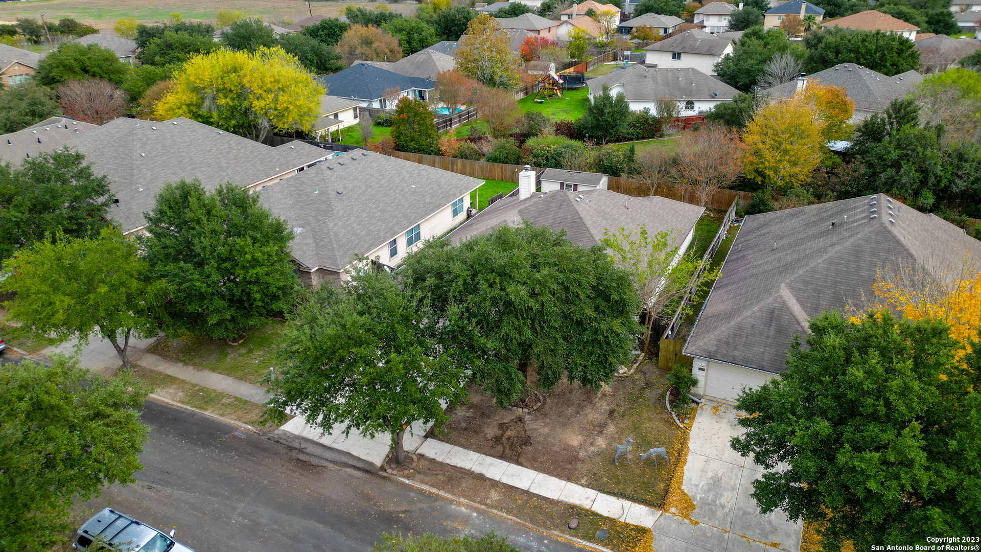 You have to see the gorgeous home in Dove Crossing! Featuring 1887 square feet, 3 bedrooms, and 2 bathrooms, this home feels spacious, while boasting an easy-to-maintain footprint. The open and airy floor plan features a light and modern color palette, granite countertops, glass backsplash, crown molding, rounded archways and ceramic tile in all wet areas. A beautiful stone fireplace with mantle and hearth. A newer HVAC unit, granite kitchen counters, and a beautiful covered back porch are just a few reasons this home is great! To top it all off, you're just a quarter mile from the community pool and basketball court, and just 1 mile from Fischer Park; getting outside and enjoying nature has never been so convenient! Enjoy the large, covered back patio that's great for relaxing or entertaining on those alluring Texas evenings. It even comes complete with a large storage shed in the backyard. This home is a must see!
