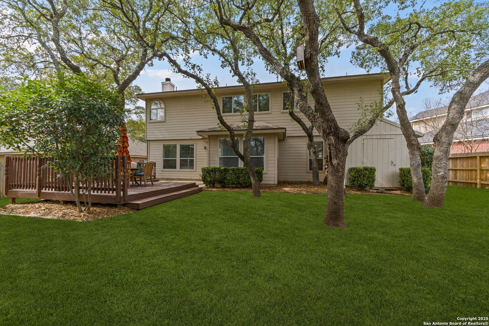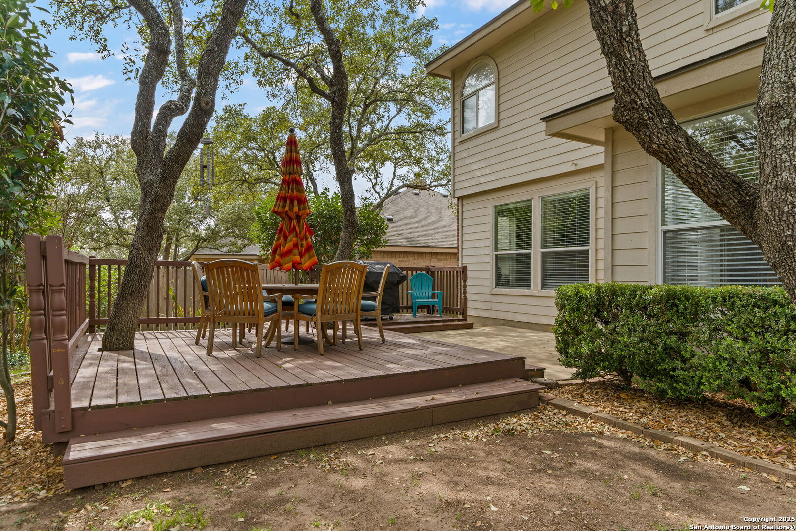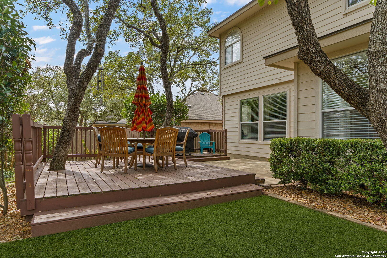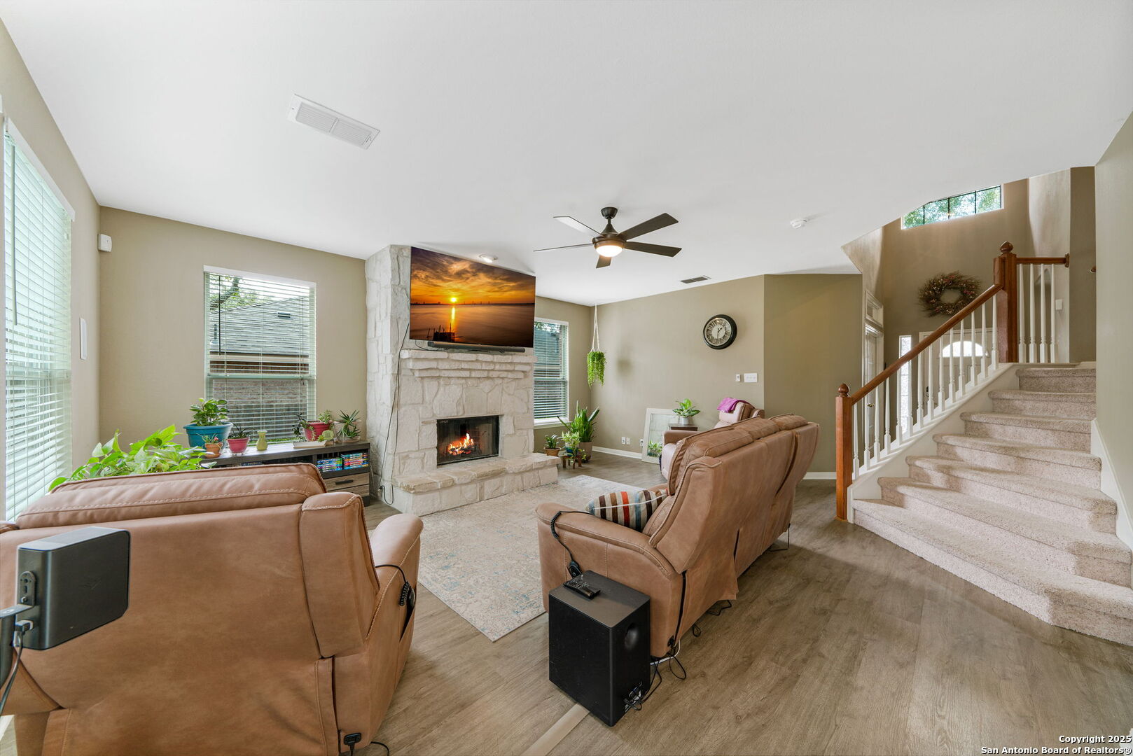 Remington Heights best floor plan* This home sits on a semi-cul-de-sac. Great front porch leads to a great entry, Crown molding and chair rail in formal dining and a private office. Plank flooring into Family room with a stone fireplace and open floor plan*Spacious kitchen with breakfast bar, canned lighting, quartz countertops, Stainless Steel Appliances with backsplash. Breakfast room is encased with windows for natural lighting. Large game-room with built-in entertainment center. 4 bedrooms upstairs with 3 baths. Primary has full, walk in shower, garden tub, separate vanities. Powder room downstairs. Nice backyard with patio & deck for entertaining.