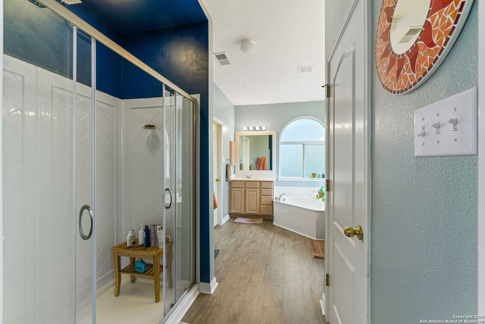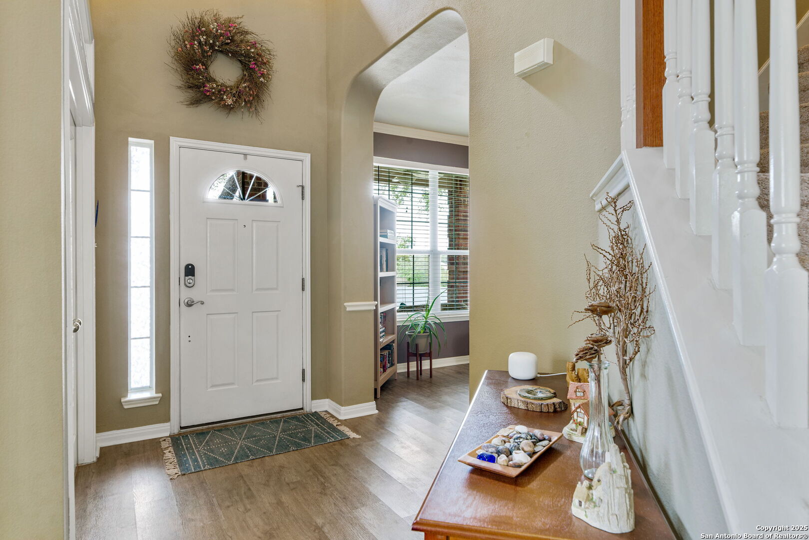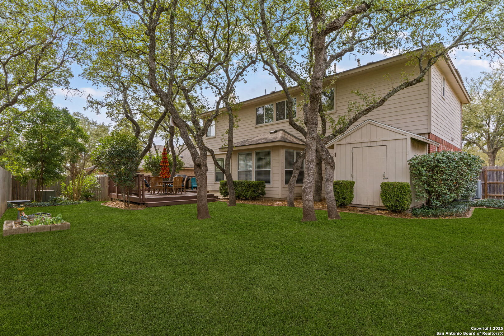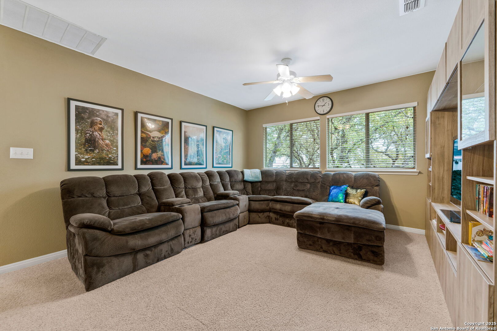 Remington Heights best floor plan* This home sits on a semi-cul-de-sac. Great front porch leads to a great entry, Crown molding and chair rail in formal dining and a private office. Plank flooring into Family room with a stone fireplace and open floor plan*Spacious kitchen with breakfast bar, canned lighting, quartz countertops, Stainless Steel Appliances with backsplash. Breakfast room is encased with windows for natural lighting. Large game-room with built-in entertainment center. 4 bedrooms upstairs with 3 baths. Primary has full, walk in shower, garden tub, separate vanities. Powder room downstairs. Nice backyard with patio & deck for entertaining.