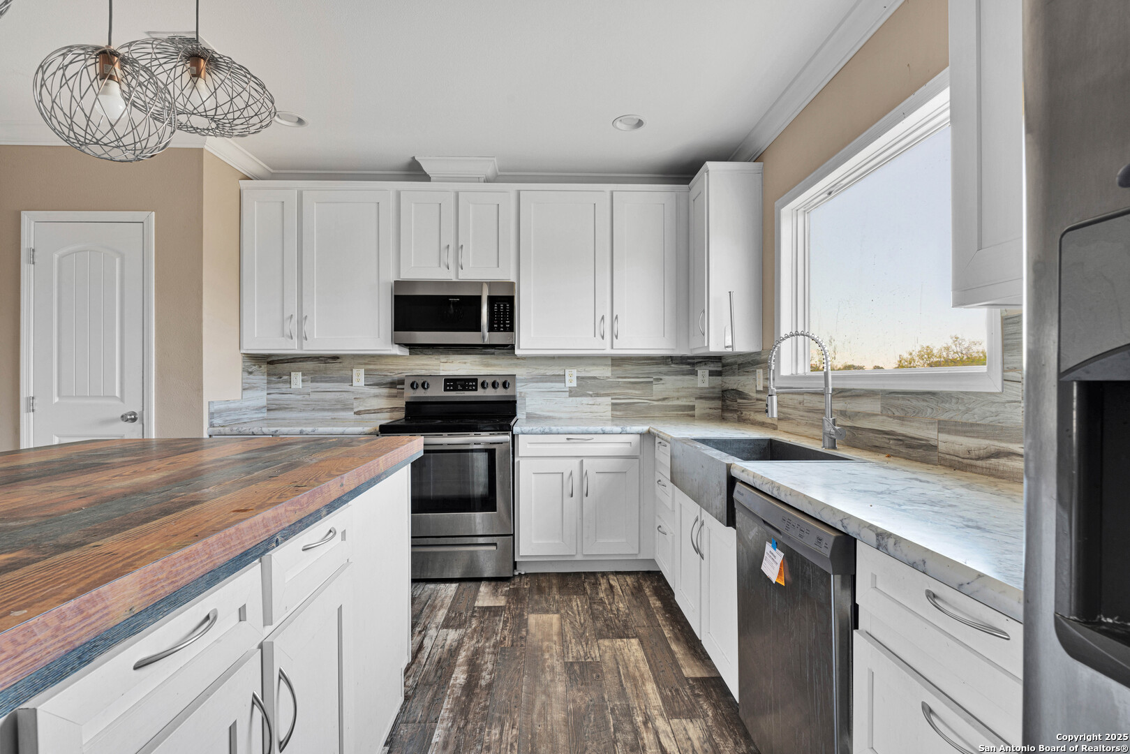 Beautiful home on 1.5 acres! This spacious 3-bed, 2-bath property features a large living room and an open kitchen with abundant counter space, generous storage, and an island perfect for casual dining or extra prep room. Enjoy a separate dining room for gatherings and meals. The primary suite includes its own bathroom with a double vanity, relaxing soaking tub, stand-up shower, and a walk-in closet. The second bathroom also offers a double vanity for easy sharing. Modern fixtures throughout complement the open floor plan. Outside, the 1.5-acre lot provides plenty of room to explore-a blank canvas ready for your vision.