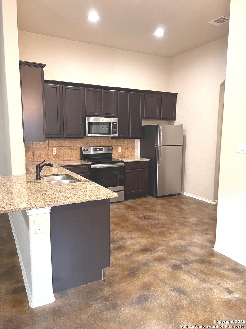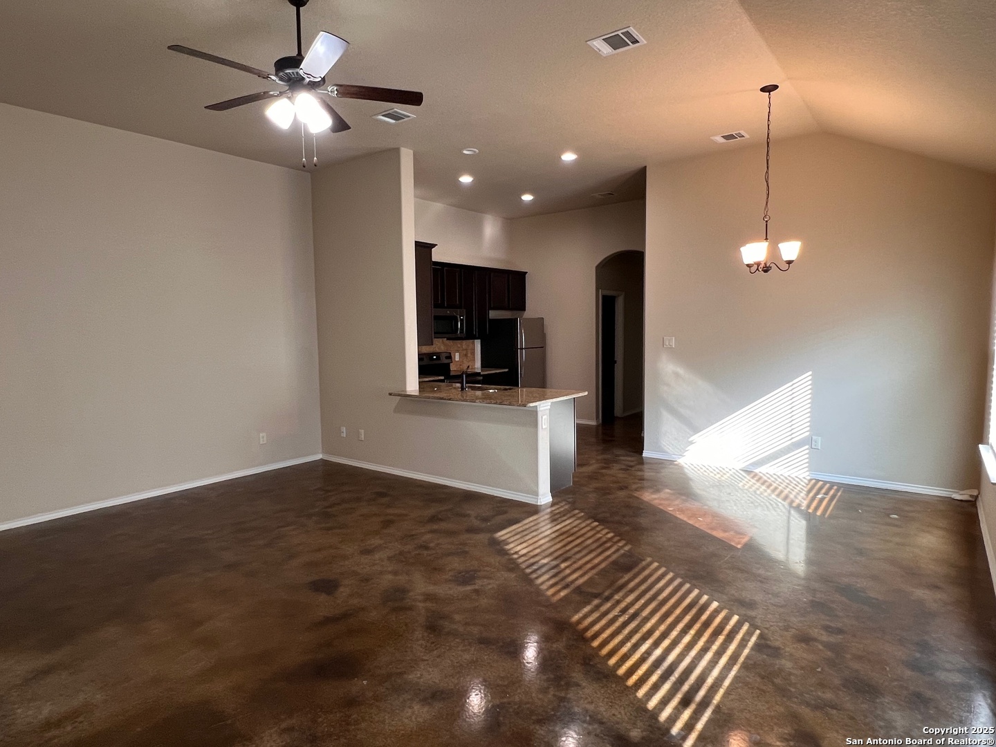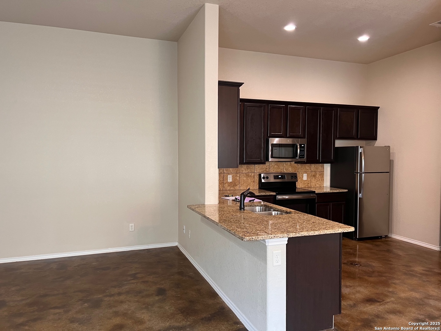 RENTAL SPECIAL - 2 WEEKS FREE RENT FOR A 12 MONTH LEASE!!! Modern 3 Bed, 2 Bath, 2 car garage in prime New Braunfels Location. This property features an open-concept kitchen and living area with sleek granite countertops and durable stained concrete floors throughout, combining modern style with easy maintenance. All bedrooms are thoughtfully positioned toward the back of the home for added privacy and quiet. Washer and dryer connections conveniently located in the inside laundry room. Walls are doubled insulated units for privacy and a xeriscape yard for low maintenance. Step outside to a private, fenced backyard with a covered patio - perfect for relaxing, entertaining, or enjoying a peaceful evening under the stars. Conveniently located near shopping, dining and quick access to IH-35, Fischer Park, downtown New Braunfels, San Marcos and Gruene. Contact agent if you have additional questions.