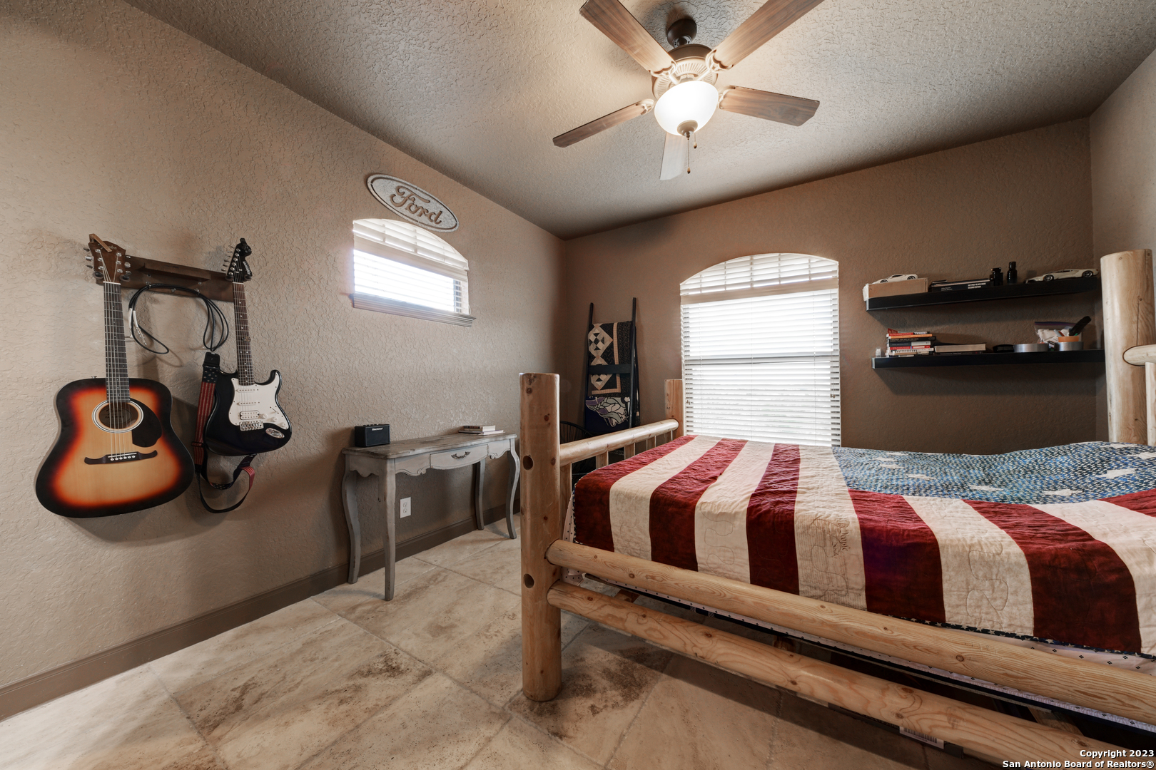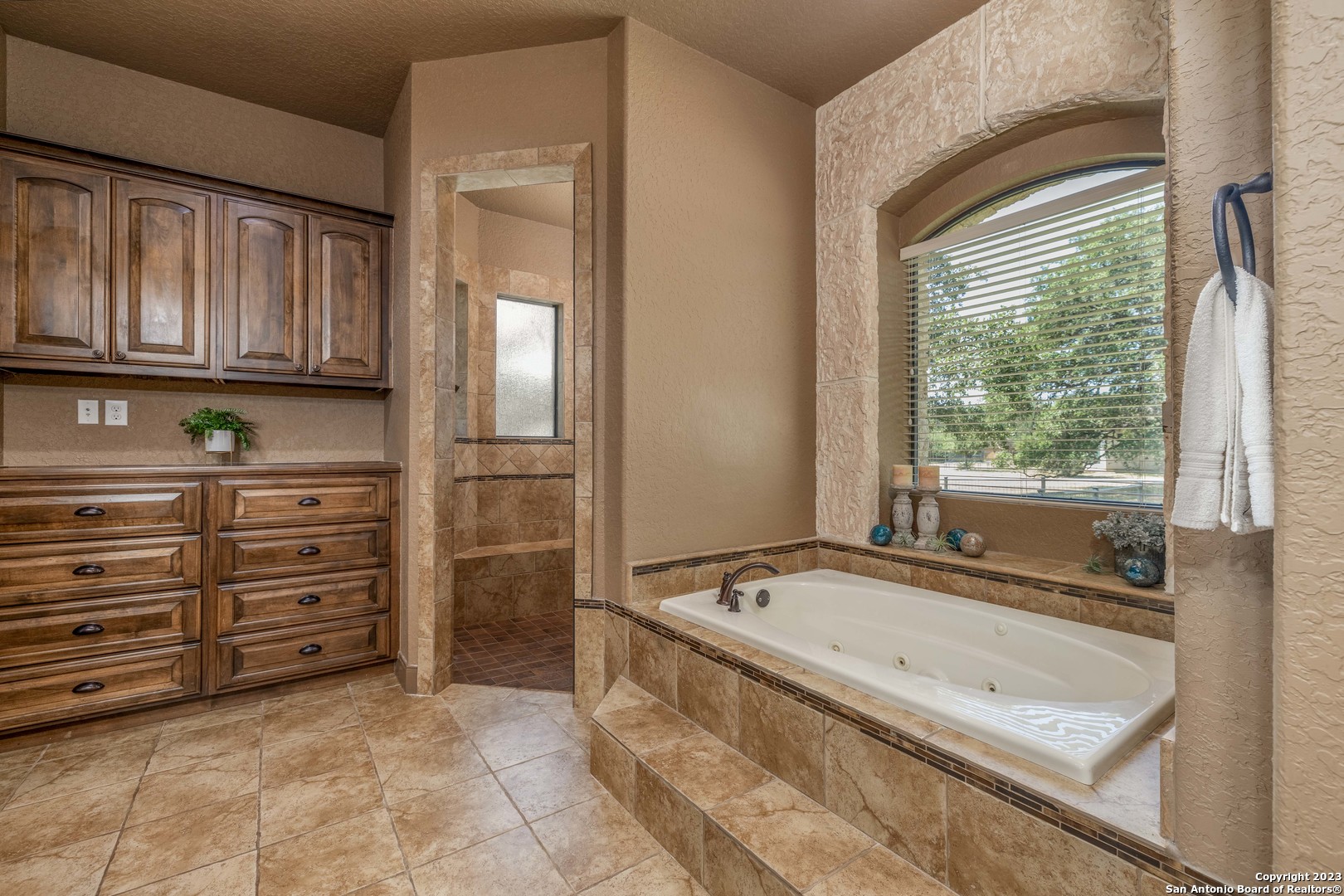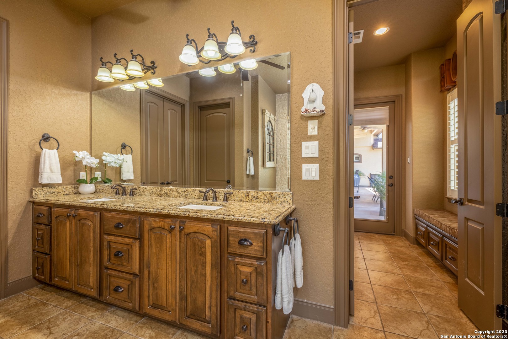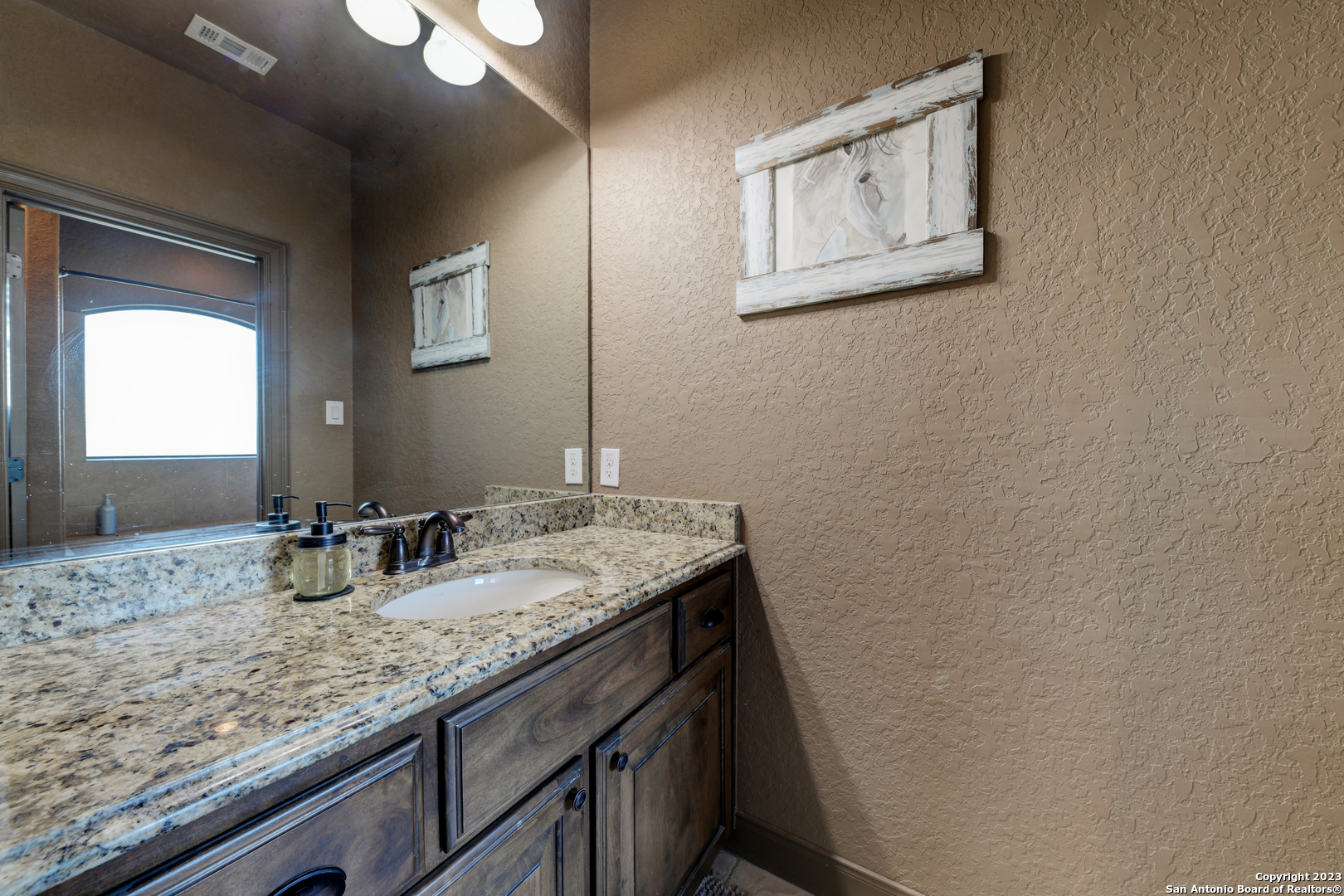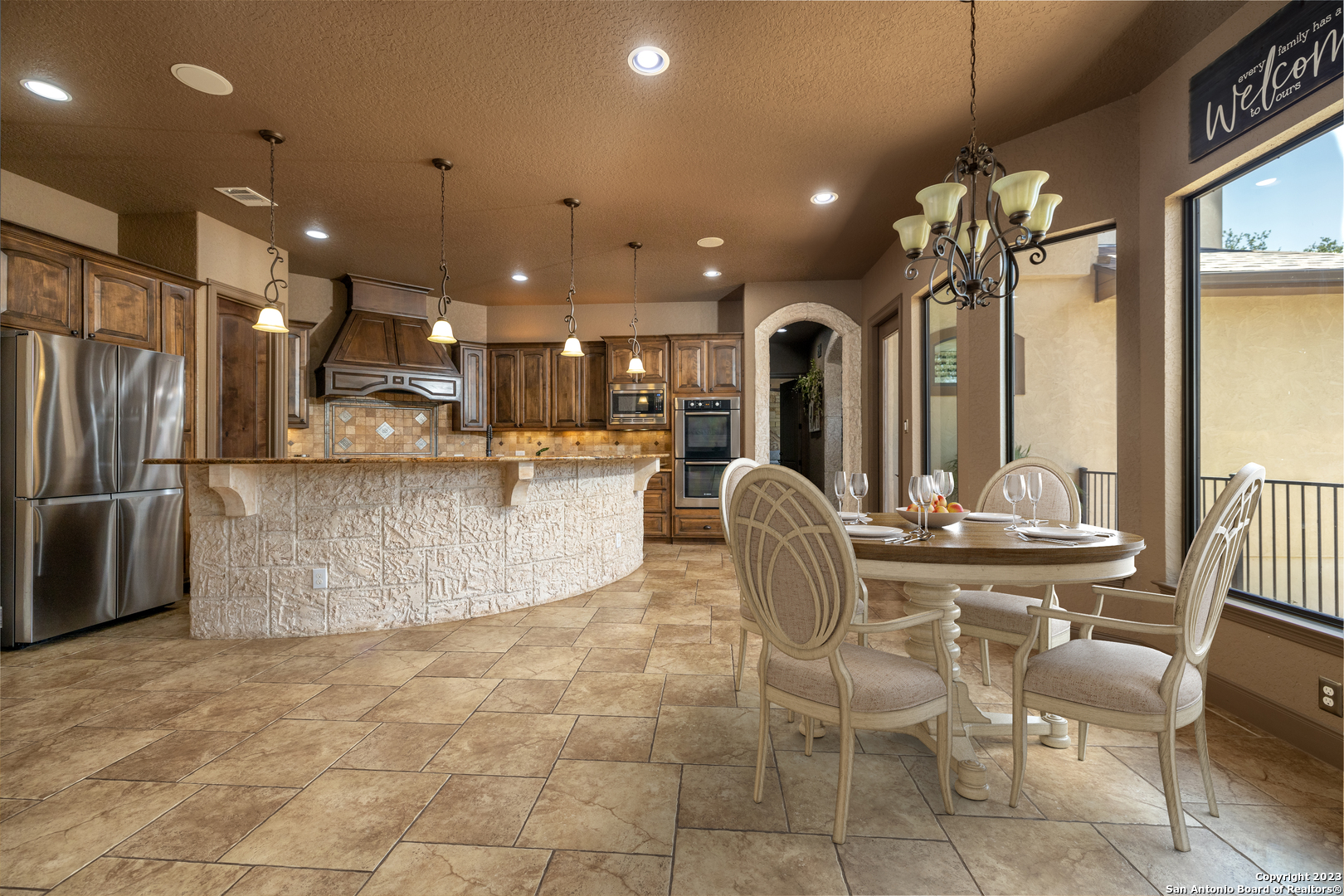 Stunning and luxurious home nestled on a sprawling 2.01-acre estate, where the rustic charm of Texas Hill Country harmoniously blends with the elegance of Mediterranean architecture. Situated in the heart of the picturesque Texas landscape, this residence is a true masterpiece that combines the best of both worlds. As you approach the property, you are greeted by a grand entrance framed by lush, landscaped gardens and towering mature trees. Step inside, and you will be captivated by the refined craftsmanship and meticulous attention to detail. The foyer welcomes you with a casting a radiant glow throughout the space.The gourmet kitchen is fantastic, featuring custom cabinetry, walk-in pantry, and a generous center island with a beautiful granite countertop. The living room is a haven of comfort and sophistication, featuring a gorgeous fireplace and high vaulted ceilings. Oversized windows provide panoramic views of the lush backyard oasis, flooding the space with an abundance of natural light. Adjacent to the living room, a well-appointed study offers a peaceful retreat for work or contemplation. The master suite is a true sanctuary, featuring a spacious bedroom with a sitting area and outside access overlooking the meticulously manicured grounds. The en-suite bathroom is a spa-like haven, complete with a soaking tub, a walk-in shower, and dual vanities. A generously sized walk-in closet offers ample space for your wardrobe and personal belongings. Surrounded by lush landscaping, this private retreat provides the perfect backdrop for relaxation and entertainment. Located within the Ricer Chase master-planned community full of great benefits, including a 57-acre RiverFront Park, sparkling neighborhood pool, walking/hiking/jogging trails, clubhouse, brand new workout facility, sports courts, a true surplus of amenities to meet every desire. The covered patio invites you to savor the breathtaking views of the rolling hills and majestic sunsets that Texas Hill Country is renowned for. With its impeccable design, breathtaking views, and unrivaled attention to detail, this Texas Hill Country masterpiece offers an extraordinary lifestyle that truly embodies the pinnacle of opulence!