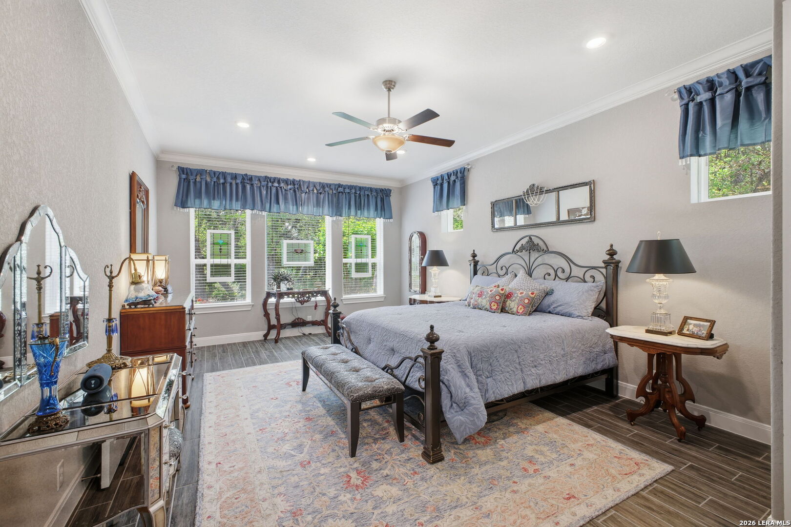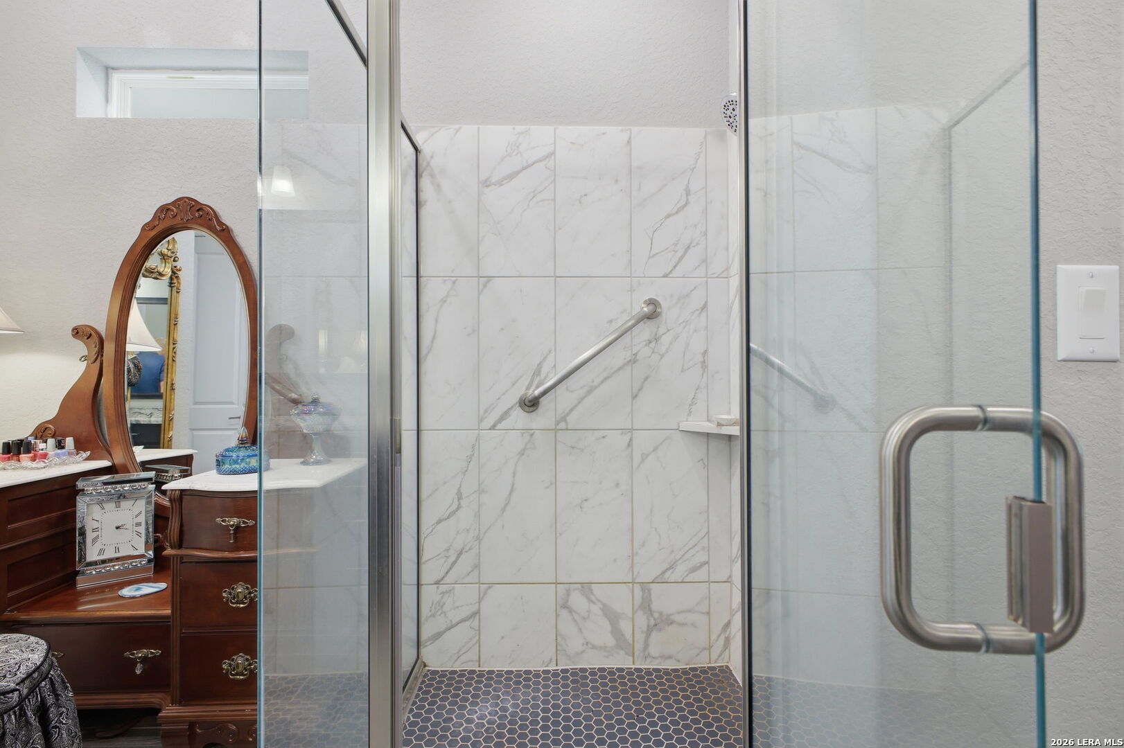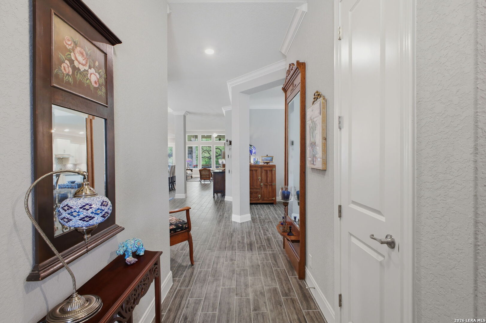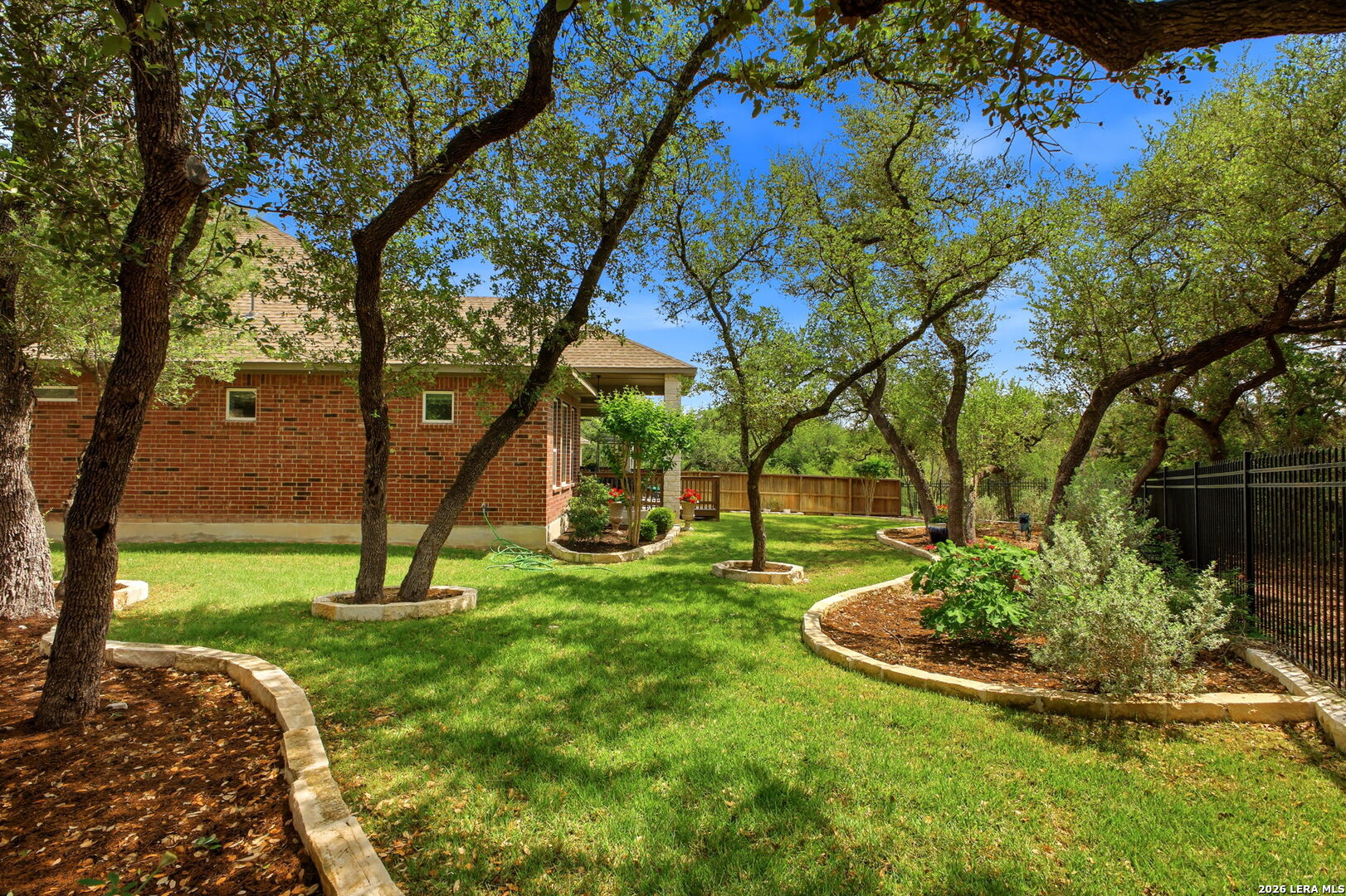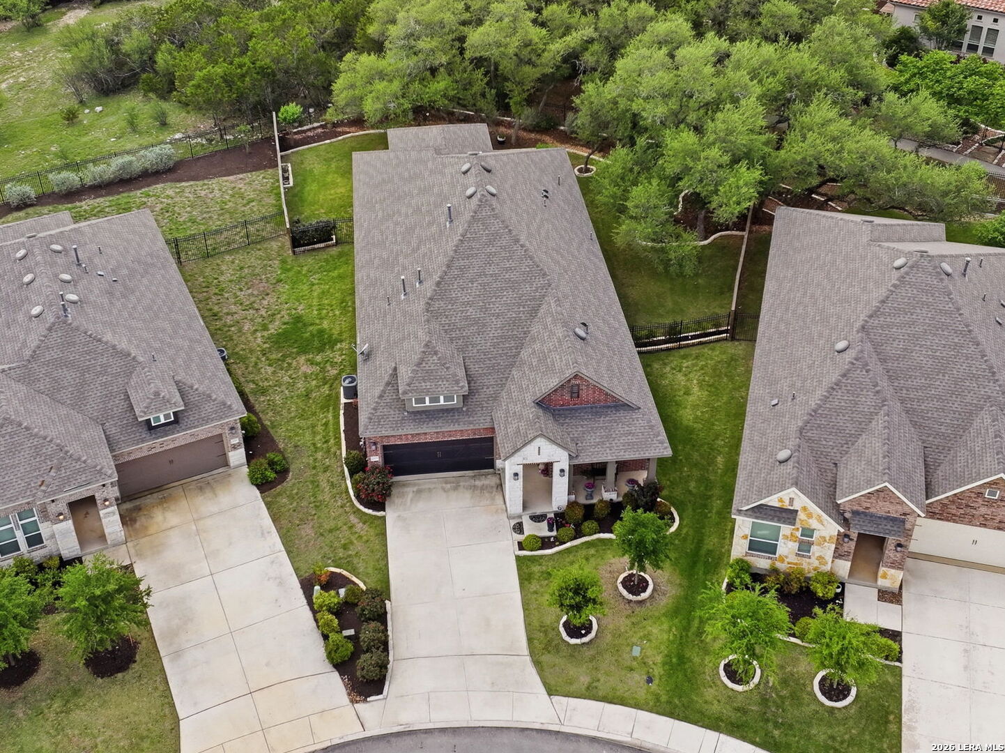 OPEN HOUSE 4/19, 12-3PM. Welcome to 22815 Grande Vista, located in the gated Campanas section of the highly sought-after Cibolo Canyons community. Built in 2021, this beautifully maintained one-story cul-de-sac home offers 2454 SF of thoughtfully designed living space and includes the remainder of the builder's 10-year limited warranty for added peace of mind. This 3 BRs, 2-bath home features an open layout with stunning faux wood-look tile flooring throughout the main living and wet areas, combining style and durability. The spacious kitchen and living areas flow seamlessly, ideal for both everyday living and entertaining. A versatile flex space provides the perfect option for a second living area, media room, home office, or playroom to fit your lifestyle. The private primary suite offers a true retreat with an oversized walk-in shower, double vanity, and a convenient pass-through walk-in closet with direct access to the laundry room. Secondary bedrooms are well-sized and provide flexibility for guests or additional workspace. Step outside to enjoy the expansive covered patio overlooking a lush greenbelt with access to the trails, creating a peaceful outdoor living space with added privacy. The charming covered front patio enhances the home's welcoming curb appeal. Enjoy low-maintenance living with year-round lawn care provided by the HOA. Residents of Campanas at Cibolo Canyons have access to resort-style amenities including two pools, pickleball courts, a clubhouse, and a fitness center. Conveniently located with easy access to Loop 1604 and Highway 281, and just minutes from premier shopping, dining, and entertainment, including the JW Marriott and world-class golf courses. This home offers comfort, flexibility, and an exceptional lifestyle in one of the area's most desirable gated communities. Schedule your showing today.
