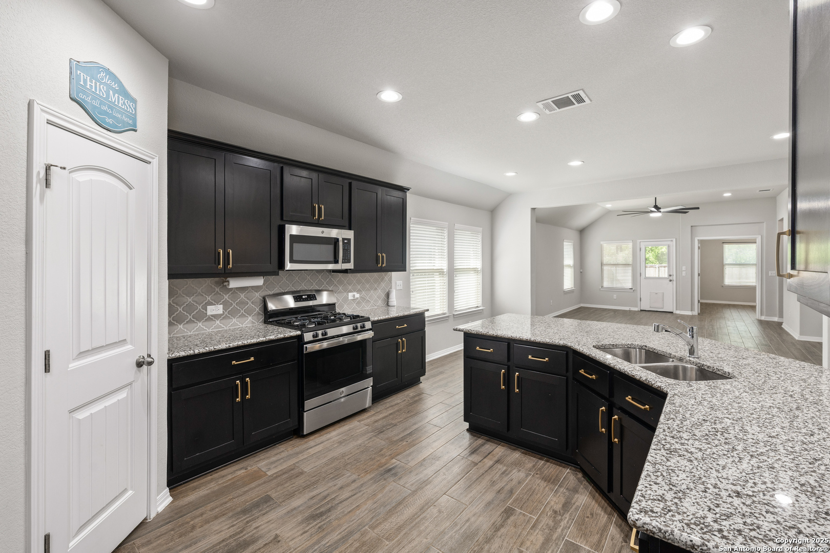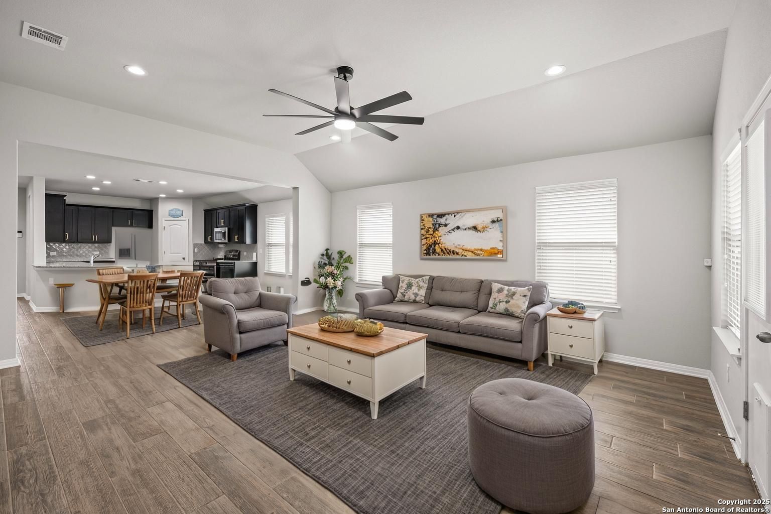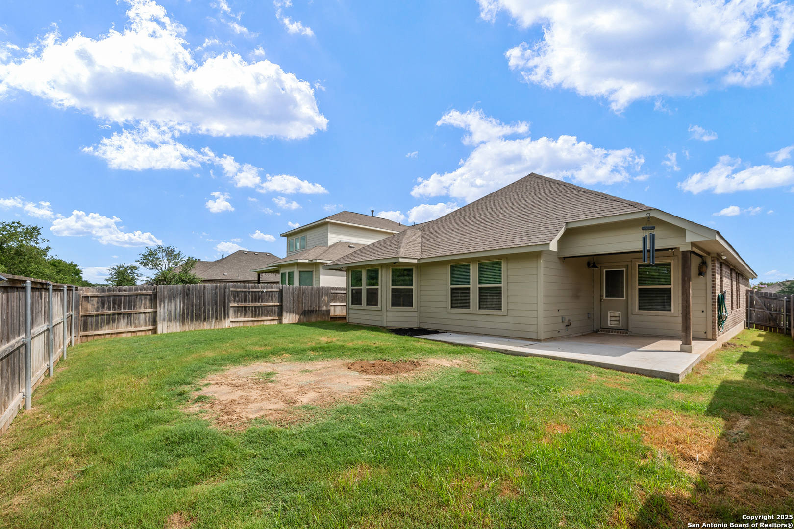 This home as an assumable 3.125% interest rate available! **Blanco Vista Beauty with a Home Office, Flex Space & No Rear Neighbors!** If you've been dreaming of a spacious one-story home that checks all the boxes, this is the one. With a dedicated home office and a flex space, there's room for everything-whether you work from home, need a playroom, or want a creative studio or gym. Just 4 years old and full of modern charm, this 3-bedroom, 2-bath home in Blanco Vista offers 2,204 square feet of thoughtfully designed living space. From the moment you walk in, you'll notice the beautiful wood-look tile floors and the open, airy feel throughout the main living areas. The kitchen is a total standout-spacious, stylish, and perfect for cooking up your favorite meals or entertaining guests. It opens right into the living and dining spaces, so everything feels connected and easy. Need a quiet place to work or focus? You've got it. There's a private office up front *plus* an additional flex room that you can use however you like. The primary bedroom is oversized with space for a cozy sitting area, and the en-suite bathroom offers a peaceful retreat after a long day. Step outside to your extended covered patio, where you can enjoy outdoor meals or just relax with your morning coffee-no rear neighbors, just peace, privacy, and a view of mature trees. And let's not forget the perks of living in Blanco Vista. This master-planned community has it all-an on-site elementary school, two swimming pools (one junior Olympic, one just for the kids), playgrounds, lush parks, and miles of hike and bike trails. You're even close to the Blanco River, perfect for weekend adventures. This home is move-in ready and waiting for you to make it your own. Come see it in person-you're going to love it here!