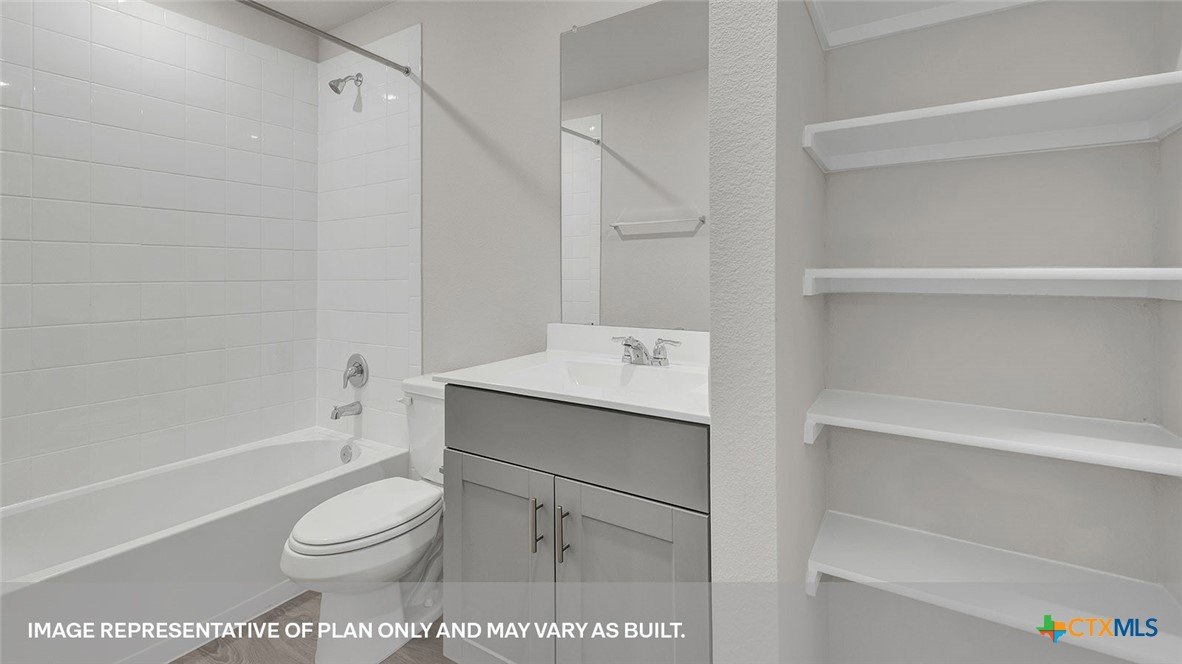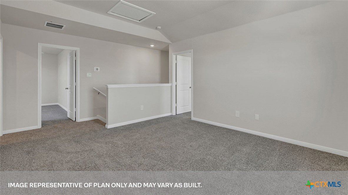 MOVE IN READY! EASY ACCESS TO I-35! Check out the Florence floorplan at Whisper South in San Marcos, Texas. This two-story new home has 3 bedrooms, 2.5 bathrooms, a gameroom and a 2 car garage across 1,852 square feet of modern living space. Our homes in Whisper South feature three-sided masonry exteriors. Step inside the home from the covered front porch into the foyer. Passing the powder room and staircase, you’ll enter the kitchen, dining, and family room. This open concept space was built to make cooking, eating, and entertaining a pleasant experience for family and friends. The kitchen features an island with undermount sink, quartz countertops, a pantry closet, 36” upper cabinets, and stainless-steel appliances, including a gas range. Enjoy the natural light from the side and rear windows. The oversized utility room is off the kitchen and connects to the garage. Completing the downstairs area is the primary bedroom, which includes an attached bathroom. This relaxing bathroom space features a walk-in shower, double vanity with marble counter tops, private toilet area with a door, and a huge walk-in closet. You will have plenty of space in this closet for your accessories and prized possessions. Upstairs are the two additional bedrooms, a full bathroom, and the gameroom. The secondary bathroom includes a shower/tub combination, and all secondary bedrooms have amble closet space. Whether you use these rooms as an office, child’s room or guest room, there is enough room for work, sleep, and play. The Florence includes vinyl flooring throughout the common areas of the home, and carpet in the bedrooms. All our new homes feature a covered back patio, full sod, irrigation system in the front and back yard, and a 6’ privacy fence around the back yard. This home includes our America’s Smart Home base package, which includes the Amazon Echo Pop, Front Doorbell, Front Door Deadbolt Lock, Home Hub, Thermostat, and Deako® Smart Switches.