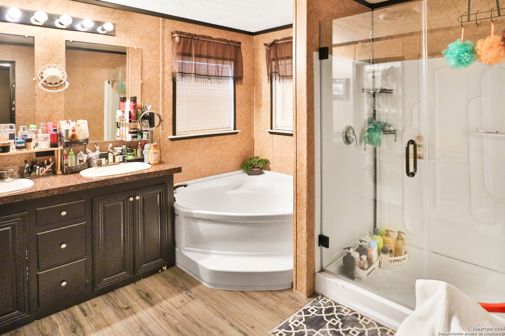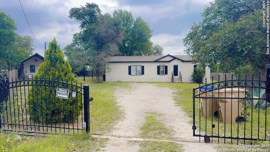 DOUBLE WIDE HOME ON A 0.41 ACRE LOT!! - VA ELIGIBLE, Charming 3 Bed | 2 Bath Home with Potential Guest Casita and located on Private Cul-de-Sac - This gated 0.41-acre estate offers a rare blend of seclusion, versatility, and Southern hospitality-all just minutes from downtown San Antonio. your private escape just outside the city-where rural charm meets refined comfort. The main home features 3 bedrooms and 2 full baths, with thoughtful details throughout. Step outside, and the magic truly begins: an expansive outdoor entertaining area awaits, complete with 3 large covered patios, ceiling fans, and plenty of space to gather, relax, or celebrate life's best moments. There's even a built-in outdoor chimney, perfect for cozy evenings under the stars or hosting unforgettable backyard events year-round. And for even more flexibility, a casita stands ready with great potential - ideal as a guest suite, in-law quarters, creative studio, or rental opportunity. It adds tremendous value and potential to this already remarkable property. Whether you're roasting marshmallows by the fire, hosting summer BBQs, or simply letting the kids and pets run free, this home offers the space and serenity to live fully. VA eligible and cash only, this is your chance to own a one-of-a-kind property where city convenience meets countryside soul. Come see why life feels better on Sweet Liberty.