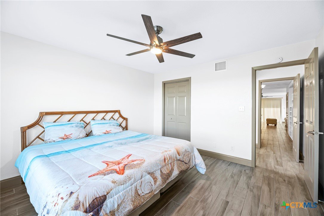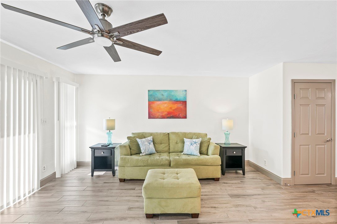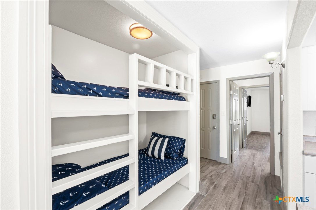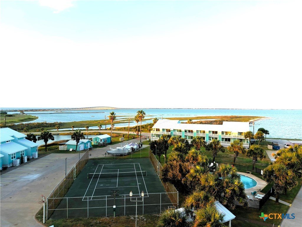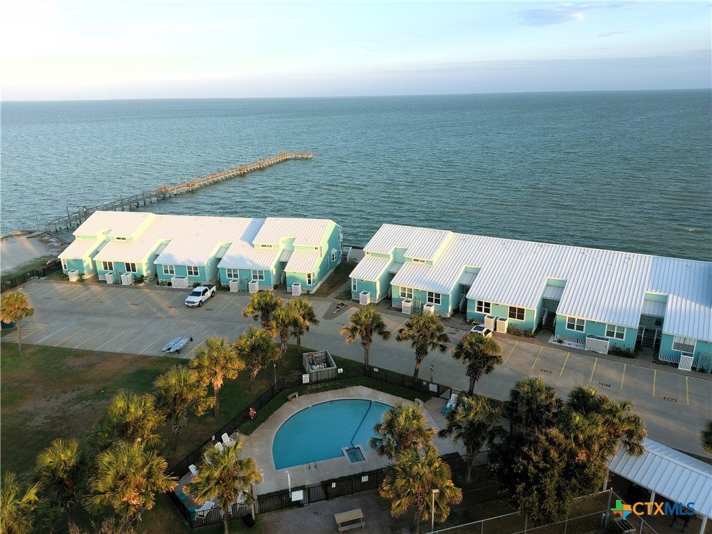 Charming condo featuring fabulous water views on one side and a view of the sparkling pool on the opposite side! This spacious 1 bedroom, 1 bath condo is located in the desirable Bayfront at Kontiki Condominiums and has everything you need! Open floor plan, a large owner's suite, tile tub surround, a tankless water heater, and wood look tile flooring complete the beautiful condo. As an added bonus, there is a set of built in bunk beds for extra guests. The back deck has a wonderful canal view and is a great place to unwind and watch the sunset after a day on the water. The scenic surroundings make this the perfect vacation rental or permanent home. Amenities include a swimming pool, a bay front pier, a boat ramp, boat parking, a tennis court, and covered grilling areas. Short and long term rentals are allowed if you are looking for an investment property. The unit comes mostly furnished. Call your favorite Realtor today and come see this fabulous property for yourself!