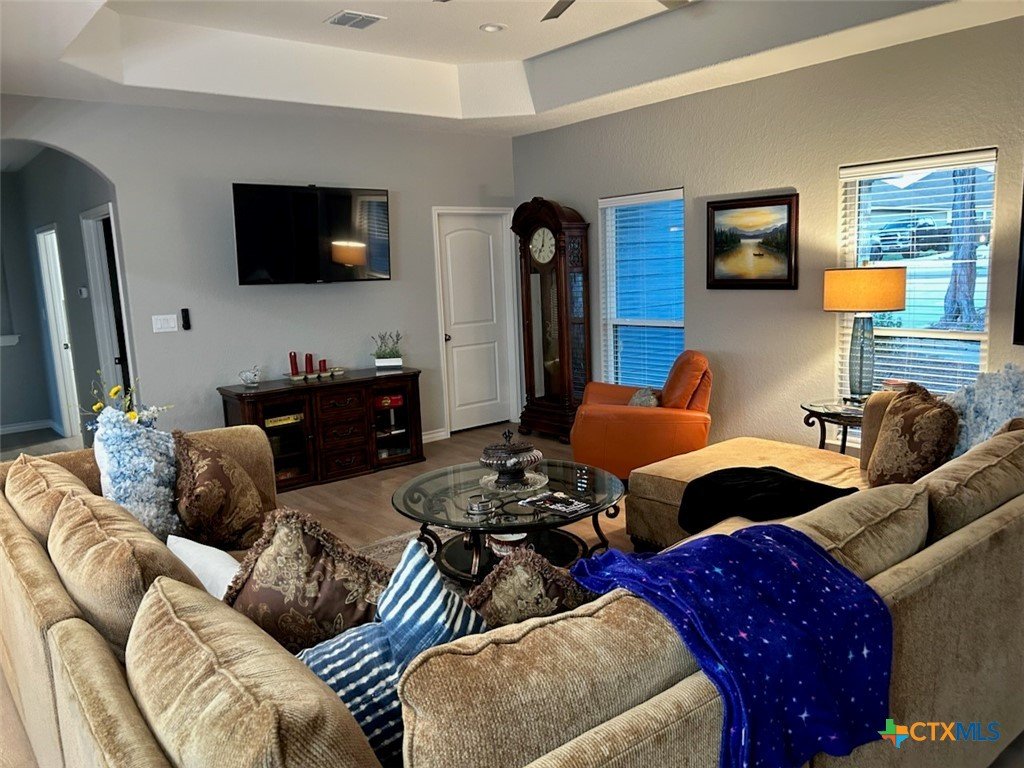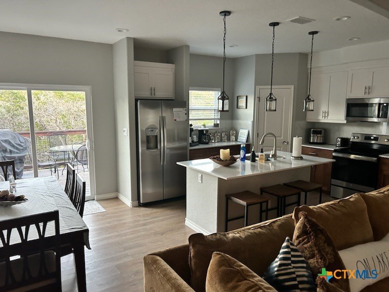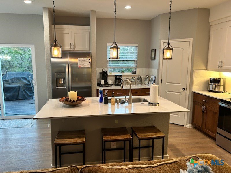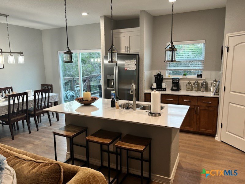 Modern Hill Country living in Canyon Lake Estates! This 2023-built home offers 1,755 sq ft of open-concept design with 3 bedrooms, 2.5 bathrooms, stylish tile flooring, and a raised foundation backed by an active builder warranty. Blown-in insulation adds energy efficiency throughout. Enjoy peaceful views from the elevated balcony, perfect for outdoor relaxation. Located on a spacious 10,275 sq ft lot just minutes from Canyon Lake and scenic hiking trails. Zoned to Comal ISD and move-in ready!