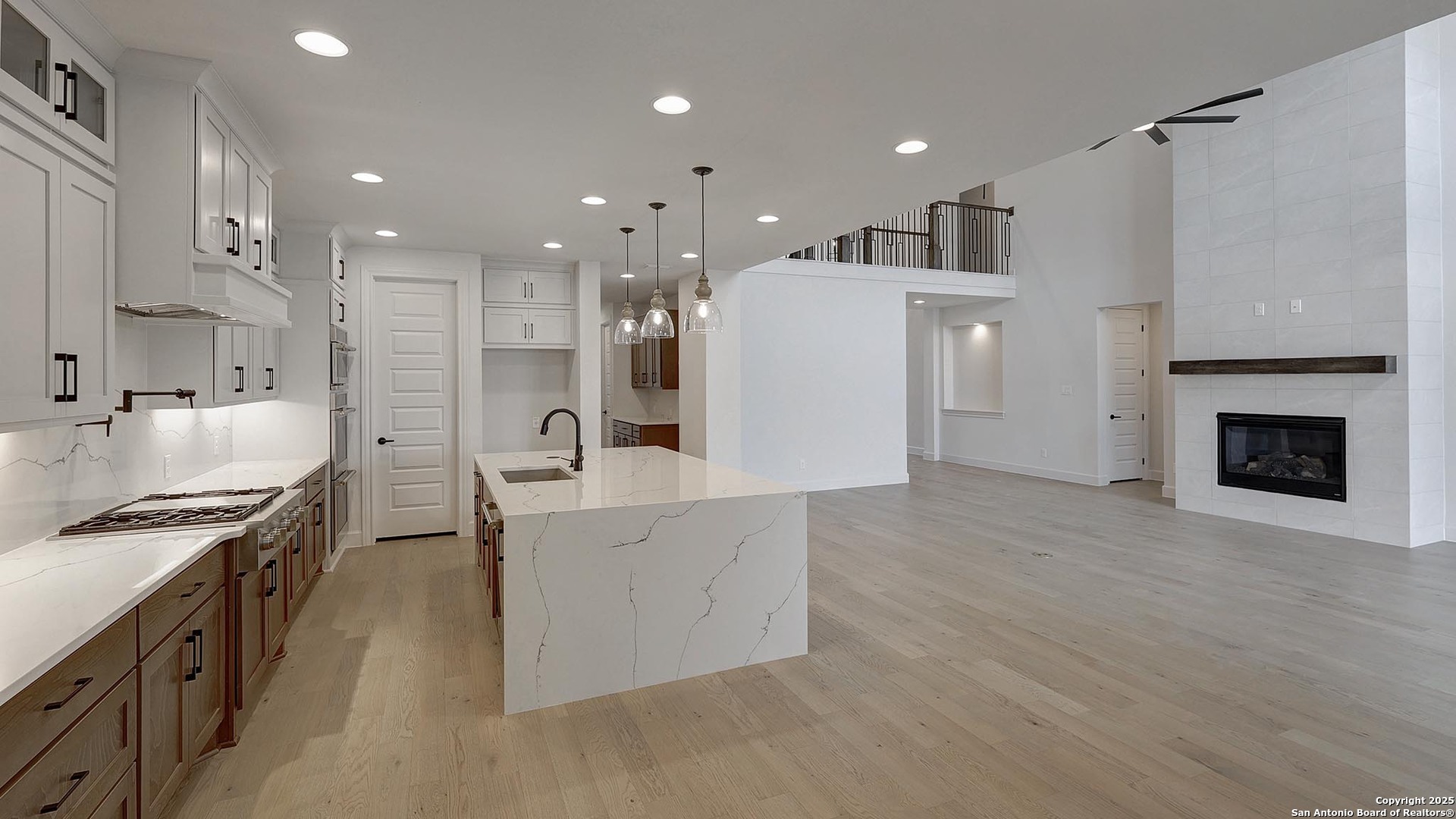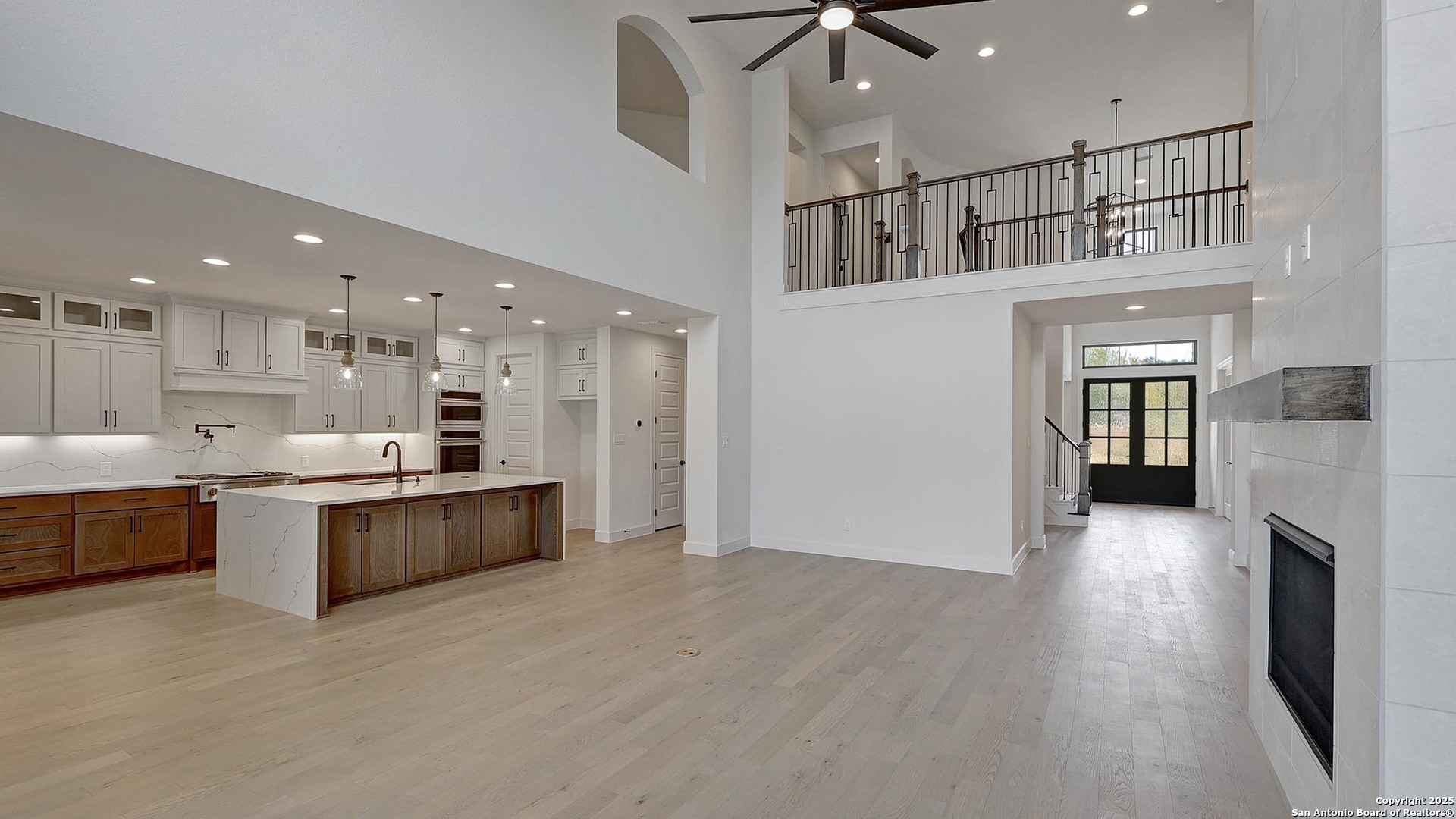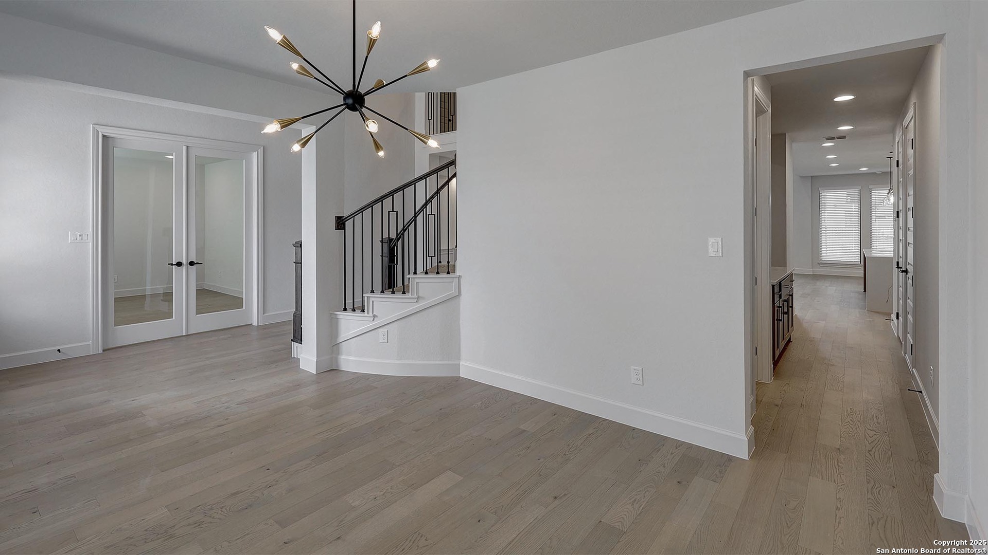 READY FOR MOVE-IN! Home office with French doors and dining room frames the two-story entry. Hardwood floors throughout living areas. Two-story family room with a wood mantel fireplace and sliding glass door opens to kitchen and morning area. Kitchen features island with built-in seating space, double wall oven and Butler's pantry. Upstairs media room, game room, secondary bedrooms with a Hollywood bath. Downstairs guest suite with full bath and walk-in closet. Freestanding tub, separate shower and two walk-in closets in the primary suite. Additional staircase just off morning area. Extended covered backyard patio. Three-car garage.