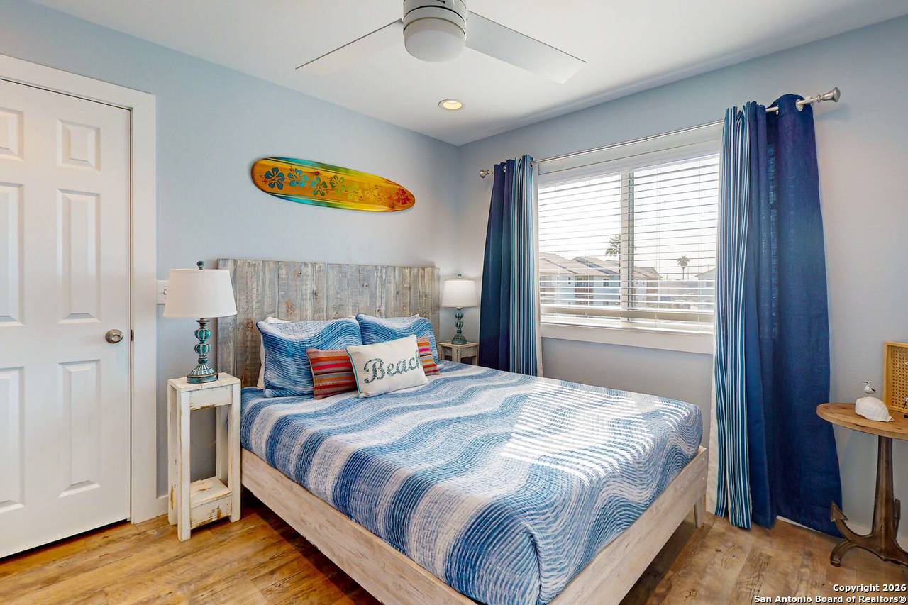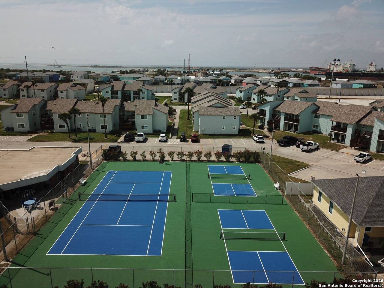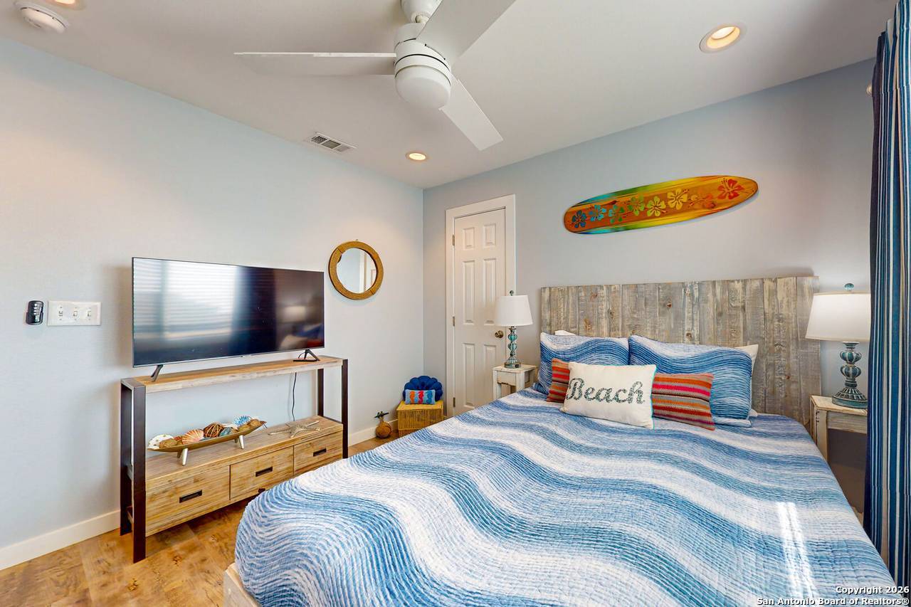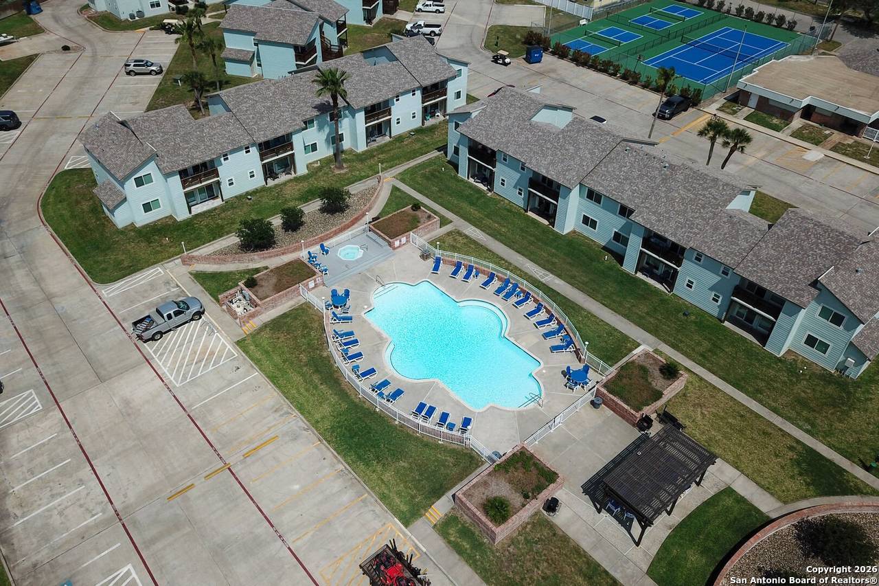 Beautiful updated 2-bedroom 1 bath condo directly in front of the pool/hot tub/grilling area at Aransas Harbors. Located in the heart of Port Aransas - walking distance to restaurants, shops, and more. Golf cart accessible. Huge master bdrm with King sized bed and very large walk-in closet. Guest bdrm has pool view and walk in closet. Spacious Living room has sleeper sofa. All furnishings and decor convey, including washer/dryer, and all appliances. The balcony has morning sunrise, afternoon shade with view of the pool/hot tub/grilling area view and a spacious storage closet. Enjoy all that Port Aransas has to offer from this beautiful, perfectly located condo. Plenty of boat/trailer parking and just 2 blocks from public boat ramps with quick access to the bay, flats, or offshore. Short term vacation rentals allowed. Owners can self manage or use Life in Paradise for mgmt.