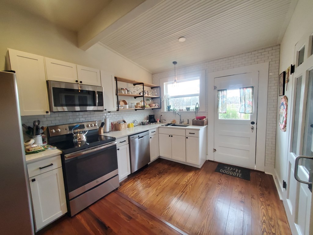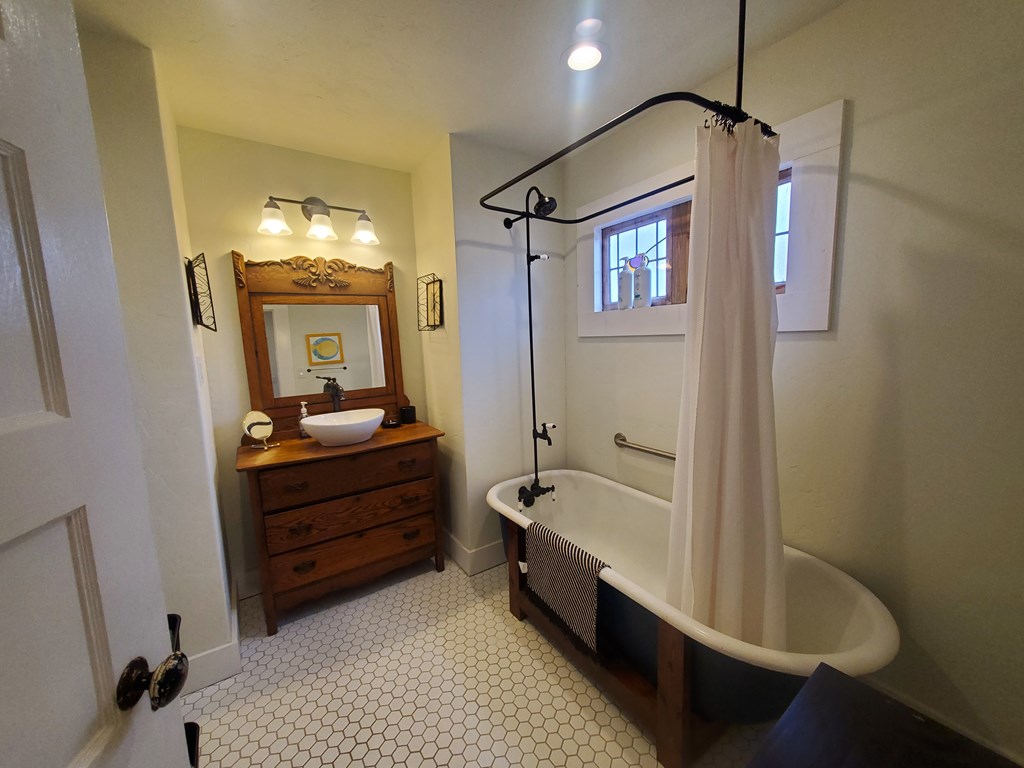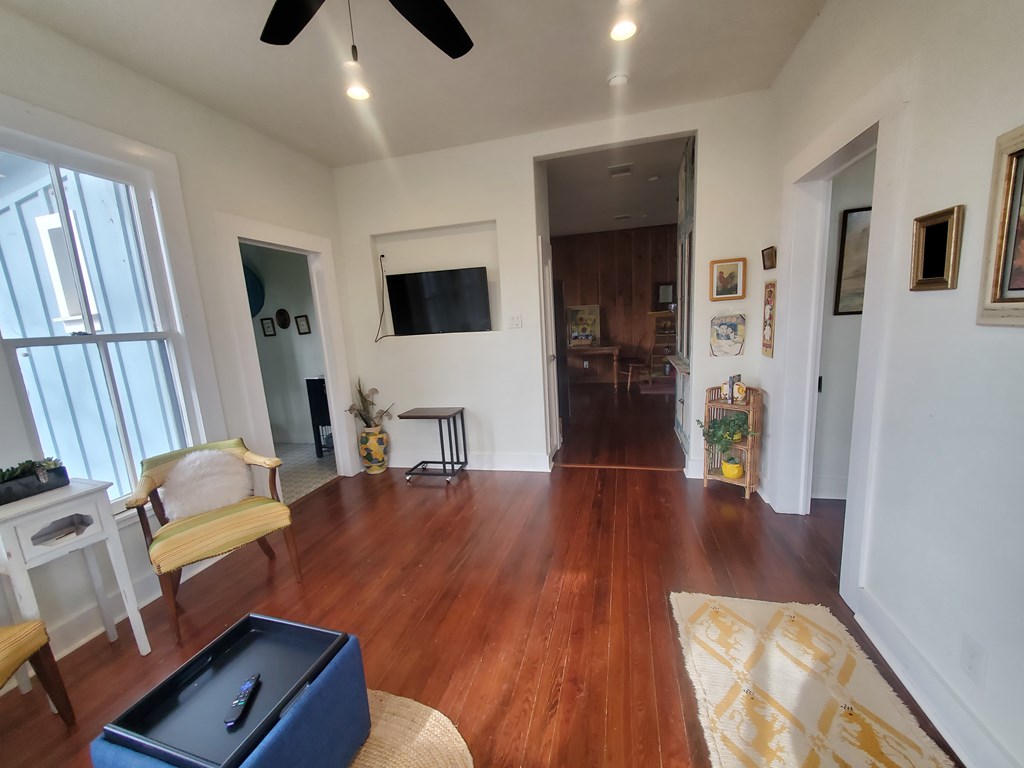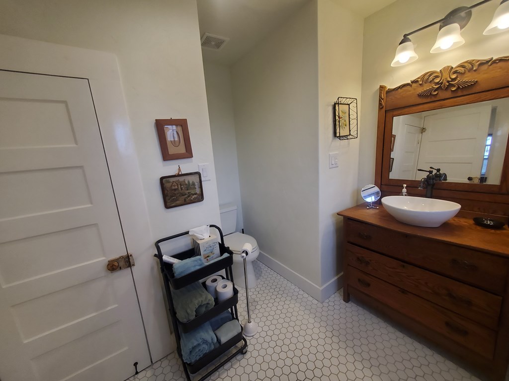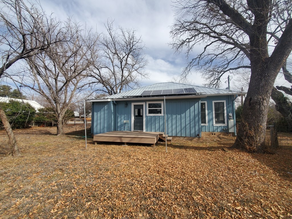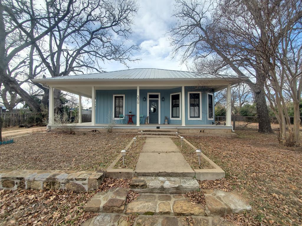 Adorable 2/2.5 was built circa 1910 and fully renovated in 2019. Original hardwood floors, large walk-in master closet, clawfoot tub and stained glass window in master bath, lots of natural light, beveled glass front door, tin ceiling front porch, TREK back deck, solar panels, detached 1-car garage with large laundry room w/ additional 1/2 bath and large fenced back yard. Interesting historical built-ins and shiplap features throughout. Short walk to downtown Mason, restaurants, wineries and 15 minutes from the Llano River. Short-term rentals allowed.
