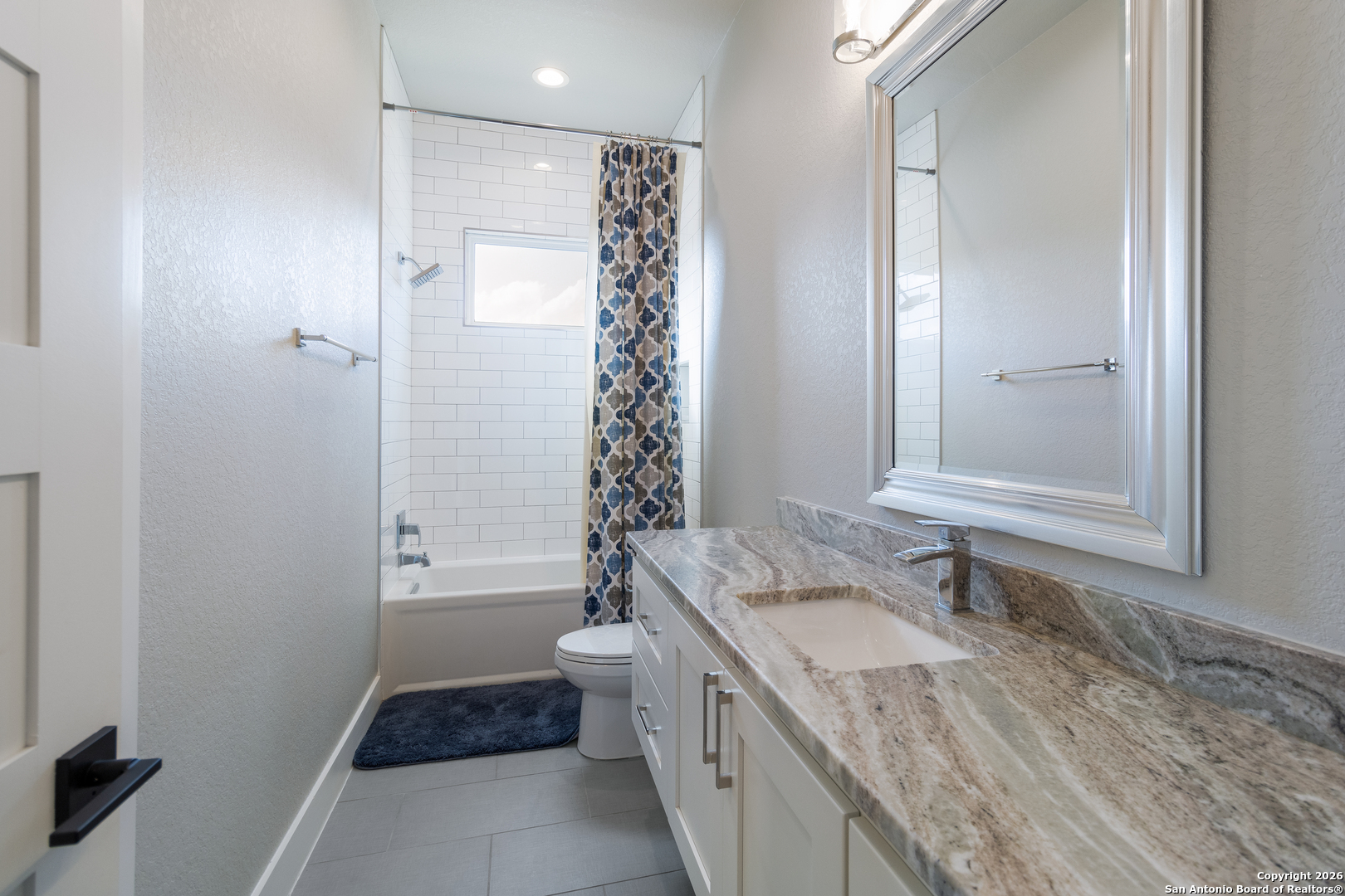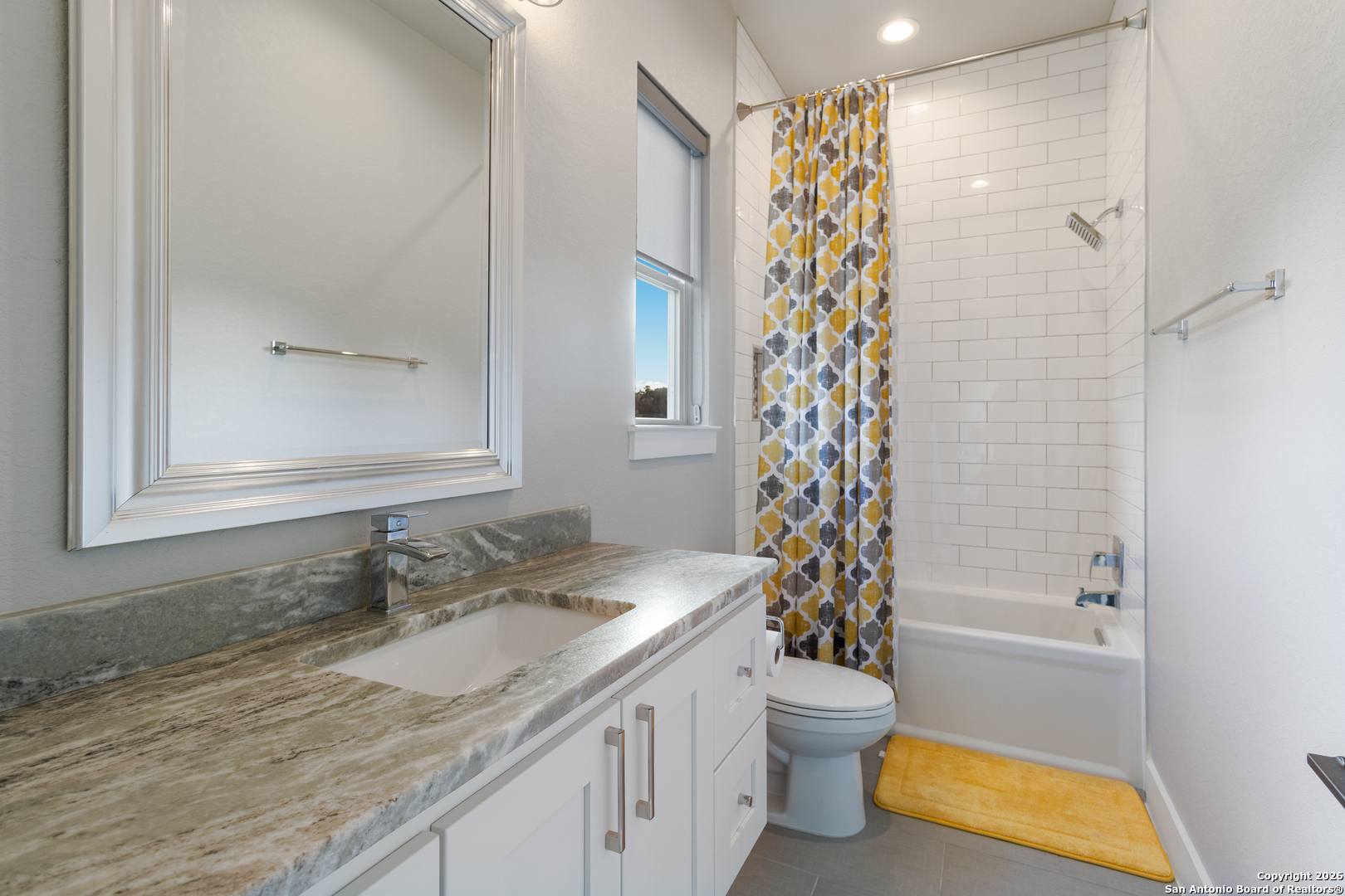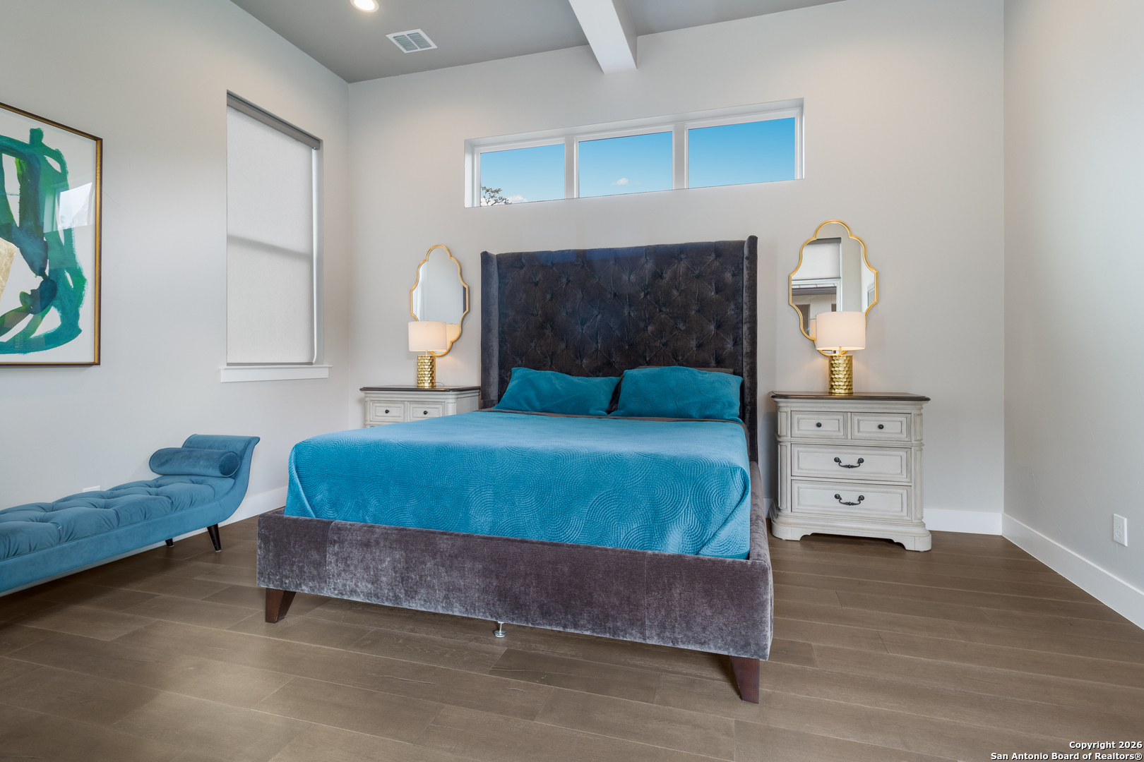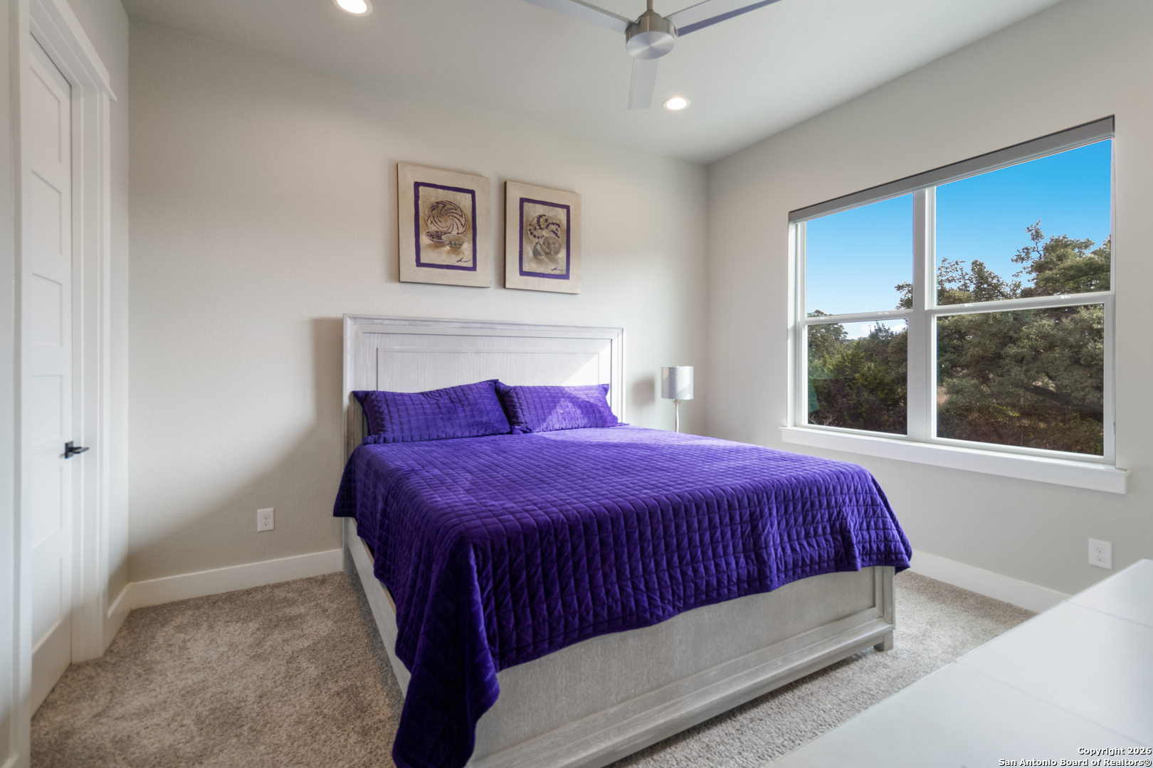 Tucked at the back of a gated neighborhood, this thoughtfully designed home offers a flat, easy entry and exit -an uncommon find in this Hill Country fringe location. A circular drive and stone-and-stucco exterior set the tone as you arrive, offering both presence and practicality. Inside, wood floors, tall ceilings, and a wall of windows immediately connect the interior to the backyard, filling the main living spaces with natural light. The layout flows comfortably, allowing rooms to feel connected without sacrificing privacy. At the heart of the home, the island kitchen anchors daily life and gatherings alike. Quartz counters, custom cabinetry, a gas cooktop, and a built-in side-by-side refrigerator make the space as functional as it is inviting. Two dining areas and a breakfast bar offer options for casual mornings or longer conversations over dinner. The adjoining living room, centered around an electric fireplace, creates a natural place to relax or host friends. Nearby, a flex room currently used as a media space adds another layer of versatility. Downstairs, the primary suite is quietly set apart from the rest of the home, creating a true place to unwind at the end of the day. Two walk-in closets, separate vanities, a tiled shower, and a soaking tub beneath a picture window all look out toward the pool and backyard. Just across from the primary suite, an additional room with a walk-in closet and beamed ceiling can easily serve as a bedroom, study, or creative space-flexible enough to grow with your needs. The home offers room for everyone, with an additional downstairs guest suite with full bath and a living area upstairs shared by two bedrooms and two full bathrooms-ideal for separation without feeling disconnected. Outdoors, the backyard becomes an extension of the home, designed for both entertaining and quiet evenings. A pool with waterfalls, elevated hot tub, multiple seating areas, an outdoor kitchen, and a gazebo with a TV and dry bar create a space that adapts to everything from lively gatherings to low-key nights under the stars. Everyday functionality is thoughtfully built in with an oversized three-car garage, a full utility room with sink and storage, foam insulation, and a full sprinkler system. Furnishings are negotiable, offering an easy transition for the next owner. With plenty of space, and a layout that balances openness, privacy, and flexibility, this home is designed to support the way life actually unfolds.