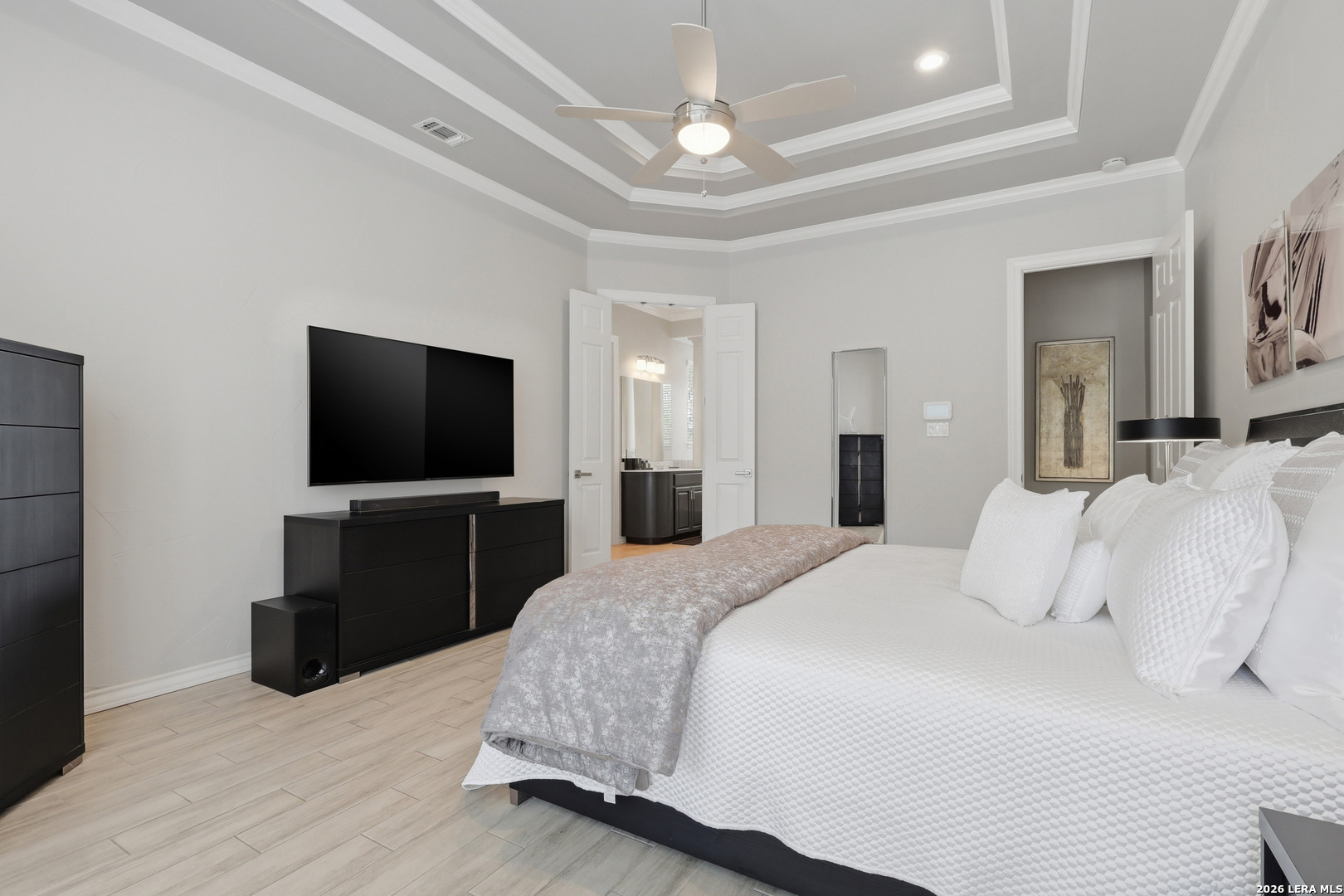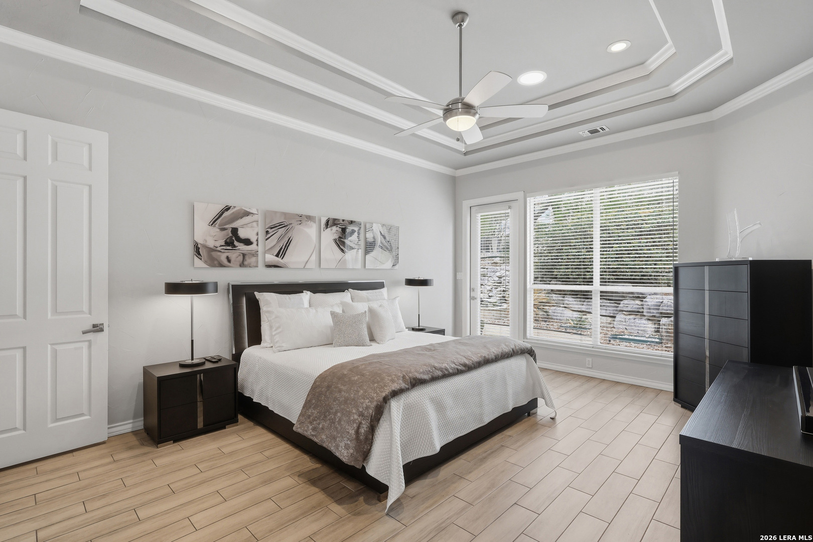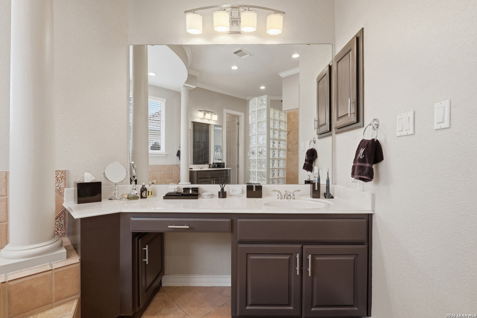 Stunning custom Mediterranean-style home built by Mike Holloway located in the gated community of The Highlands at Sonterra. Impeccably maintained and thoughtfully designed, this residence offers five generously sized bedrooms-two conveniently located on the main level-along with 4.5 bathrooms and a dedicated private office. The spacious open floor plan is filled with natural light and designed for both everyday living and entertaining. The gourmet kitchen features a large island, abundant counter space, and seamless flow into the main living areas. Upstairs, you'll find a generous flex space ideal for a game room, media room, or additional lounge area, along with three additional bedrooms and two bathrooms, including a Jack-and-Jill layout. Situated on an expansive 0.35-acre lot, the outdoor space is perfect for relaxation and recreation, featuring a spool (spa/pool combination), patio area, and a basketball court on the upper portion of the yard. Located less than two minutes from the Sonterra Club entrance, this home offers an exceptional lifestyle with easy access to golf, tennis, pickleball, swimming, dining, and social events. Golf enthusiasts will also appreciate being within five miles of three additional golf courses. Ideally positioned near Loop 1604, Highway 281, and IH-10, with convenient access to shopping, restaurants, and major medical centers.