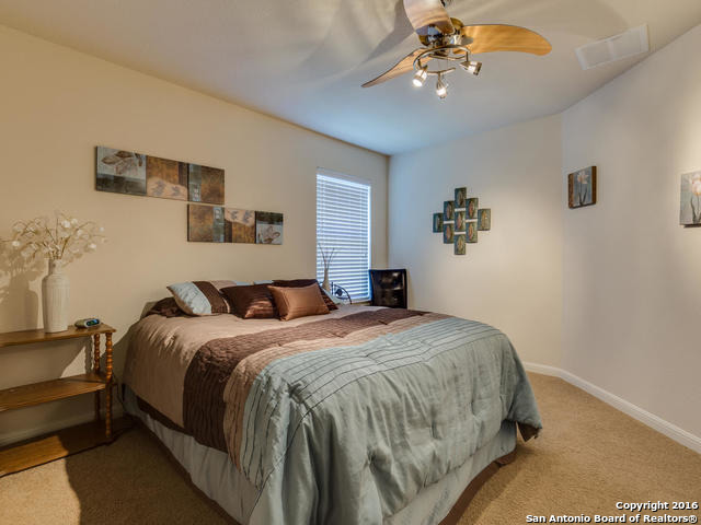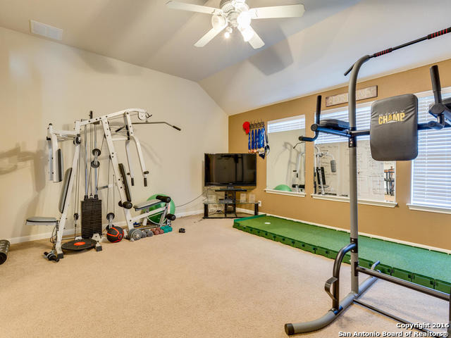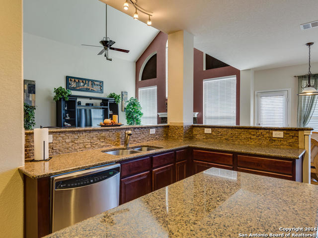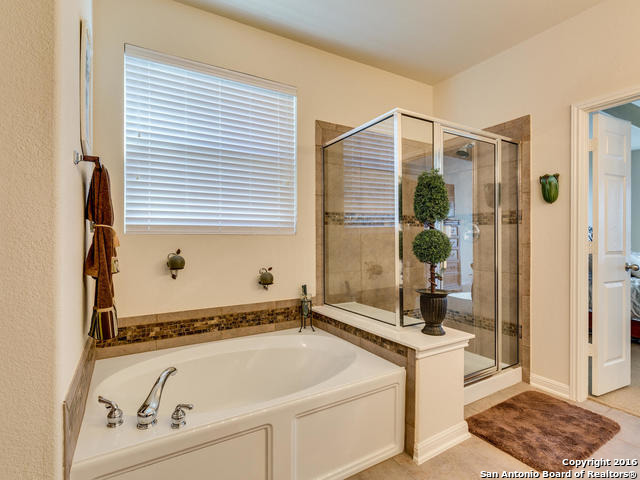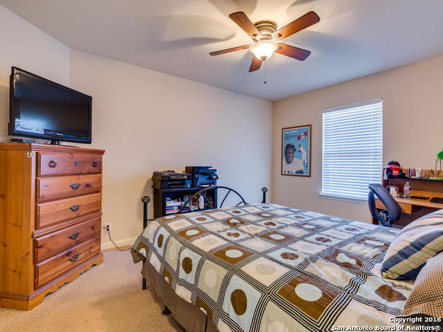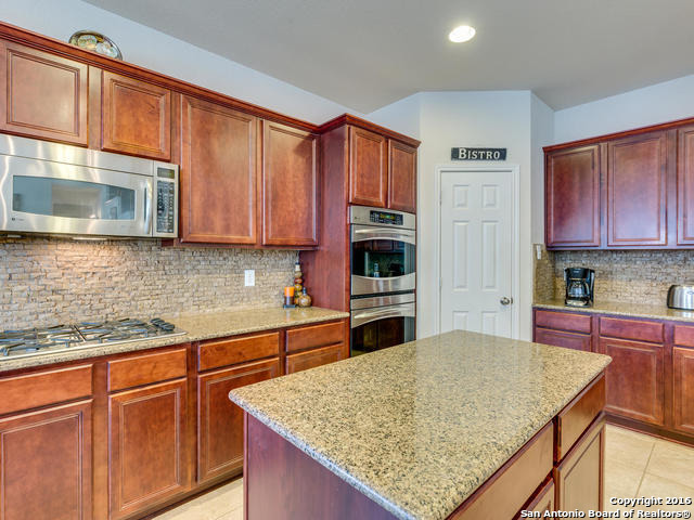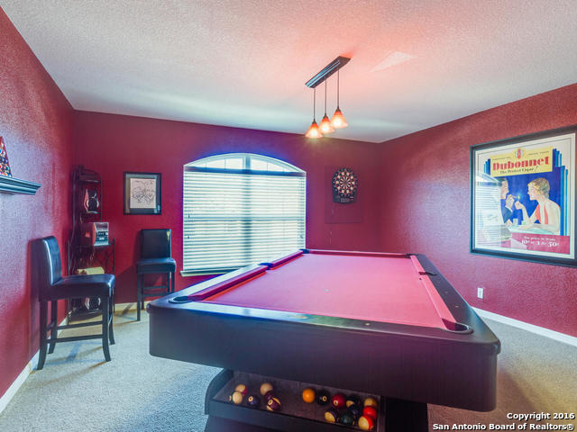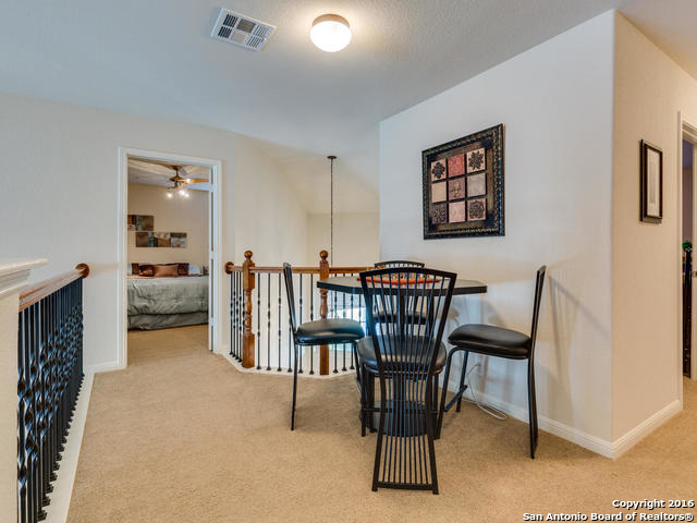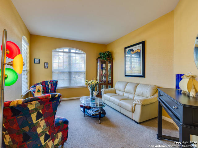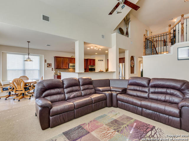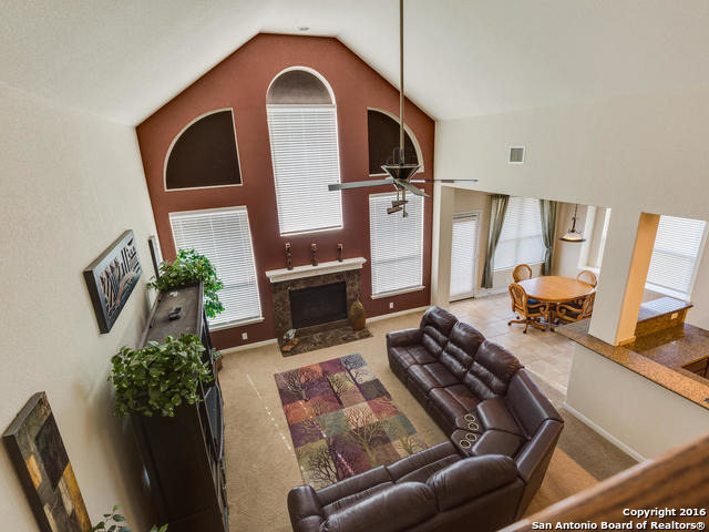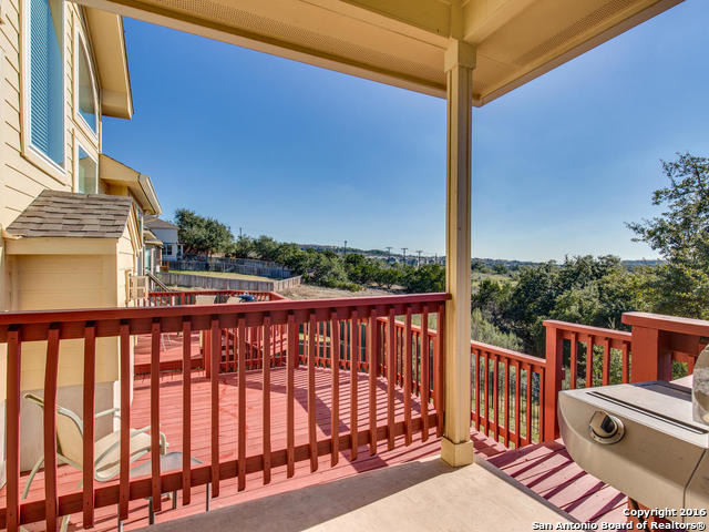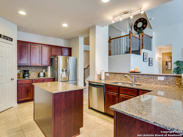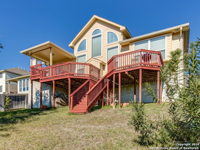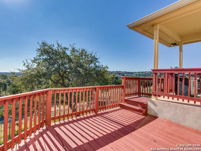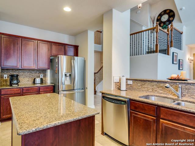 Well maintained home on greenbelt*Desired NEISD*Open floor plan & High Ceilings*Elegant Owners retreat downstairs with Secondary bedroom * Wrought Iron Stair Rails lead to upstairs Game Room, loft & 3 bedrooms*Island Kitchen w/ SS appliances, granite countertops,& Italian brick backsplash*Halo air purifier recently installed in downstairs air ducts*Views from covered patio & 2 decks that back up to greenbelt* Wrought Iron fence+gate to greenbelt*Garage door replaced 1/16. Championship Golf Course +/- 1mile